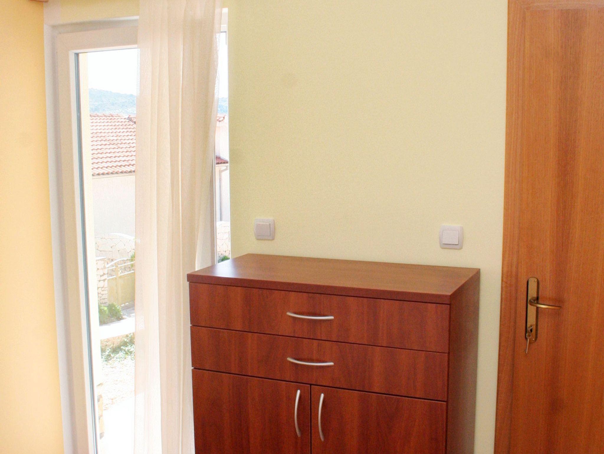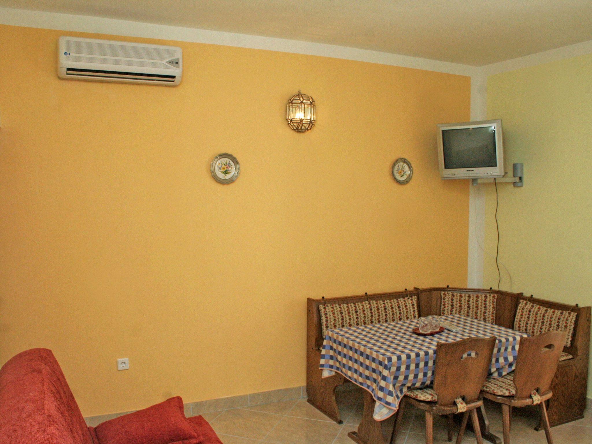 Ferienwohnung bietet Platz für 5 Gäste. Die Betten sind in Schlafzimmern, die es 2 gibt, und in Esszimmer, innerhalb einer Gesamtfläche von 45m2, angeordnet. Die Gäste haben eine eigene Terrasse zur Verfügung, auf der sie in warmen Sommernächten genießen können. Das Apartment bietet Meerblick. Es ist erlaubt, Speisen auf dem Gemeinschafts-Grill vorzubereiten. In der Unterkunftseinheit besteht die Möglichkeit des Mitbringens von Haustieren gegen Aufpreis. In der gebuchten Unterkunftseinheit zahlt man am Ort ein Depositum ( der Preis ist an der Internetseite angeführt ). IM PREIS INBEGRIFFEN: Kurtaxe, Endreinigung, Klimatisierung, Parkplatz, Internet, Kinderbett, Föhn. VERBINDLICHE ZUSÄTZLICHE KOSTEN: Kaution (100,00 € Einmalzahlung), Aufzahlung für Kurzaufenthalte (prozentualer Zuschlag pro Nächtigungsanzahl: 30% - 1, 20% - 2, 10% - 3). UNVERBINDLICHE ZUSÄTZLICHE KOSTEN: Wäschewaschen (5,00 € Waschen), Bootsanlegeplatz (25,00 € pro Nacht), Haustiere (20,00 € pro Nacht). Die Verfügbarkeit zusätzlicher Dienstleistungen in Ihrem reservierten Termin und die Preise derselben (falls nicht aufgeführt) müssen im Voraus überprüft werden. Zusätzliche Dienstleistungen die in der Zahlungsaufforderung nicht aufgeführt sind werden direkt beim Vermieter bezahlt, angenommen der Gast nutzt auch diese.