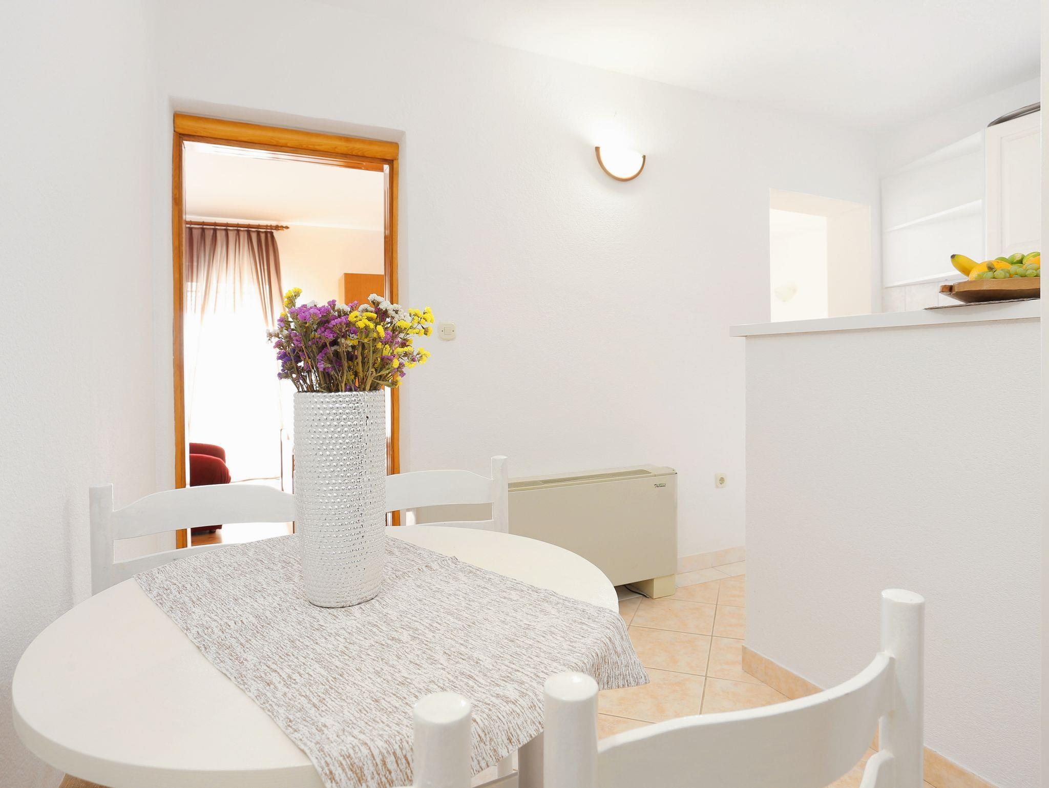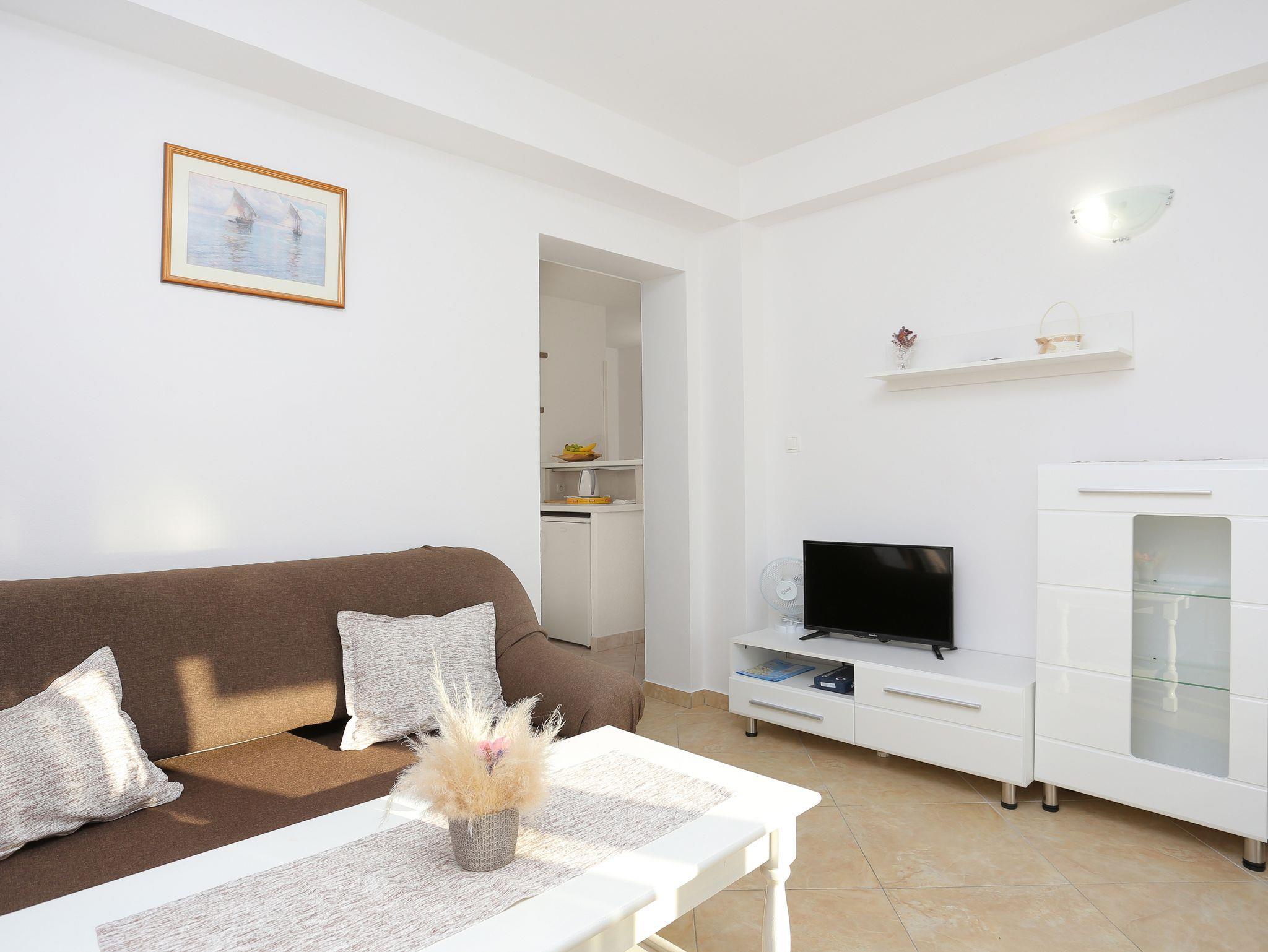 Ferienwohnung bietet Platz für 4 Gäste. Die Betten sind in Schlafzimmern, die es 1 gibt, und in Wohnzimmer, innerhalb einer Gesamtfläche von 35m2, angeordnet. Die Gäste haben einen eigenen Balkon zur Verfügung, auf der sie in warmen Sommernächten genießen können. Das Apartment bietet Meerblick. Es ist erlaubt, Speisen auf dem Gemeinschafts-Grill vorzubereiten. IM PREIS INBEGRIFFEN: Kurtaxe, Endreinigung, Klimatisierung, Parkplatz, Internet, Kinderbett, Bügeleisen, Bügelbrett. VERBINDLICHE ZUSÄTZLICHE KOSTEN: Aufzahlung für Kurzaufenthalte (prozentualer Zuschlag pro Nächtigungsanzahl: 30% - 1, 20% - 2, 10% - 3). UNVERBINDLICHE ZUSÄTZLICHE KOSTEN: Wäschewaschen (1,00 € Waschen). Die Verfügbarkeit zusätzlicher Dienstleistungen in Ihrem reservierten Termin und die Preise derselben (falls nicht aufgeführt) müssen im Voraus überprüft werden. Zusätzliche Dienstleistungen die in der Zahlungsaufforderung nicht aufgeführt sind werden direkt beim Vermieter bezahlt, angenommen der Gast nutzt auch diese.