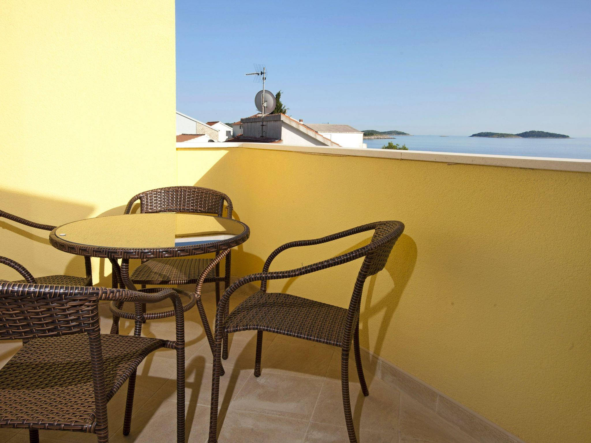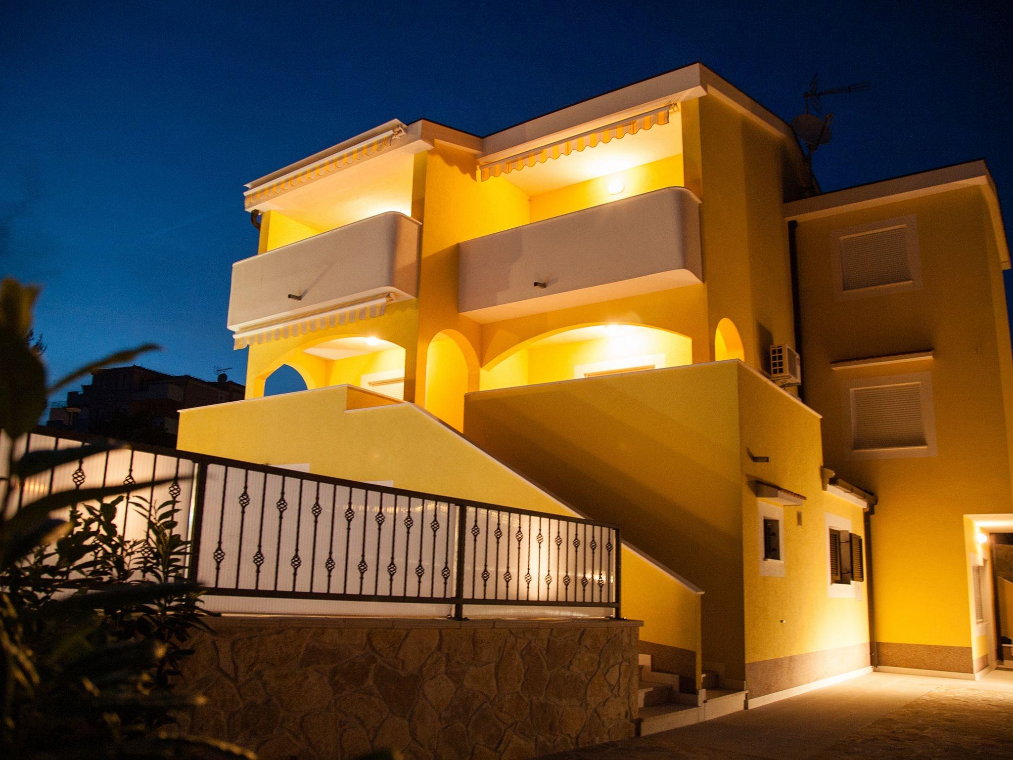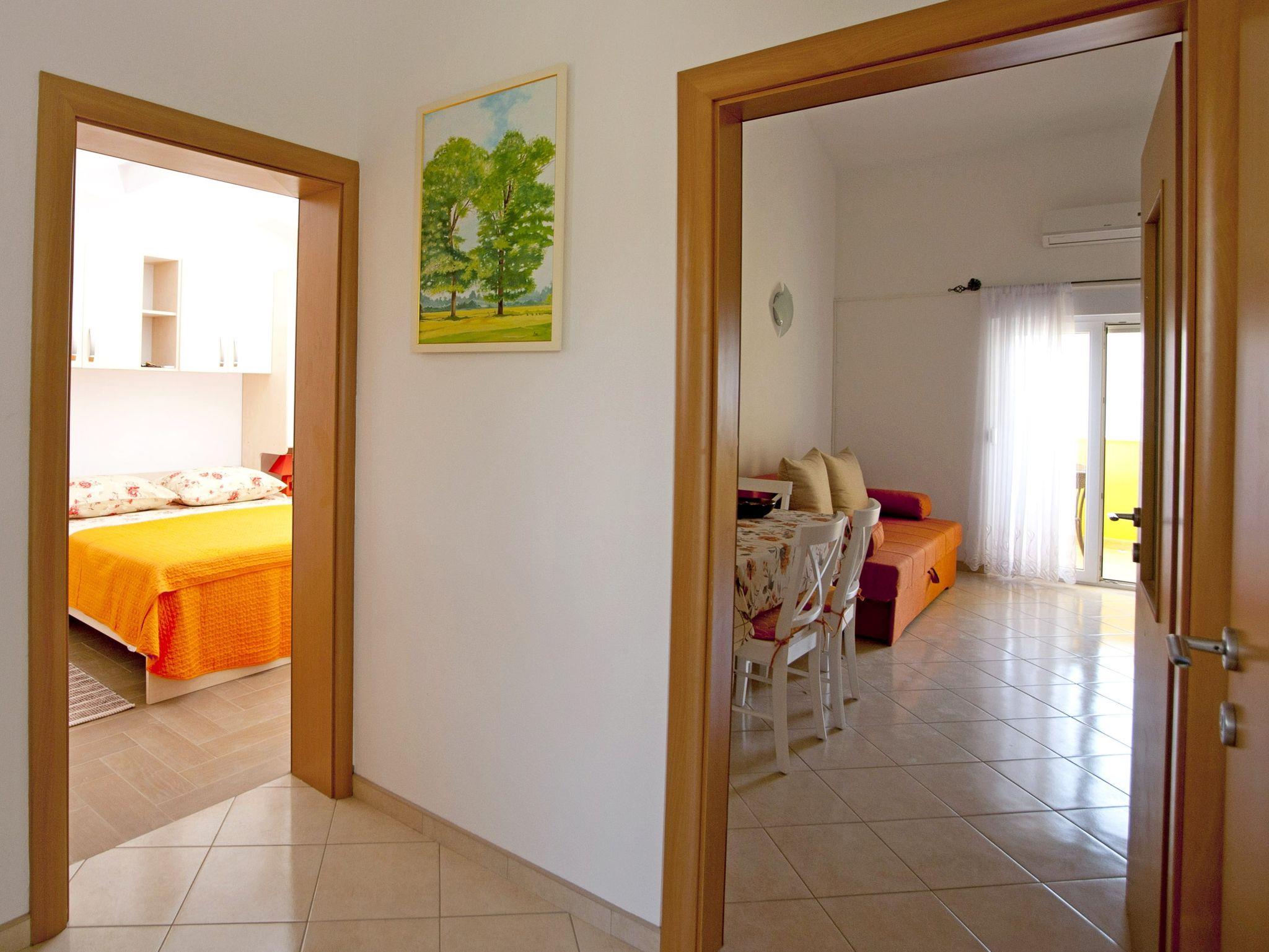 Ferienwohnung bietet Platz für 4 Gäste. Die Betten sind in Schlafzimmern, die es 1 gibt, und in Esszimmer, innerhalb einer Gesamtfläche von 36m2, angeordnet. Die Gäste haben eine eigene Terrasse zur Verfügung, auf der sie in warmen Sommernächten genießen können. Das Apartment bietet Meerblick. Es ist erlaubt, Speisen auf dem Gemeinschafts-Grill vorzubereiten. Während ihres Aufenthalts können Gäste das gemeinsam zur Nutzung stehende Schwimmbad benutzen. IM PREIS INBEGRIFFEN: Kurtaxe, Endreinigung, Klimatisierung, Pool, Parkplatz, Internet, Bügeleisen, Föhn. VERBINDLICHE ZUSÄTZLICHE KOSTEN: Aufzahlung für Kurzaufenthalte (prozentualer Zuschlag pro Nächtigungsanzahl: 30% - 1, 20% - 2, 10% - 3). Die Verfügbarkeit zusätzlicher Dienstleistungen in Ihrem reservierten Termin und die Preise derselben (falls nicht aufgeführt) müssen im Voraus überprüft werden. Zusätzliche Dienstleistungen die in der Zahlungsaufforderung nicht aufgeführt sind werden direkt beim Vermieter bezahlt, angenommen der Gast nutzt auch diese.