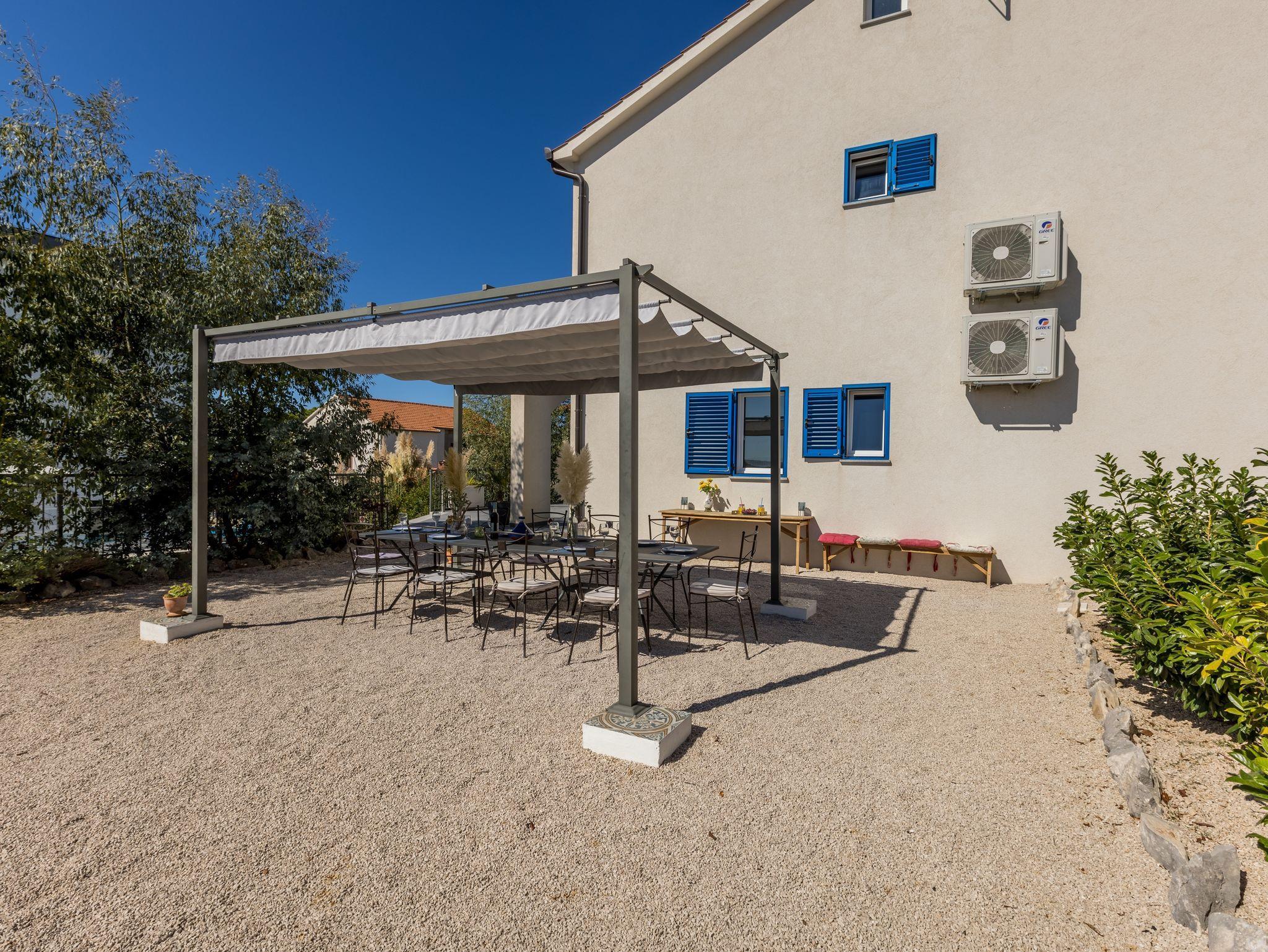 Umgebung des Objekts (Eingerichtet), Hof (500m2, Kinderbereich, Sitzbereich), Parkplatz (Anzahl der Parkplätze: 6, Entfernung vom Objekt: im Hof), Pool: privat, Dimensionen: 8.5m x 4.5m x 1.5m, Wassertyp: Süßwasser, WiFi Internet, Föhn, Bügeleisen, Bügelbrett, Liegestühle, Kinderbett