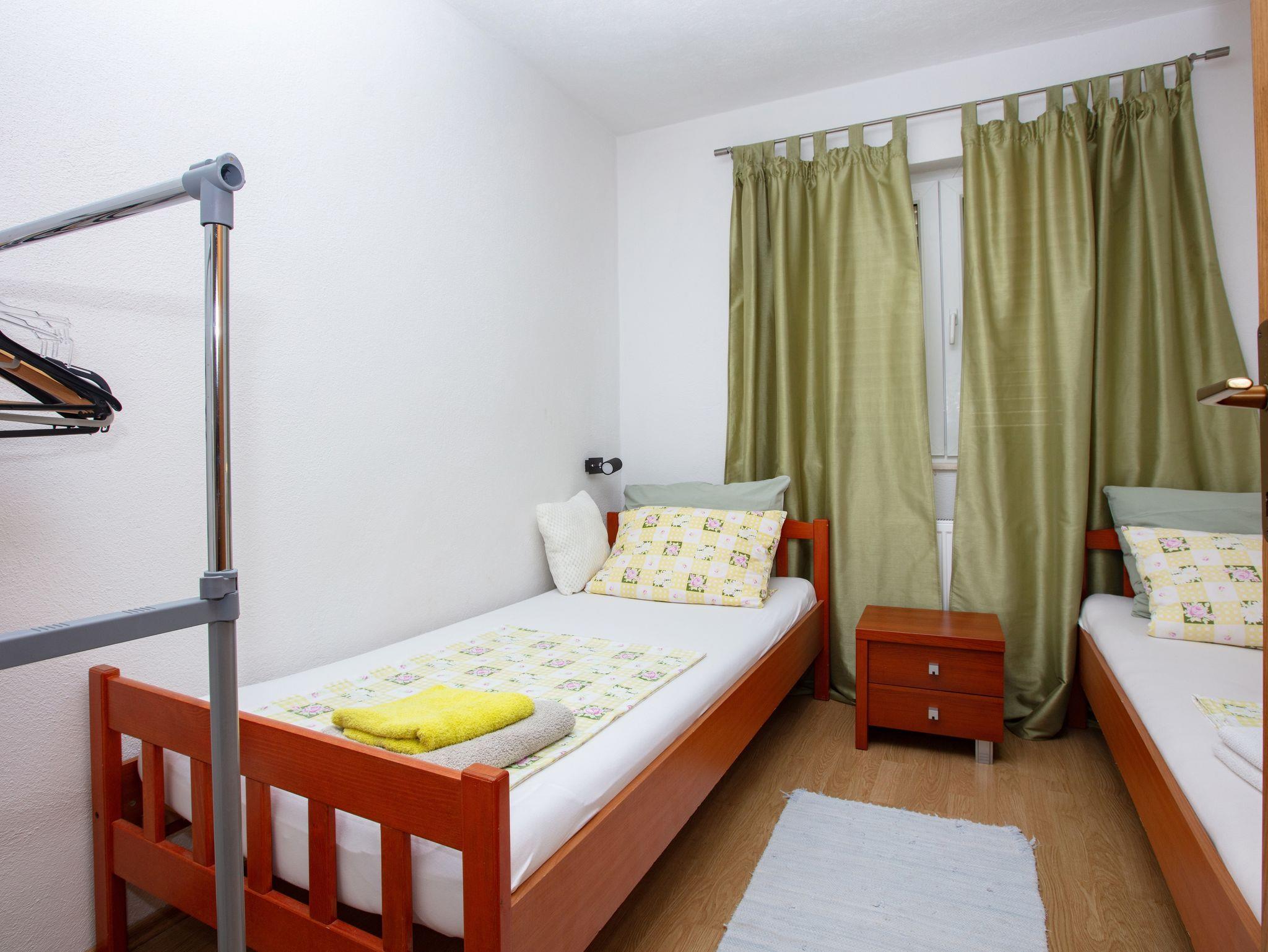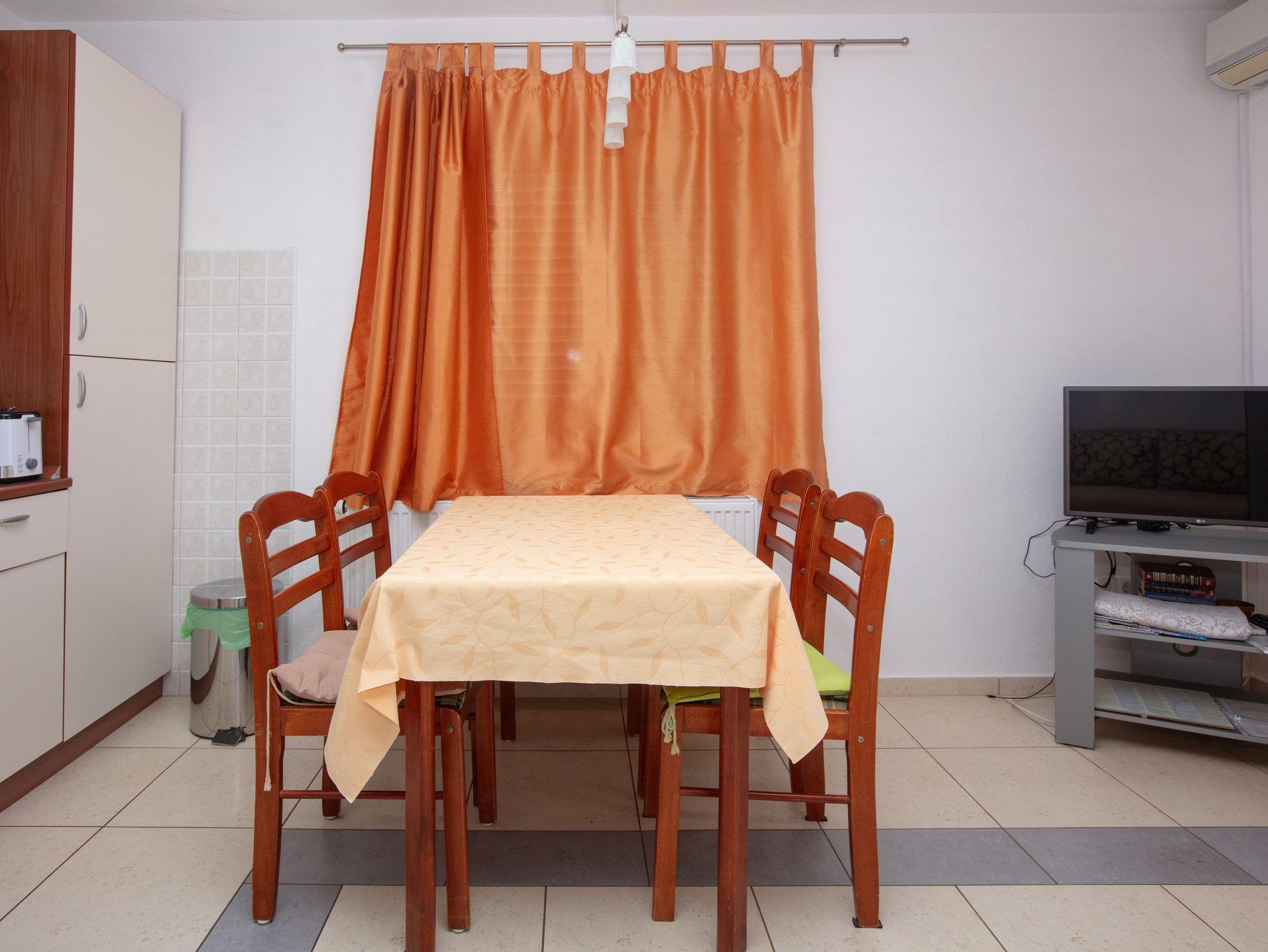 Ferienwohnung bietet Platz für 5 Gäste. Die Betten sind in Schlafzimmern, die es 2 gibt, und in Wohnzimmer, innerhalb einer Gesamtfläche von 47m2, angeordnet. Die Gäste haben eine eigene Terrasse zur Verfügung, auf der sie in warmen Sommernächten genießen können. Das Apartment bietet Meerblick. Es ist erlaubt, Speisen auf dem Gemeinschafts-Grill vorzubereiten. IM PREIS INBEGRIFFEN: Kurtaxe, Endreinigung, Klimatisierung, Zentralheizung, Parkplatz, Internet, Bügeleisen, Bügelbrett, Föhn. VERBINDLICHE ZUSÄTZLICHE KOSTEN: Aufzahlung für Kurzaufenthalte (prozentualer Zuschlag pro Nächtigungsanzahl: 30% - 1, 20% - 2, 10% - 3). UNVERBINDLICHE ZUSÄTZLICHE KOSTEN: Wäschewaschen (5,00 € Waschen), Bootsanlegeplatz (3,00 € pro Nacht). Die Verfügbarkeit zusätzlicher Dienstleistungen in Ihrem reservierten Termin und die Preise derselben (falls nicht aufgeführt) müssen im Voraus überprüft werden. Zusätzliche Dienstleistungen die in der Zahlungsaufforderung nicht aufgeführt sind werden direkt beim Vermieter bezahlt, angenommen der Gast nutzt auch diese.