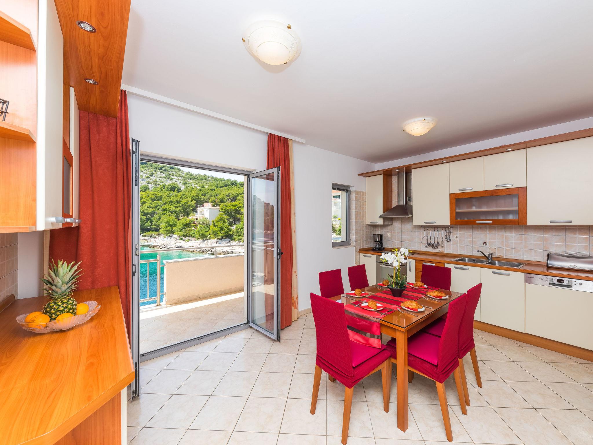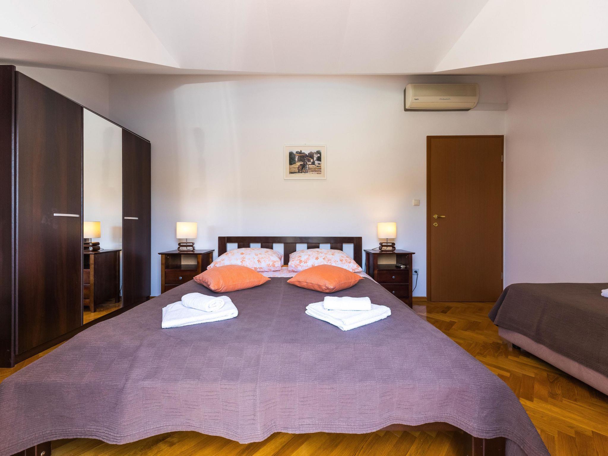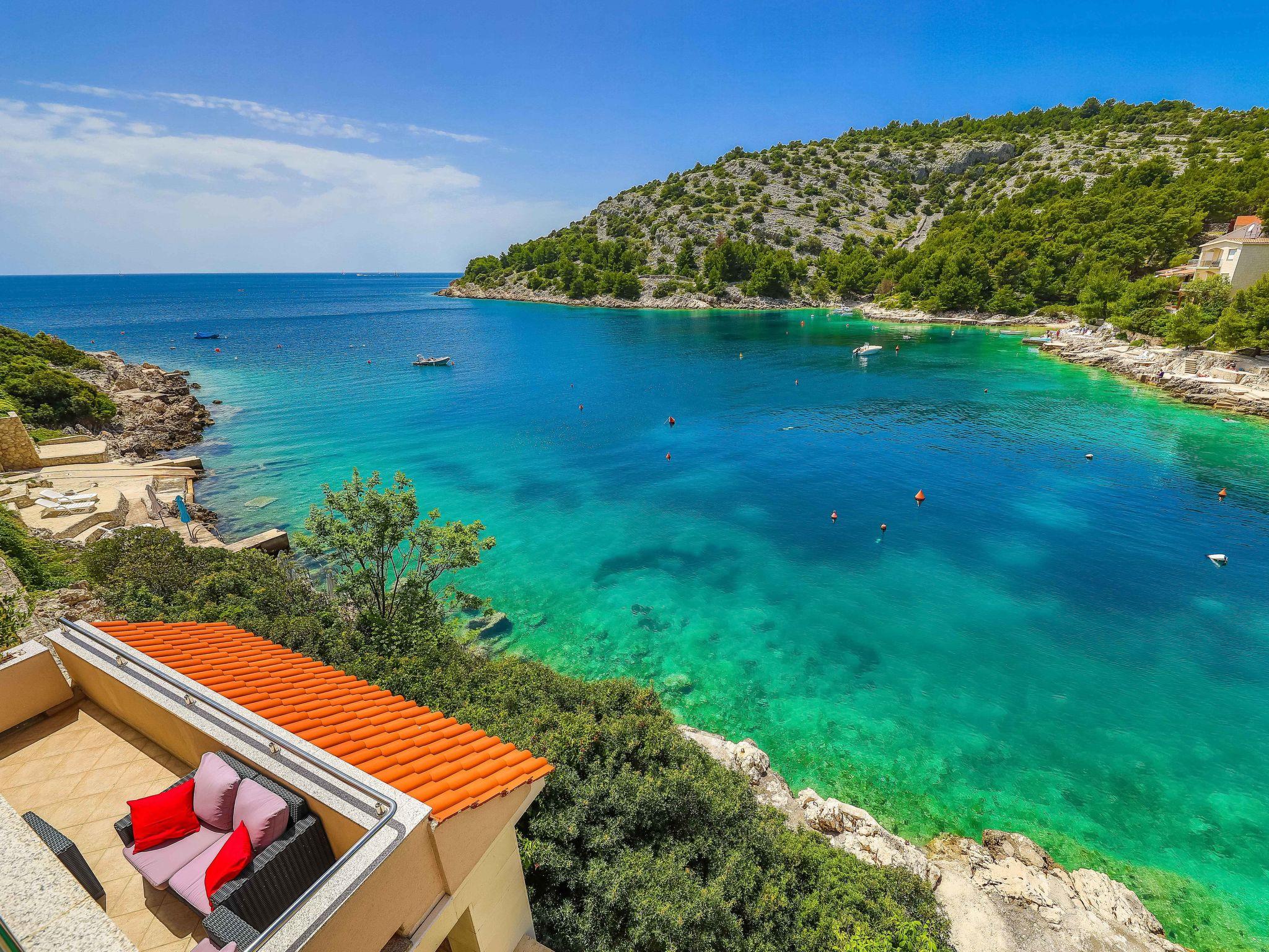 5-Zimmer-Haus 180 m2 auf 3 Stockwerken, Südlage. Geschmackvoll und gemütlich eingerichtet: Wohnzimmer mit Sat-TV (Flachbildschirm), Klimaanlage. Ausgang zur Terrasse. Esszimmer. Offene Küche (4 Kochplatten, Backofen, Geschirrspüler). Sep. WC. Obergeschoss: 2 Zimmer, jedes Zimmer mit 1 Doppelbett (2 x 80 cm, Länge 200 cm). Ausgang zur Terrasse. 1 Zimmer mit 2 Betten (90 cm, Länge 200 cm). Ausgang zur Terrasse. Bad/WC. Dachgeschoss: 1 Zimmer, Deckenhöhe 120 - 370 cm mit 1 Bett (90 cm, Länge 190 cm). Ausgang zum Balkon. Dusche/WC. Balkon 2 m2, Terrasse 40 m2, überdacht, 2 Terrassen 10 m2. Terrassenmöbel. Herrliche Sicht auf das Meer. Zur Verfügung: Waschmaschine, Babybett. Internet (Wireless LAN, gratis). Parkplatz (überdacht, 3 Autos). Bitte beachten: Private Bootsanlegestelle.