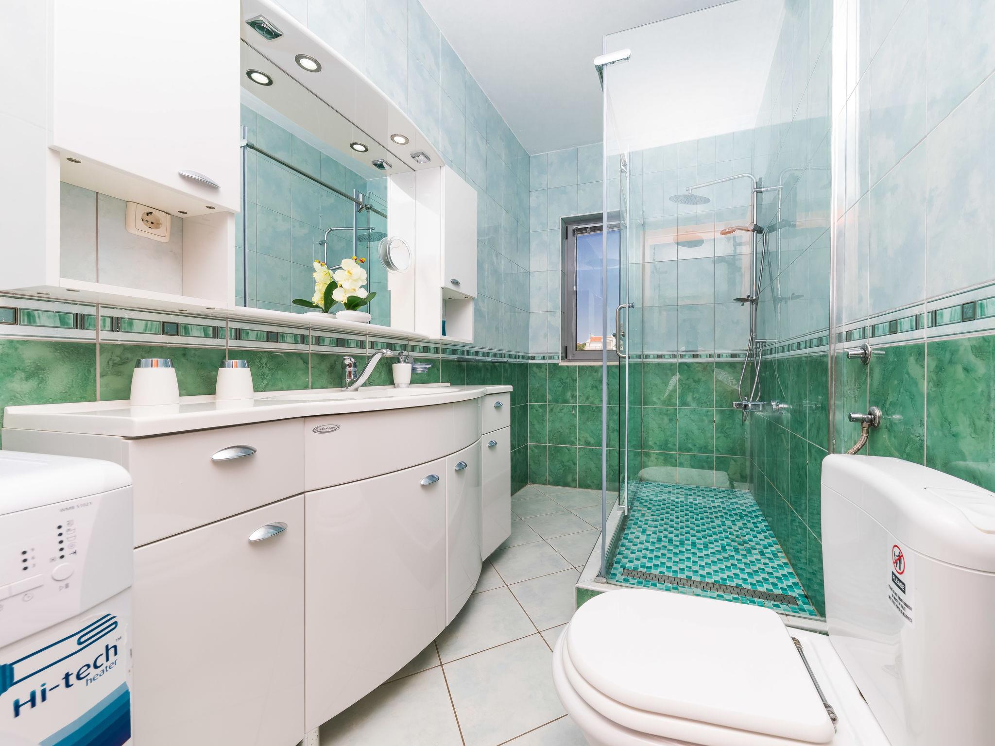 Ražanj 10 km von Rogoznica: Schönes Einfamilienhaus "Villa Silvana", auf 3 Stockwerken. Ruhige, sonnige Lage, direkt am Meer, direkt am Strand, direkter Zugang zum Strand. Zur Alleinbenutzung: Grundstück 300 m2 (eingezäunt), terrassierter Garten, Schwimmbad eckig, beheizt (8 x 3 m, 100 - 180 cm tief, saisonale Verfügbarkeit: 01.Jan. - 31.Dez.). Grill. Im Hause: Internetzugang. Parkplatz (überdacht) beim Haus auf dem Grundstück. Einkaufsgeschäft, Restaurant 500 m, Bushaltestelle 6.1 km, Felsstrand 10 m.