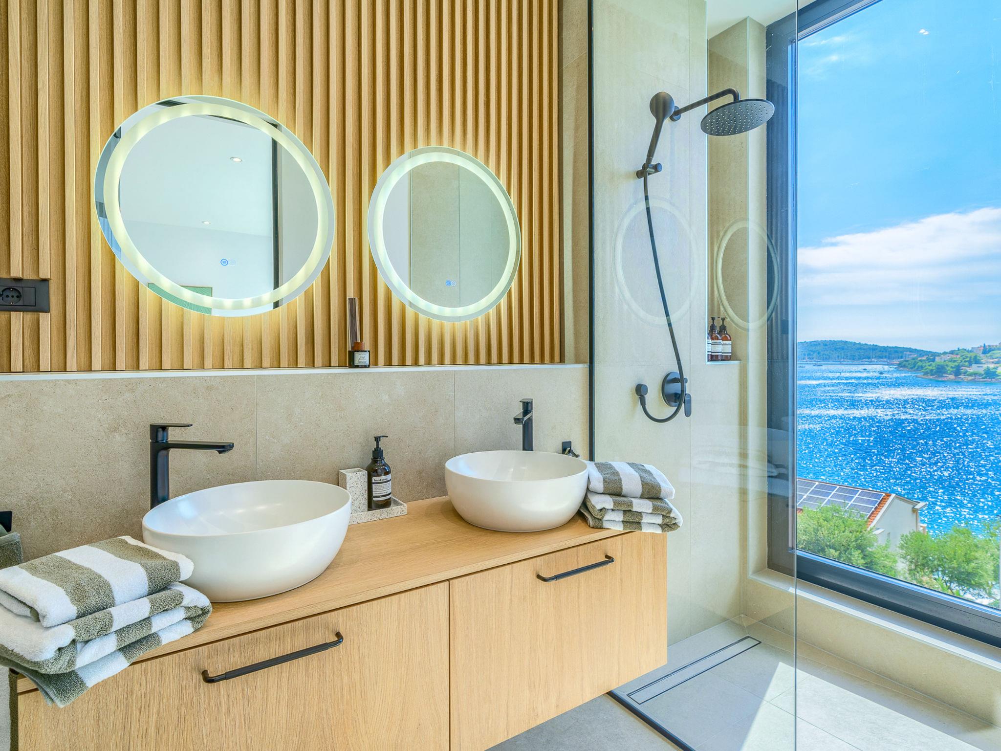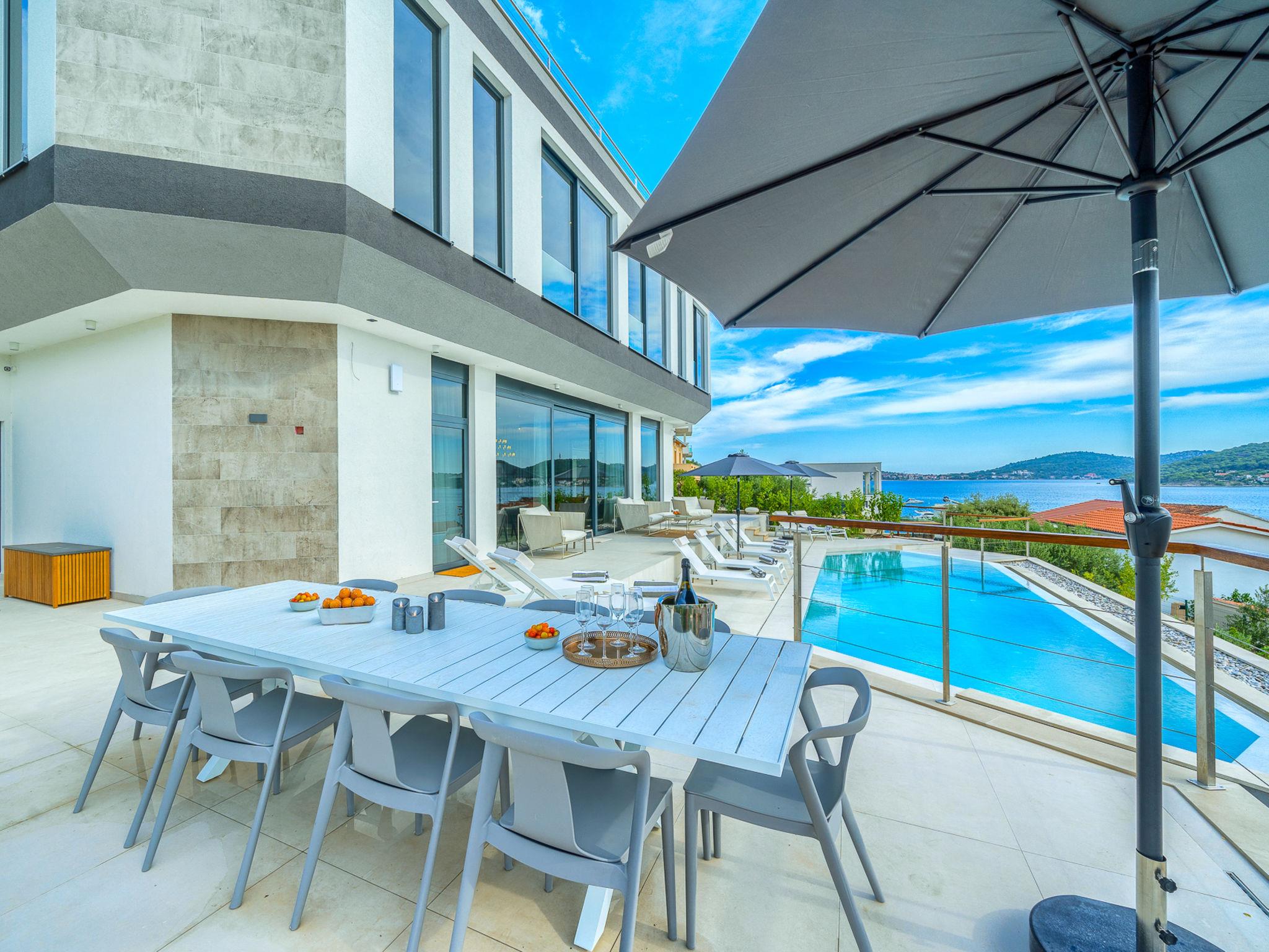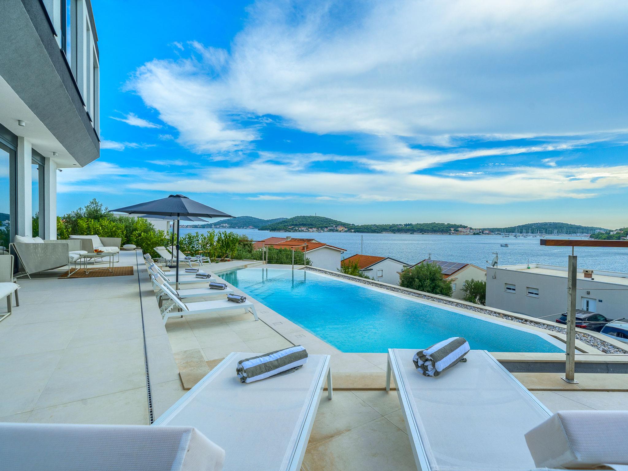 Freistehende Villa "Allina", auf 2 Stockwerken. Zatoglav, 5 km vom Zentrum von Rogoznica, ruhige, sonnige, erhöhte Lage, 50 m vom Meer, 180 m vom Strand, Richtung Westen. Zur Alleinbenutzung: Grundstück 750 m2, Schwimmbad eckig (50 m2, 150 cm tief, saisonale Verfügbarkeit: 01.Mai. - 01.Okt.). Aussendusche, Terrasse (15 m2), Grill. Im Hause: Internetzugang, Wireless LAN, Waschmaschine, Wäschetrockner. Parkplatz (für 3 Autos) beim Haus auf dem Grundstück. Einkaufsgeschäft 4 km, Restaurant 5 km, Bäckerei 4 km, Bushaltestelle 1.5 km, Felsstrand 180 m. Jacht-Hafen 5 km.