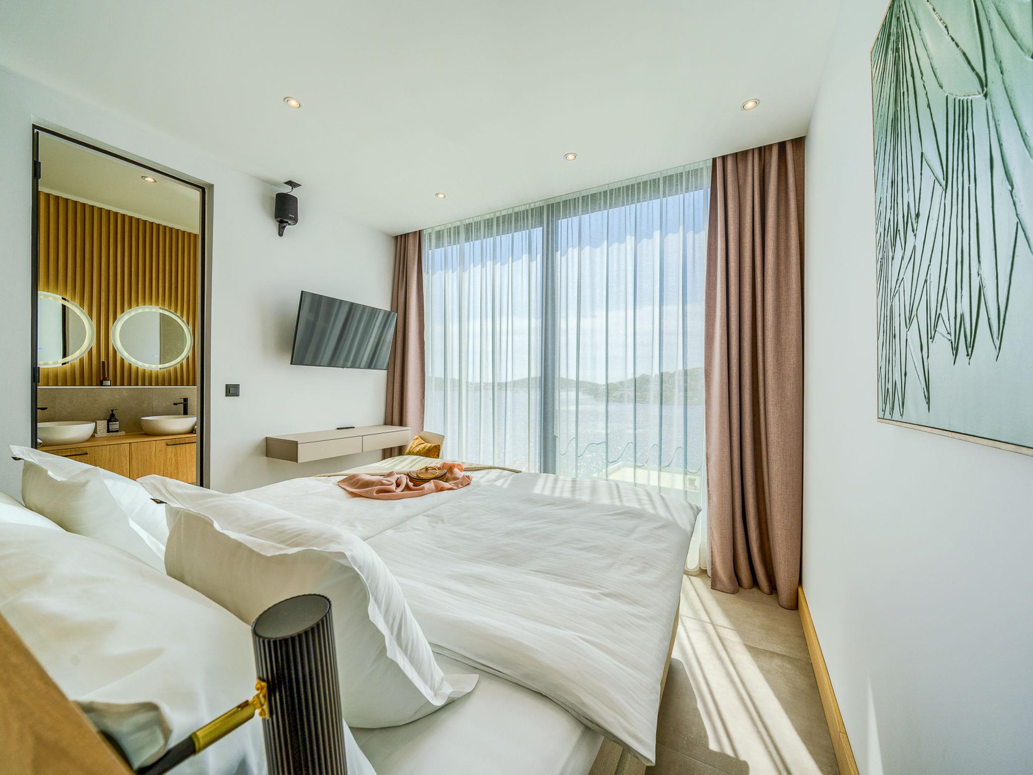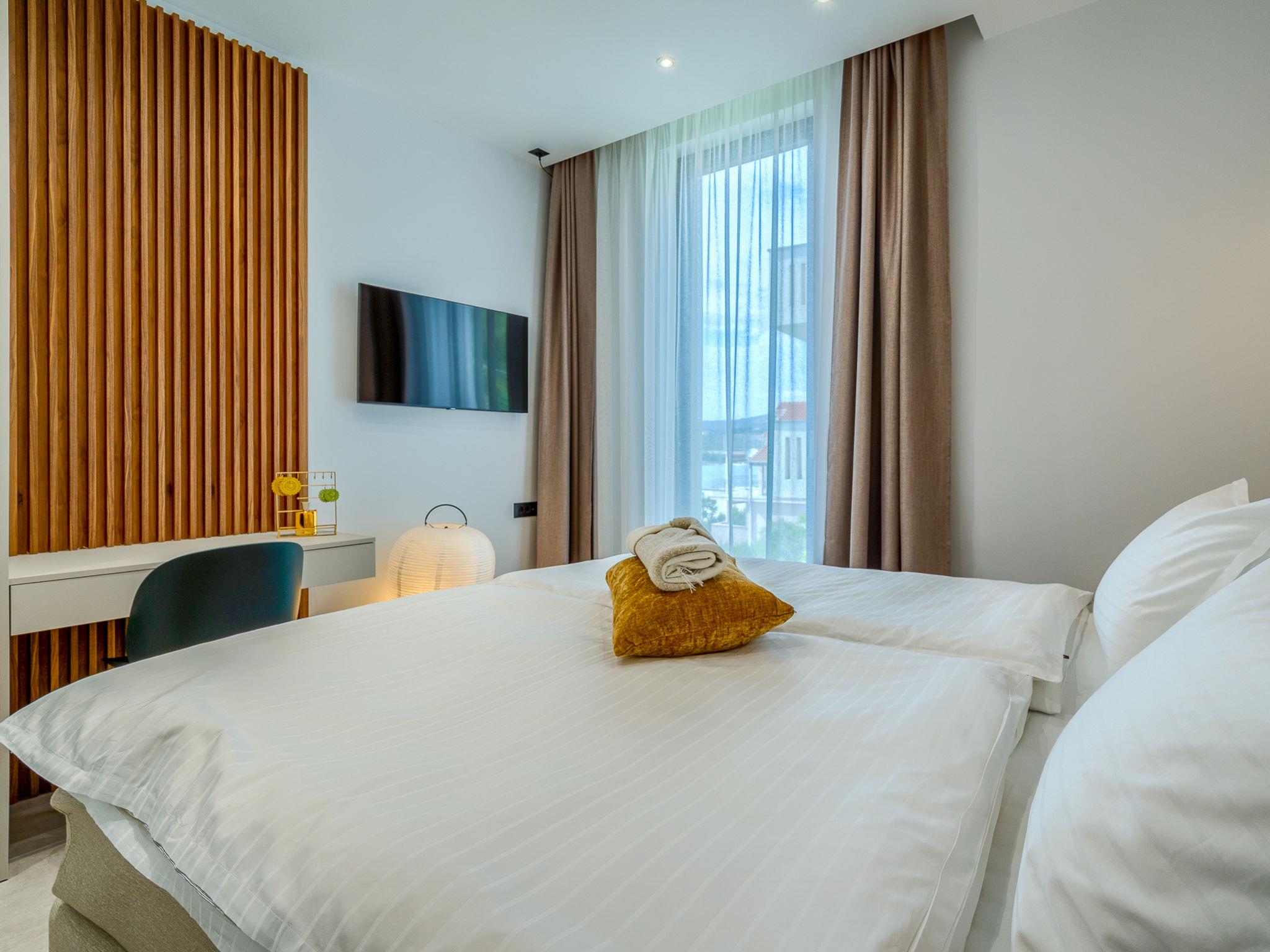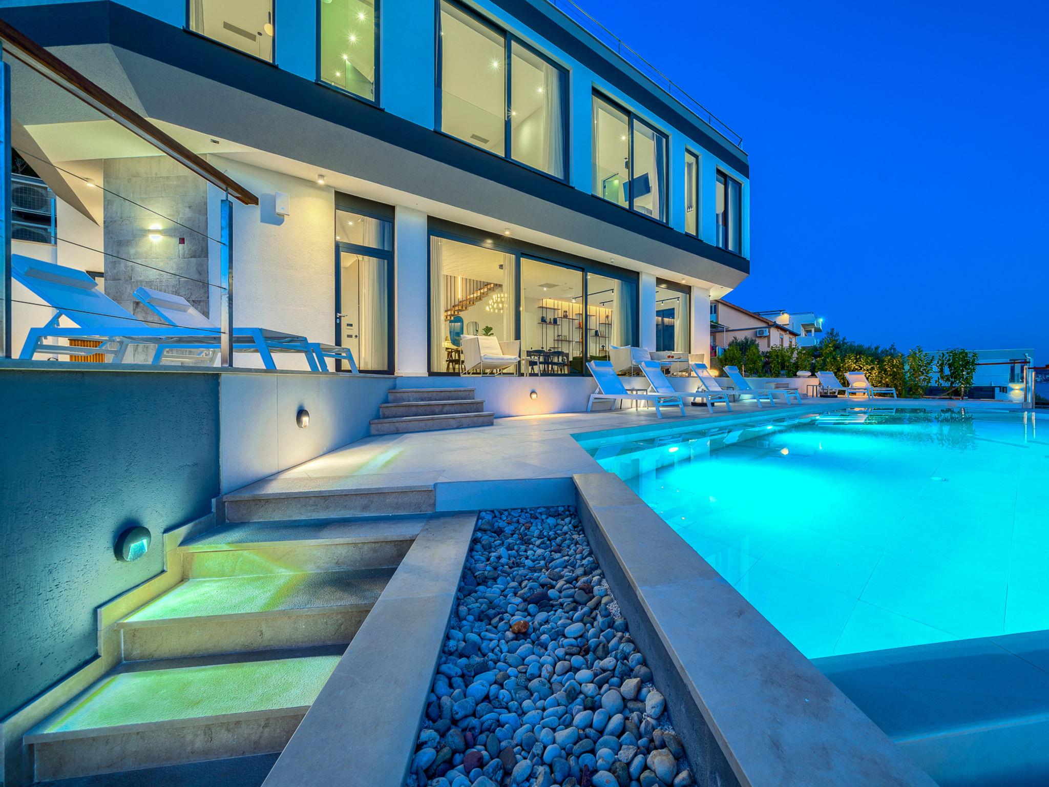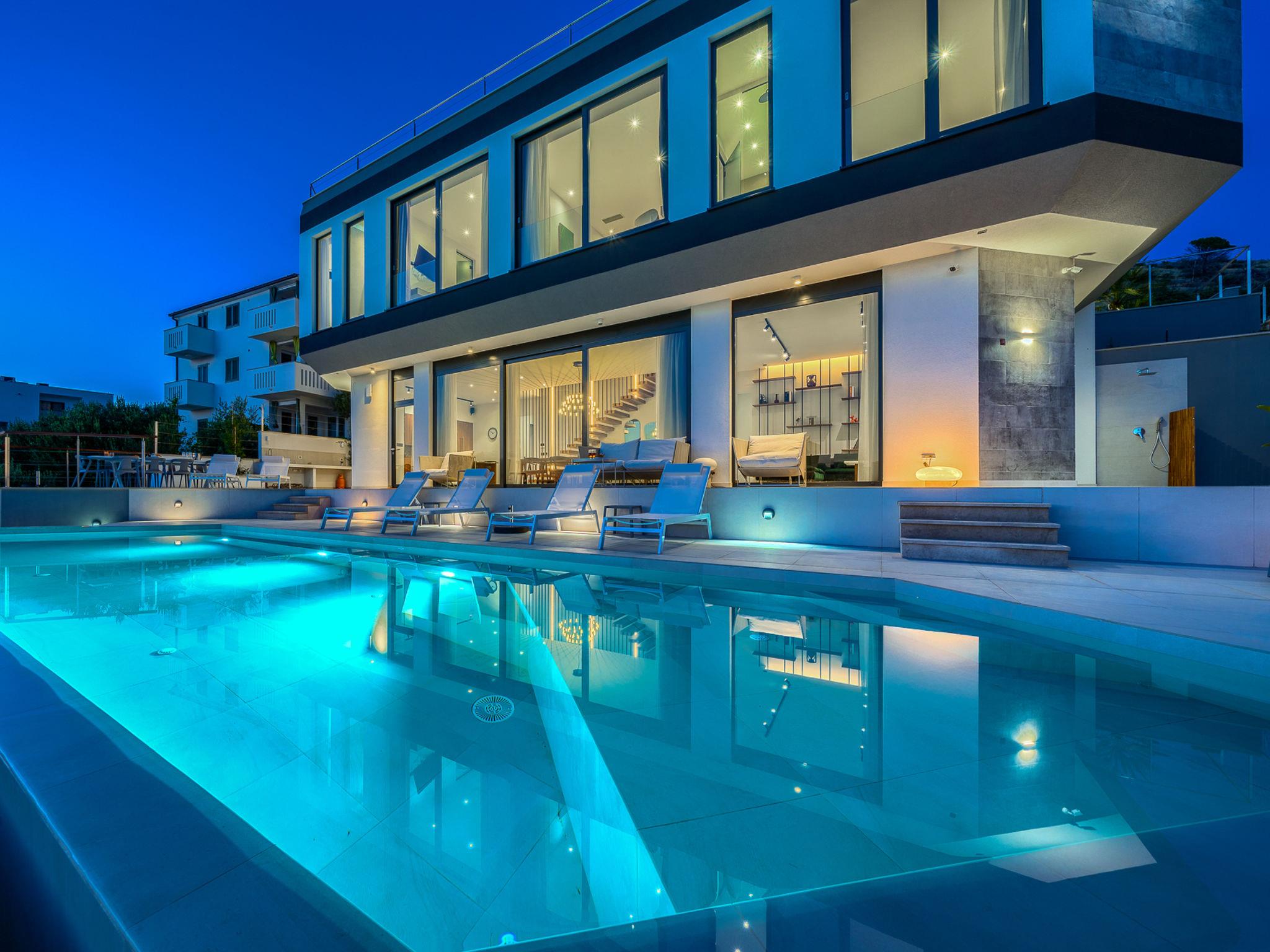 Freistehende Villa "Allina", auf 2 Stockwerken. Zatoglav, 5 km vom Zentrum von Rogoznica, ruhige, sonnige, erhöhte Lage, 50 m vom Meer, 180 m vom Strand, Richtung Westen. Zur Alleinbenutzung: Grundstück 750 m2, Schwimmbad eckig (50 m2, 150 cm tief, saisonale Verfügbarkeit: 01.Mai. - 01.Okt.). Aussendusche, Terrasse (15 m2), Grill. Im Hause: Internetzugang, Wireless LAN, Waschmaschine, Wäschetrockner. Parkplatz (für 3 Autos) beim Haus auf dem Grundstück. Einkaufsgeschäft 4 km, Restaurant 5 km, Bäckerei 4 km, Bushaltestelle 1.5 km, Felsstrand 180 m. Jacht-Hafen 5 km.