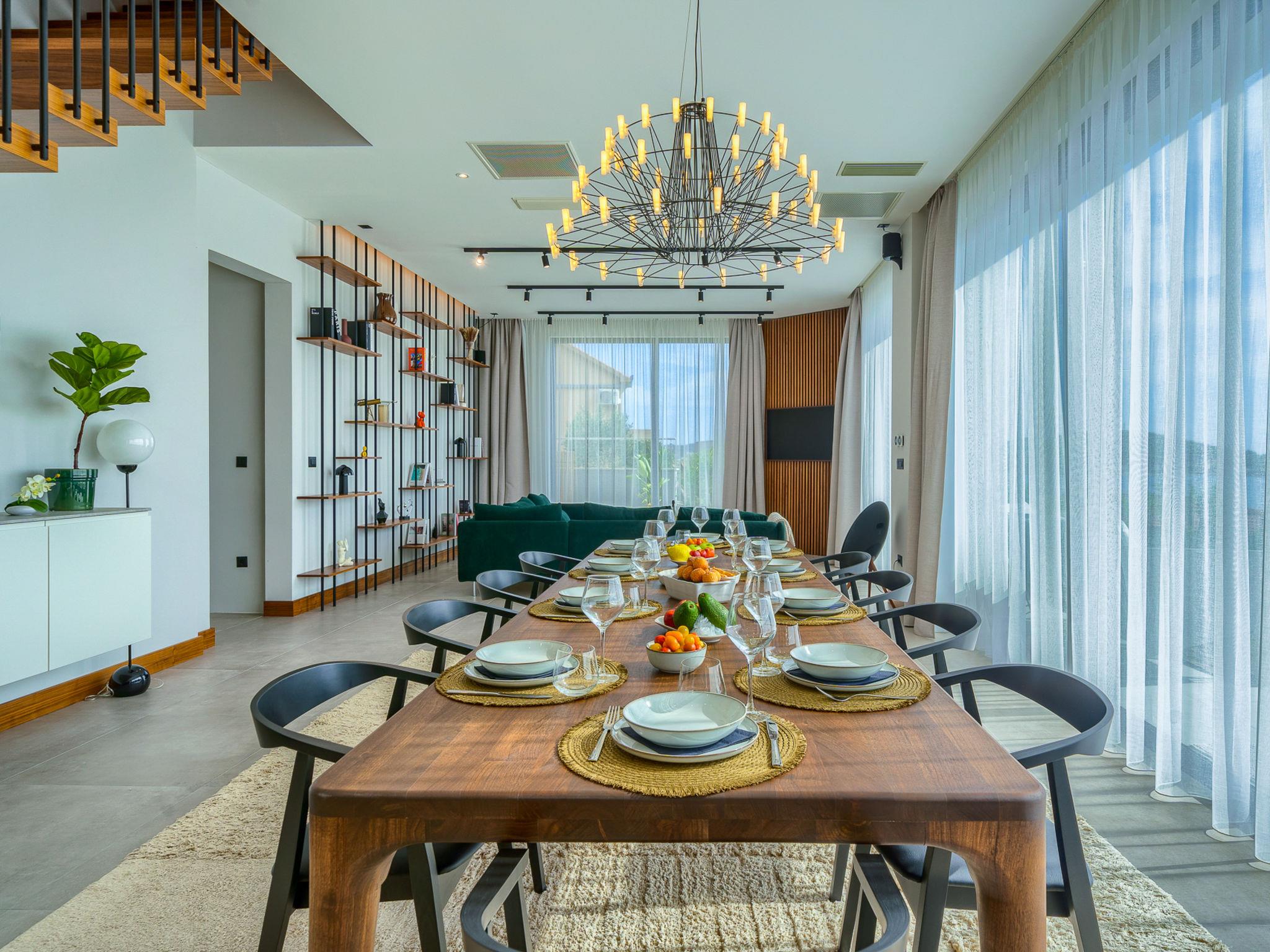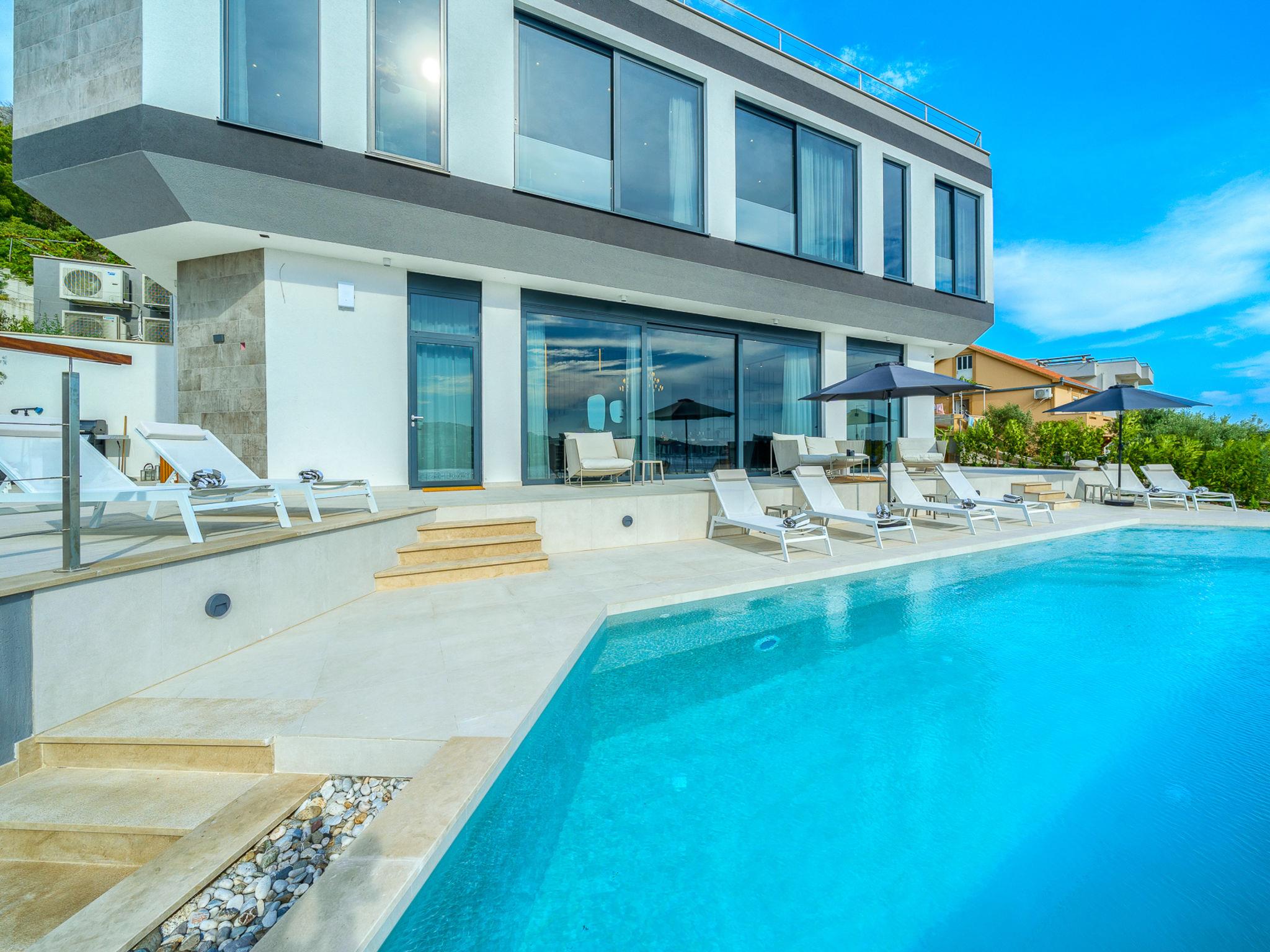7-Zimmer-Villa 340 m2 auf 2 Stockwerken. Schön und stilvoll eingerichtet: Wohn-/Esszimmer mit Sat-TV (Flachbildschirm), Klimaanlage. Ausgang zur Terrasse, zum Schwimmbad. (180 cm, Länge 200 cm). Offene Küche (Backofen, Geschirrspüler, 4 Glaskeramikplatten, Toaster, Wasserkocher, Mikrowelle, Tiefkühler, elektrische Kaffeemaschine). Dusche/WC. Obergeschoss: 2 Zimmer, jedes Zimmer mit 1 franz. Bett (180 cm, Länge 200 cm), Sat-TV (Flachbildschirm), Klimaanlage. 2 Zimmer, jedes Zimmer mit 1 franz. Bett (180 cm, Länge 200 cm), Dusche/WC, Doppelwaschbecken und Sat-TV (Flachbildschirm), Klimaanlage. 2 Zimmer, jedes Zimmer mit 1 franz. Bett (180 cm, Länge 200 cm), Bad/Dusche/WC und Sat-TV (Flachbildschirm), Klimaanlage. Spielzimmer mit Sat-TV (Flachbildschirm), Klimaanlage. Dusche/WC. Terrasse 15 m2. Liegestühle (10). Schöne Sicht auf das Meer. Zur Verfügung: Waschmaschine, Safe, Kinderhochstuhl, Haartrockner. Internet (WLAN, gratis).