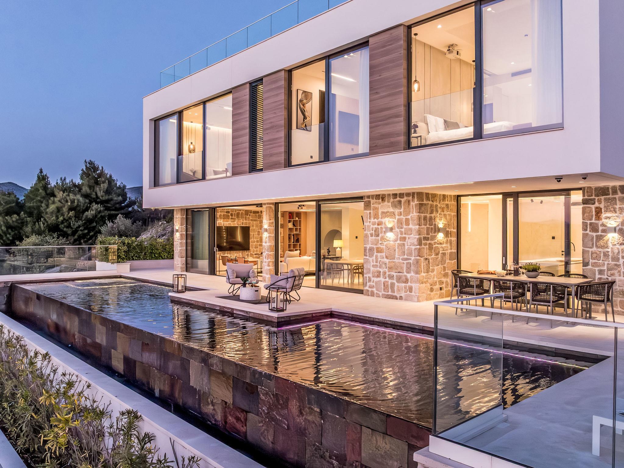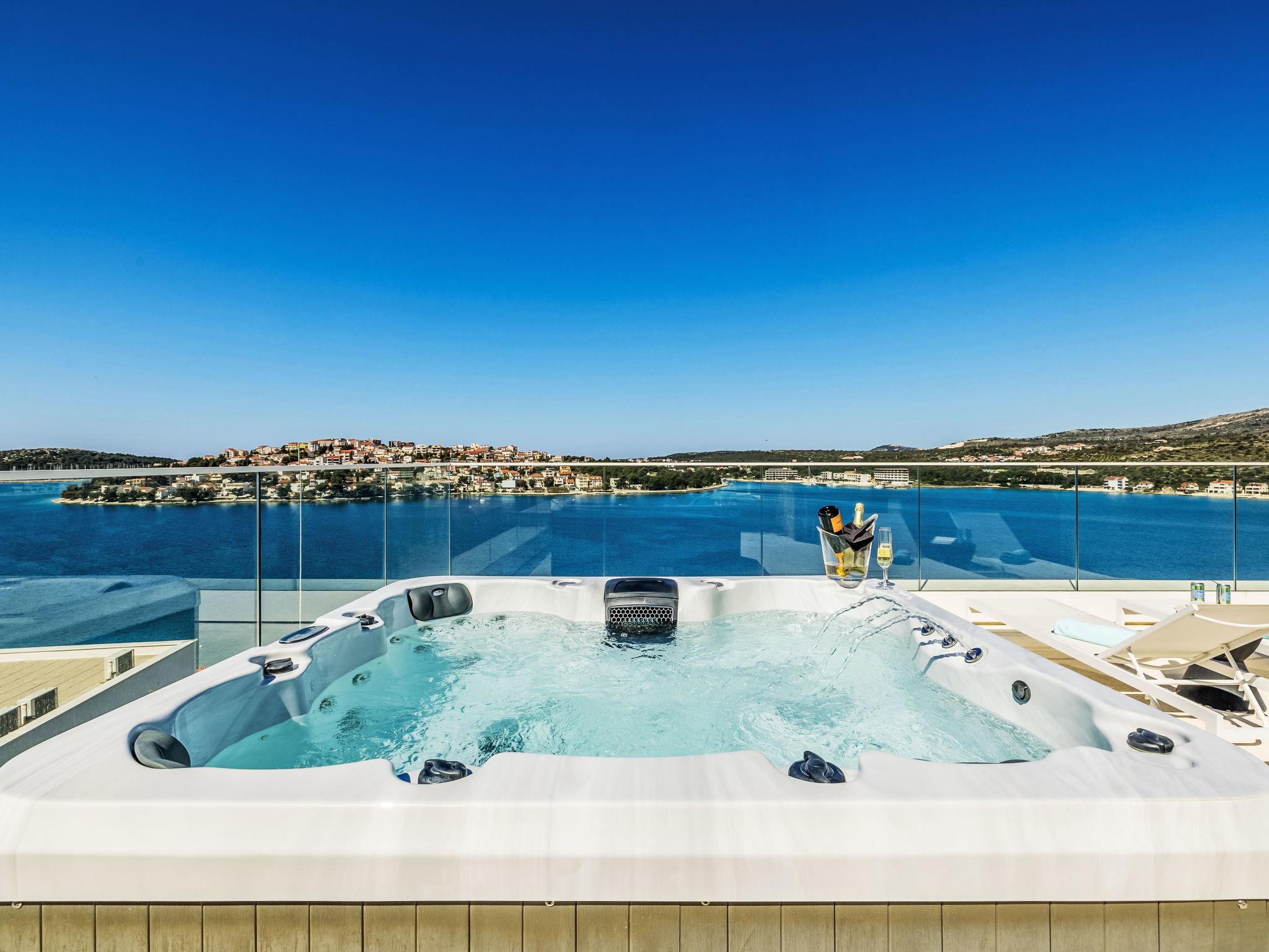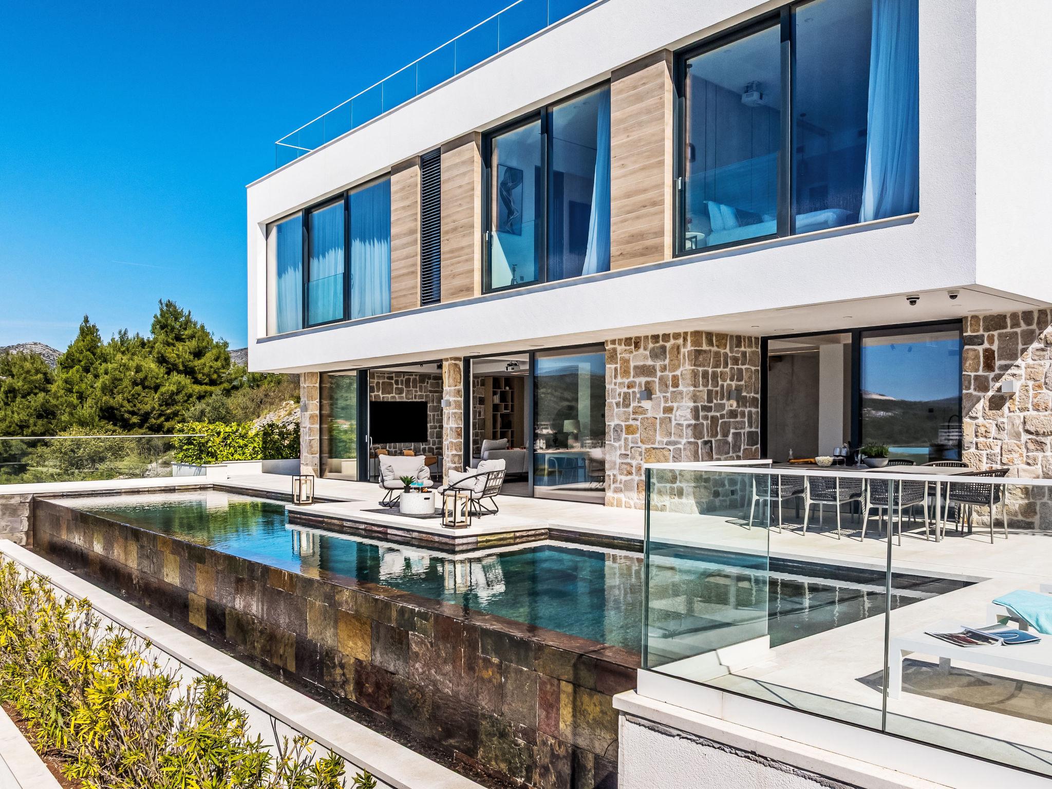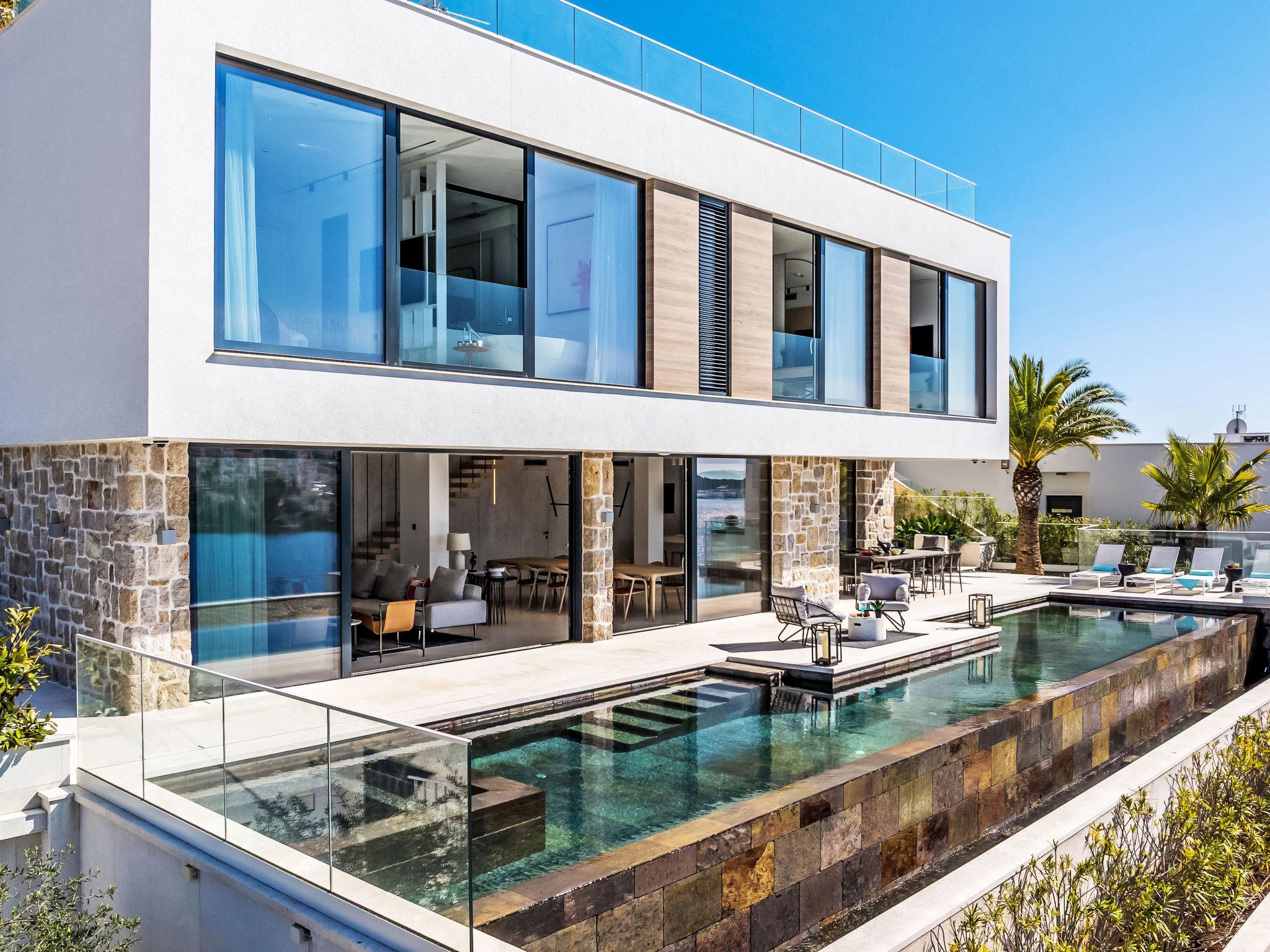 Freistehende Villa "Vista II", auf 2 Stockwerken. Zatoglav, 5 km vom Zentrum von Rogoznica, ruhige, sonnige, erhöhte Lage, 90 m vom Meer, 90 m vom Strand, Richtung Westen. Zur Mitbenutzung: Privatstrand, Sprudelbad, Gartenmöbel. Zur Alleinbenutzung: Grundstück 500 m2, Schwimmbad eckig (50 m2, 150 cm tief, saisonale Verfügbarkeit: 01.Mai. - 01.Okt.) mit Innentreppe. Aussendusche, Sprudelbad, Terrasse (15 m2), Gartenmöbel, Grill. Im Hause: Internetzugang, Wireless LAN, Waschmaschine, Wäschetrockner. Parkplatz (für 3 Autos) beim Haus auf dem Grundstück. Einkaufsgeschäft 4 km, Restaurant 5 km, Bäckerei 4 km, Bushaltestelle 1.5 km, Felsstrand 90 m. Jacht-Hafen 5 km.