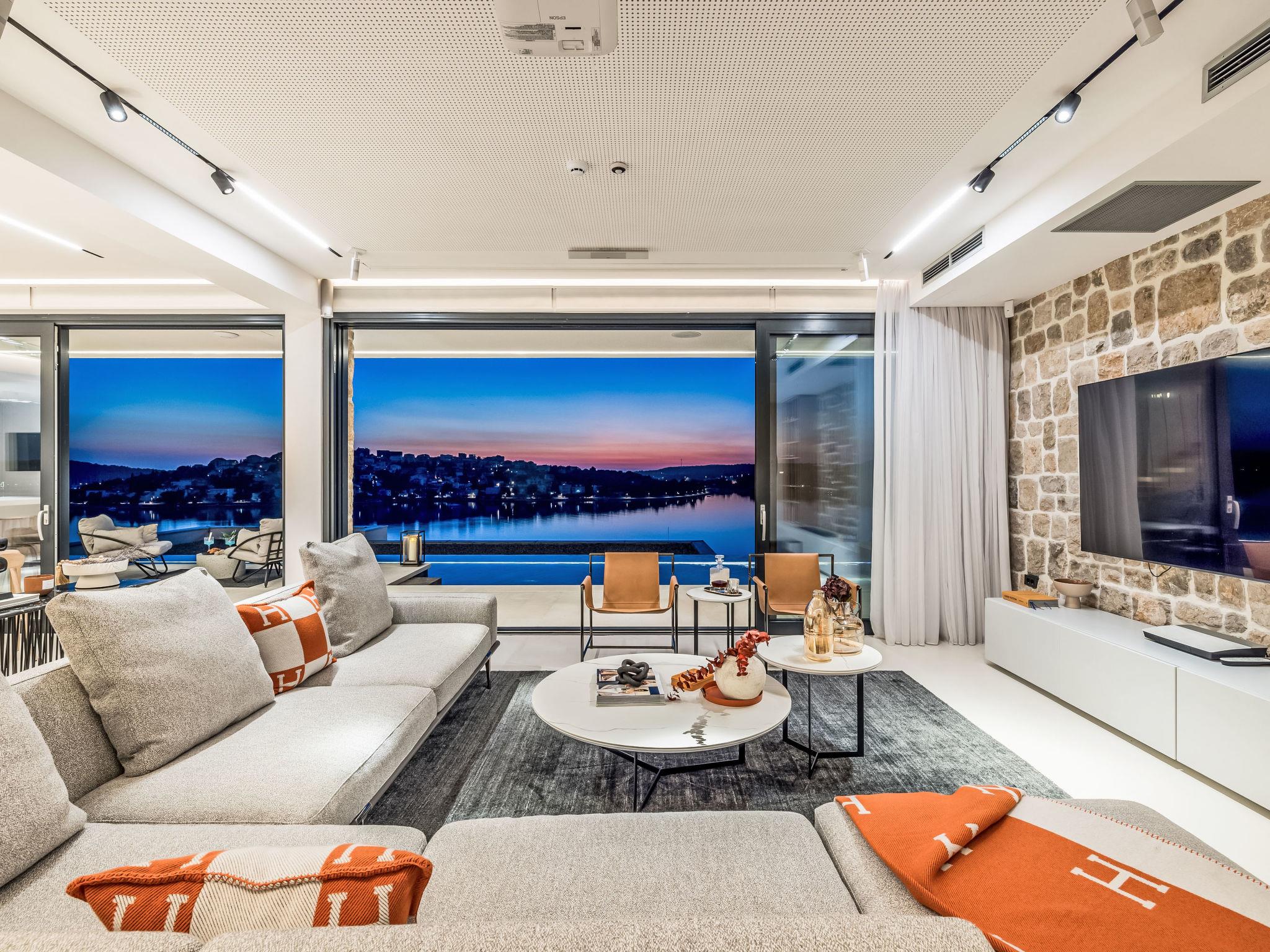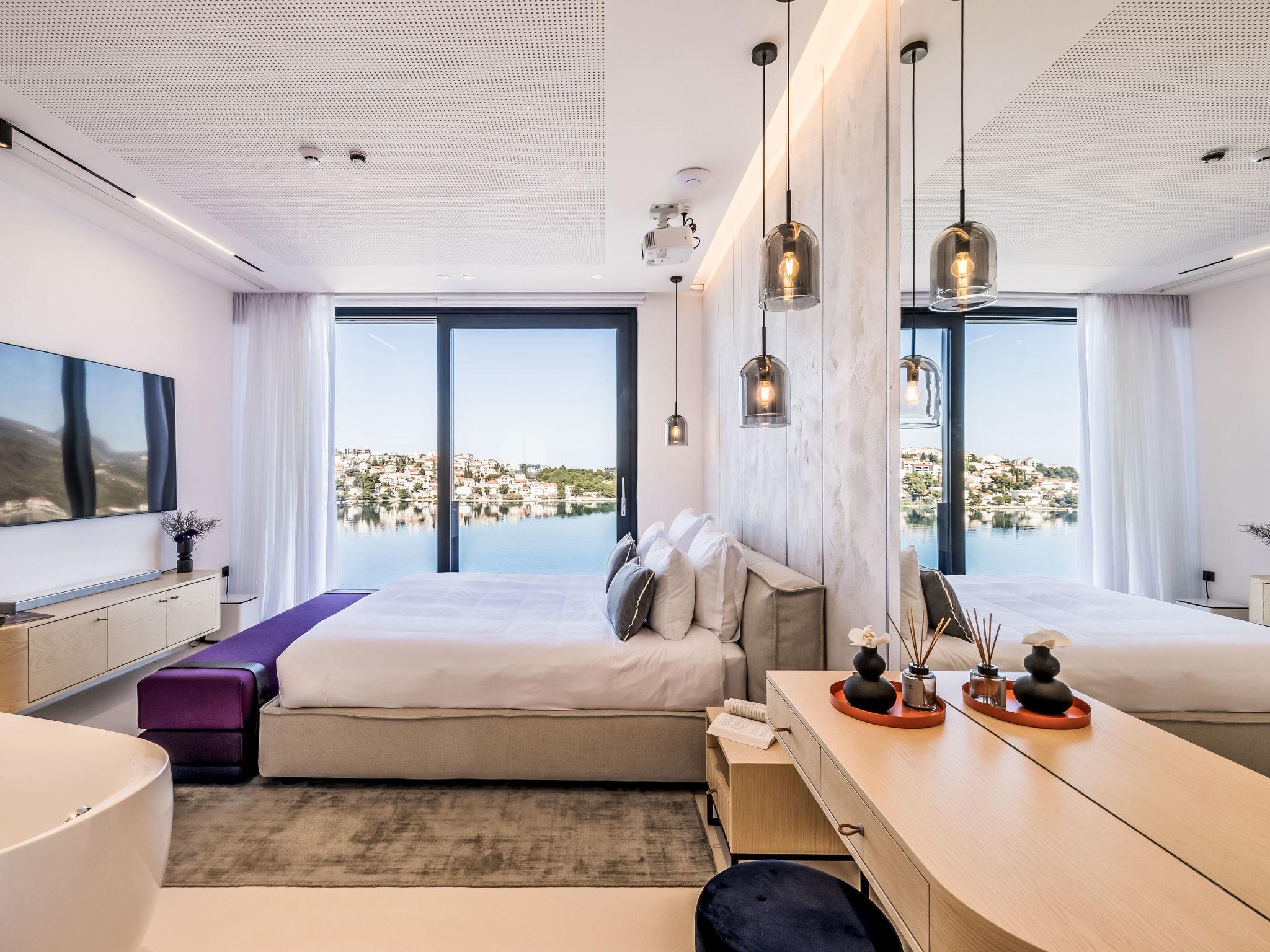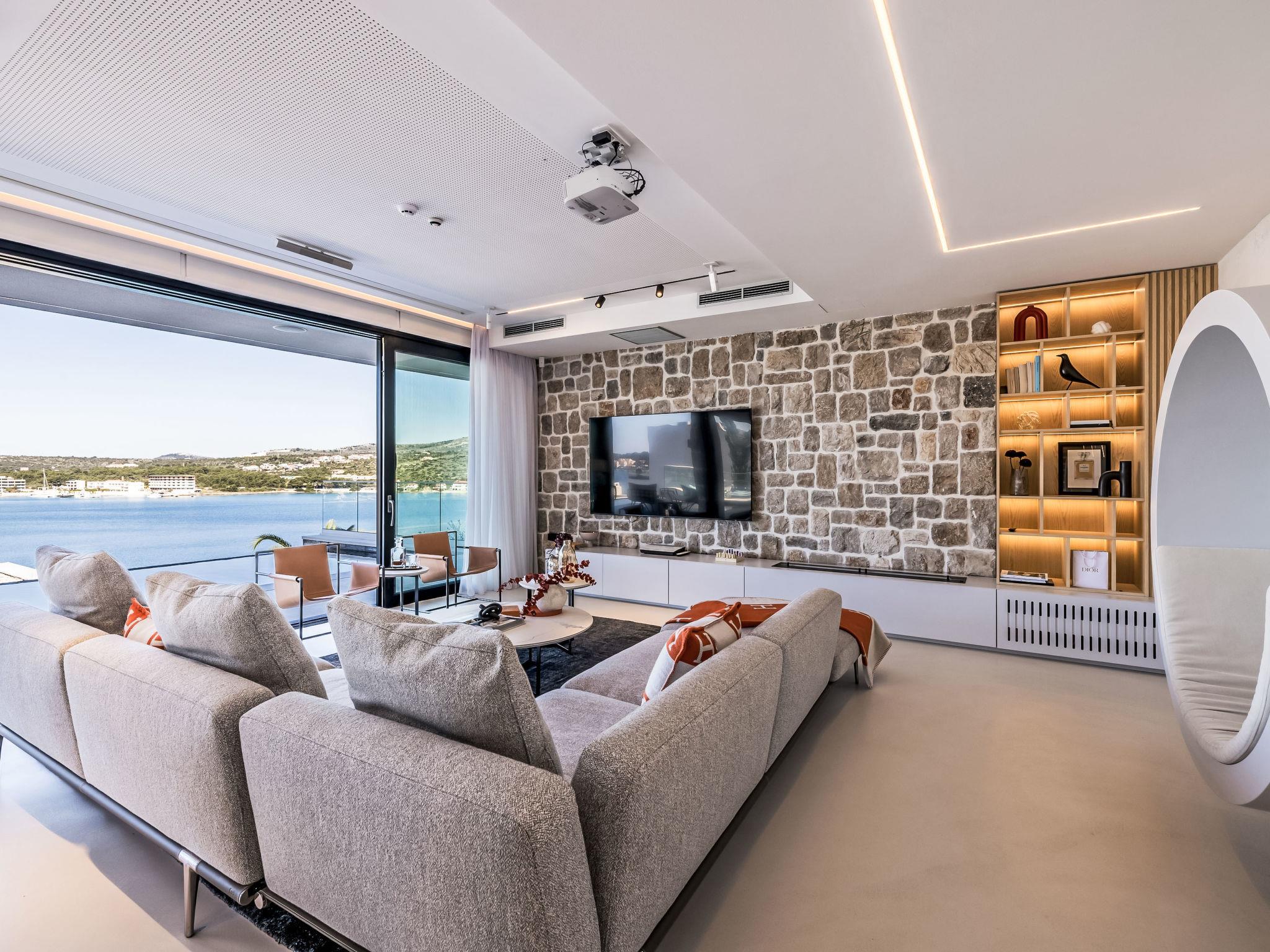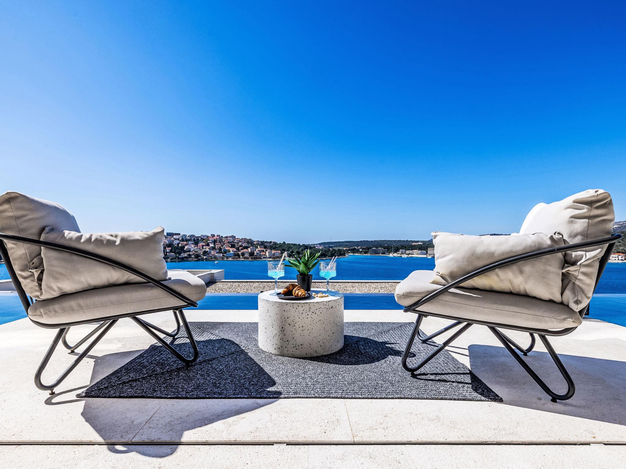 Freistehende Villa "Vista II", auf 2 Stockwerken. Zatoglav, 5 km vom Zentrum von Rogoznica, ruhige, sonnige, erhöhte Lage, 90 m vom Meer, 90 m vom Strand, Richtung Westen. Zur Mitbenutzung: Privatstrand, Sprudelbad, Gartenmöbel. Zur Alleinbenutzung: Grundstück 500 m2, Schwimmbad eckig (50 m2, 150 cm tief, saisonale Verfügbarkeit: 01.Mai. - 01.Okt.) mit Innentreppe. Aussendusche, Sprudelbad, Terrasse (15 m2), Gartenmöbel, Grill. Im Hause: Internetzugang, Wireless LAN, Waschmaschine, Wäschetrockner. Parkplatz (für 3 Autos) beim Haus auf dem Grundstück. Einkaufsgeschäft 4 km, Restaurant 5 km, Bäckerei 4 km, Bushaltestelle 1.5 km, Felsstrand 90 m. Jacht-Hafen 5 km.
