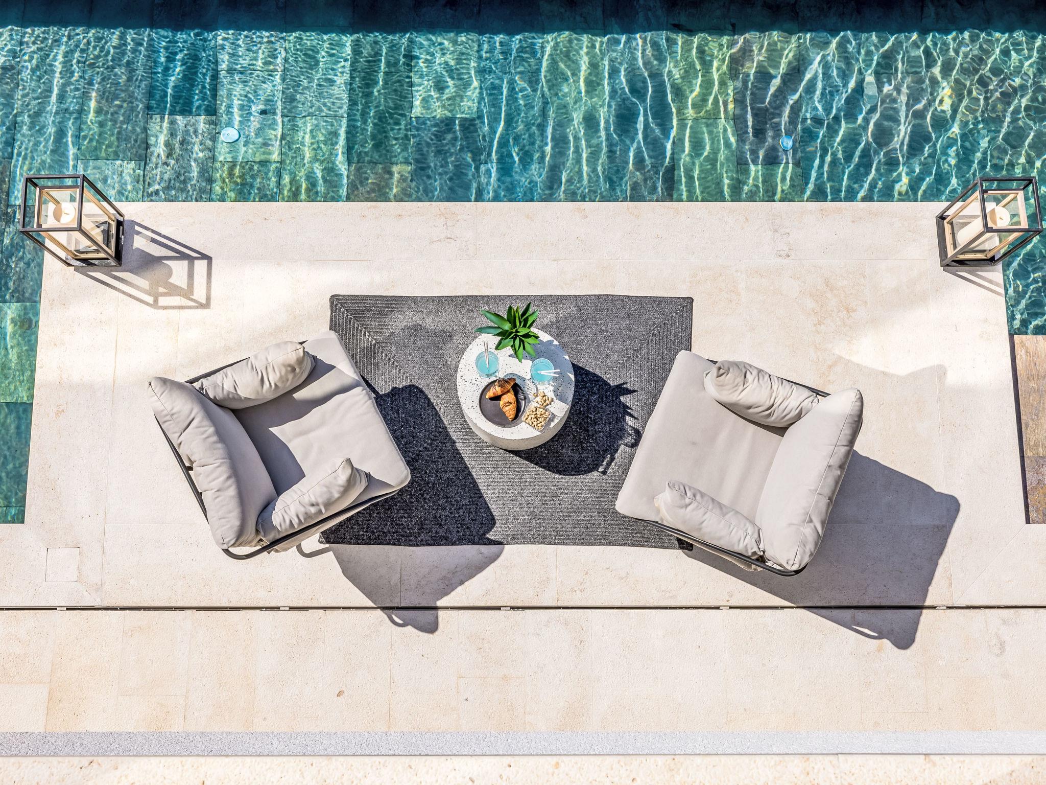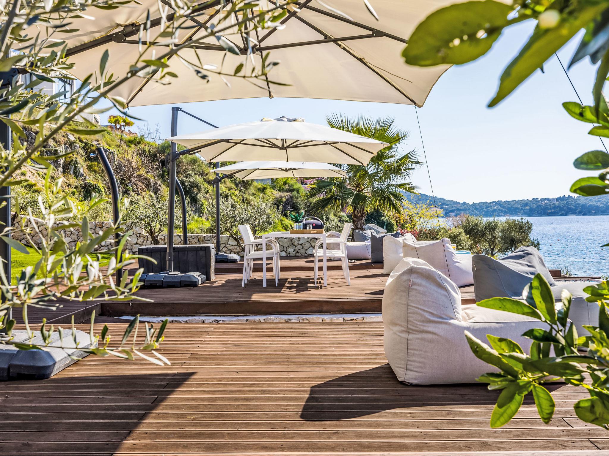 4-Zimmer-Villa 340 m2 auf 2 Stockwerken. Schön und stilvoll eingerichtet: Wohn-/Esszimmer mit Sat-TV (Flachbildschirm), Klimaanlage. Ausgang zur Terrasse, zum Schwimmbad. Offene Küche (Backofen, Geschirrspüler, 4 Glaskeramikplatten, Toaster, Wasserkocher, Mikrowelle, Tiefkühler, elektrische Kaffeemaschine). Sep. WC. Obergeschoss: 1 Zimmer mit 1 franz. Bett (180 cm, Länge 200 cm), Dusche/WC und Sat-TV (Flachbildschirm), Klimaanlage. 1 Zimmer mit 1 franz. Bett (200 cm, Länge 200 cm), Dusche/WC und Sat-TV (Flachbildschirm), Klimaanlage. 1 Zimmer mit 1 franz. Bett (180 cm, Länge 200 cm), Bad/Dusche/WC, Doppelwaschbecken und Sat-TV (Flachbildschirm), Klimaanlage. Terrasse 15 m2 teilweise Terrasse 100 m2. Terrassenmöbel, Gartengrill (mobil), Liegestühle (6). Schöne Sicht auf das Meer. Zur Verfügung: Waschmaschine, Safe, Kinderhochstuhl, Haartrockner. Internet (WLAN, gratis).