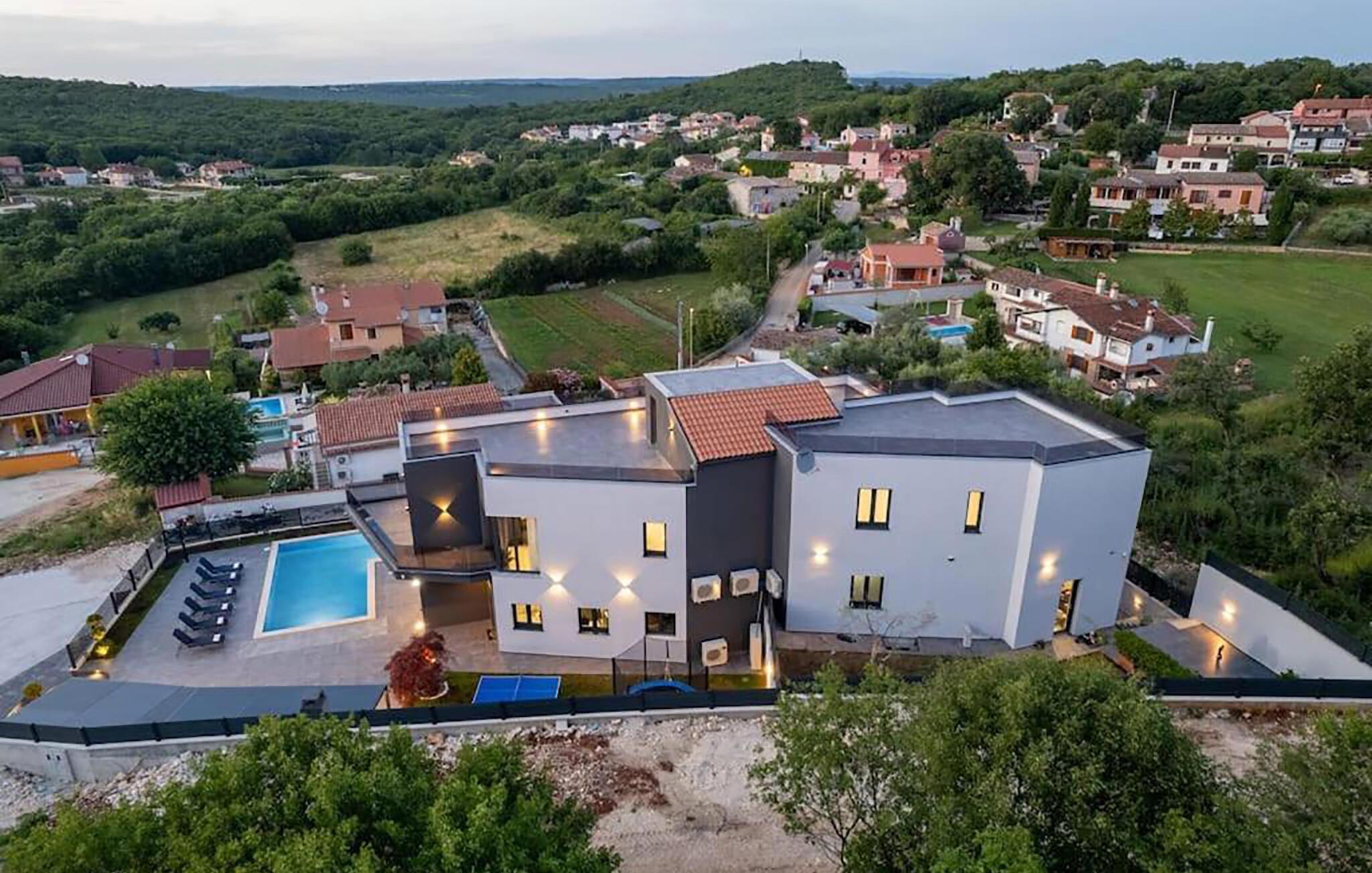 Dieses beeindruckende Ferienhaus in Sorici, idyllisch in der malerischen Landschaft Istriens gelegen, bietet Ihnen den idealen Rückzugsort für Ruhe, Komfort und Entspannung. Beginnen Sie Ihren Tag mit einem erfrischenden Bad im Pool und lassen Sie den Alltag hinter sich, während Sie auf den bequemen Sonnenliegen entspannen. Vergnügen Sie sich gelegentlich auch beim Hüpfen auf dem Trampolin oder bei einem Tischtennis-Mach. Der Balkon im Obergeschoss bietet Ihnen einen traumhaften Ausblick auf die umliegende Landschaft, während die überdachte der ideale Ort für gesellige Mahlzeiten im Kreise der Familie ist.