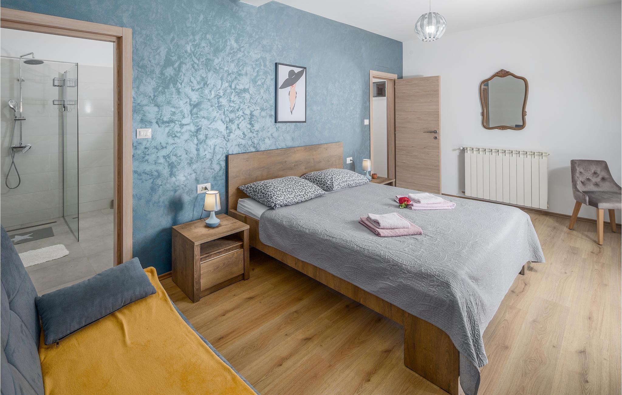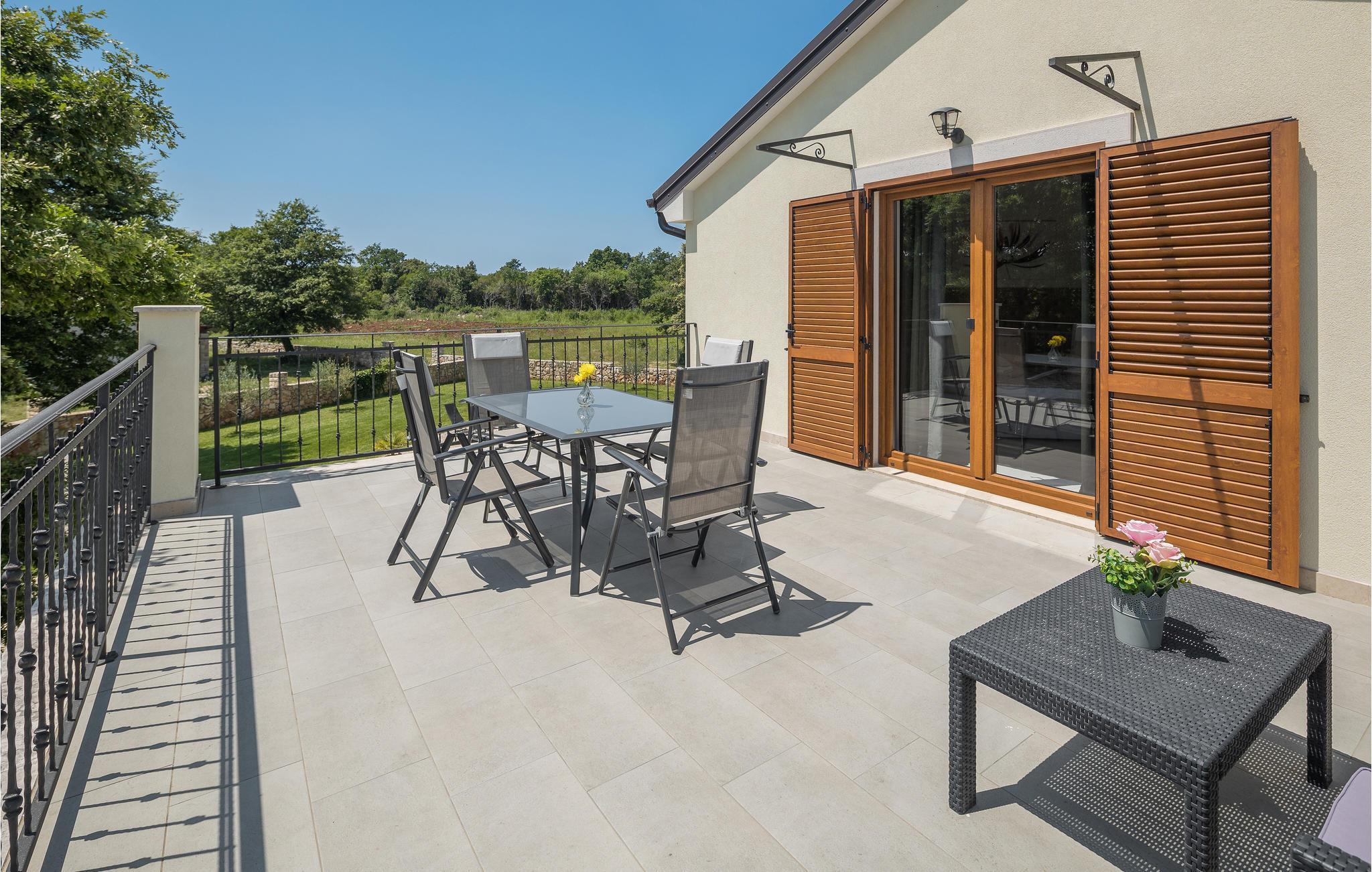 In ruhiger Lage bietet dieses wunderbare Ferienhaus mit Pool viel Privatsphäre für einen erholsamen Urlaub mit Familie und Freunden. Das geräumige Ferienhaus bietet seinen Gästen viel Komfort und besteht aus vier Schlafzimmern mit en-suite Badezimmern, Wohnzimmer, Küche und Essbereich sowie direktem Zugang zur Terrasse und Poolbereich. Die Terrasse ist überdacht und hat eine Außenküche, auf der Sie auch im Freien köstliche Mahlzeiten zubereiten können. Im Obergeschoss sind zwei weitere Terrassen mit Ausblick auf das umliegende Grün. Die ersten Strände erreichen Sie in etwa zehn Minuten Fahrt mit dem Auto. Besuchen Sie die bezaubernde Stadt Rovinj mit Ihrer Kirche der Hl. Euphemia, aber auch die Kleinstadt Bale strahlt einen besonderen Charme aus und ist ebenfalls einen Besuch wert. Auf dem Grundstück befindet sich ein großer, mit Salz behandelter Pool, in dem Sie schwimmen und entspannen können.