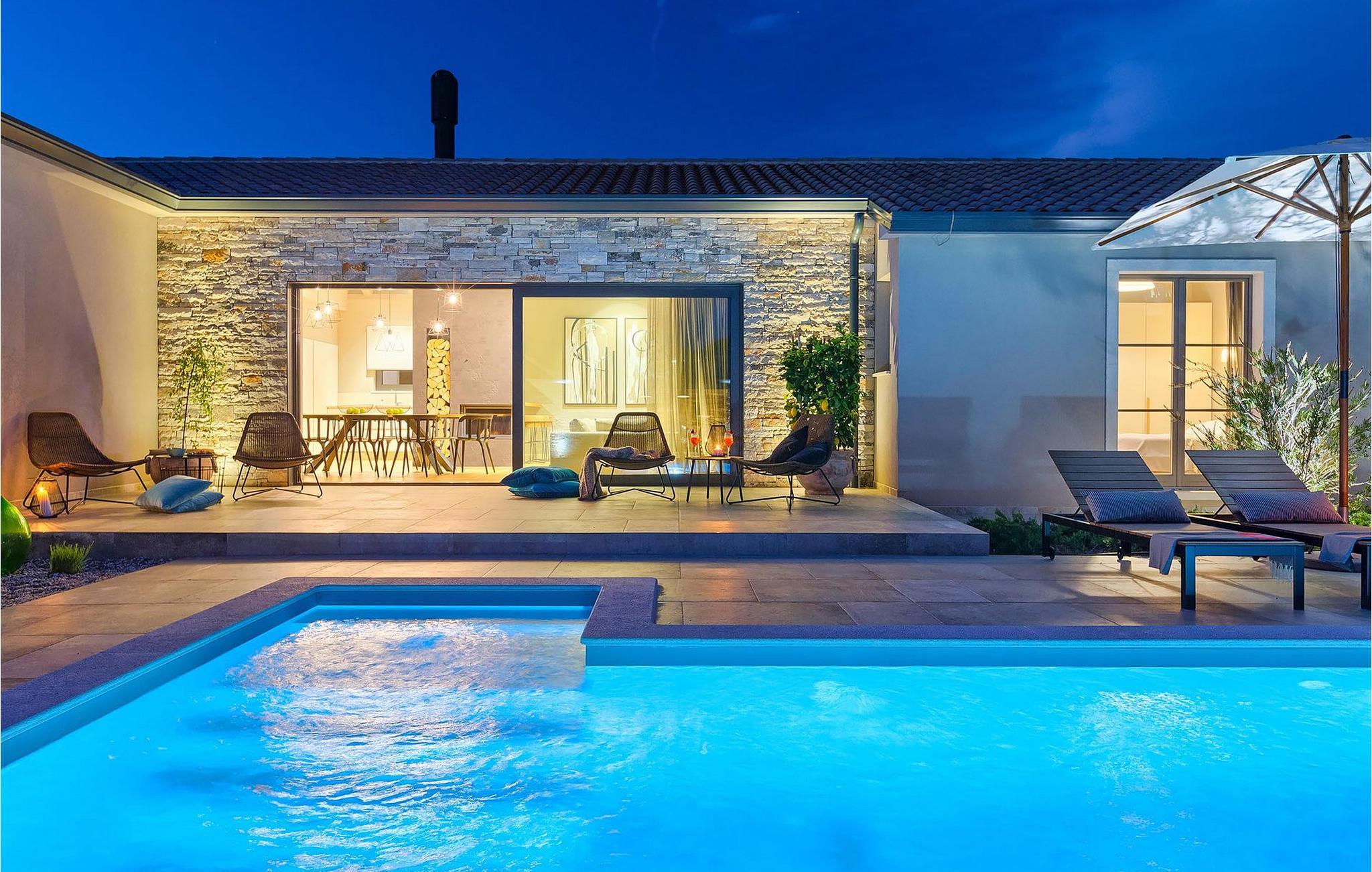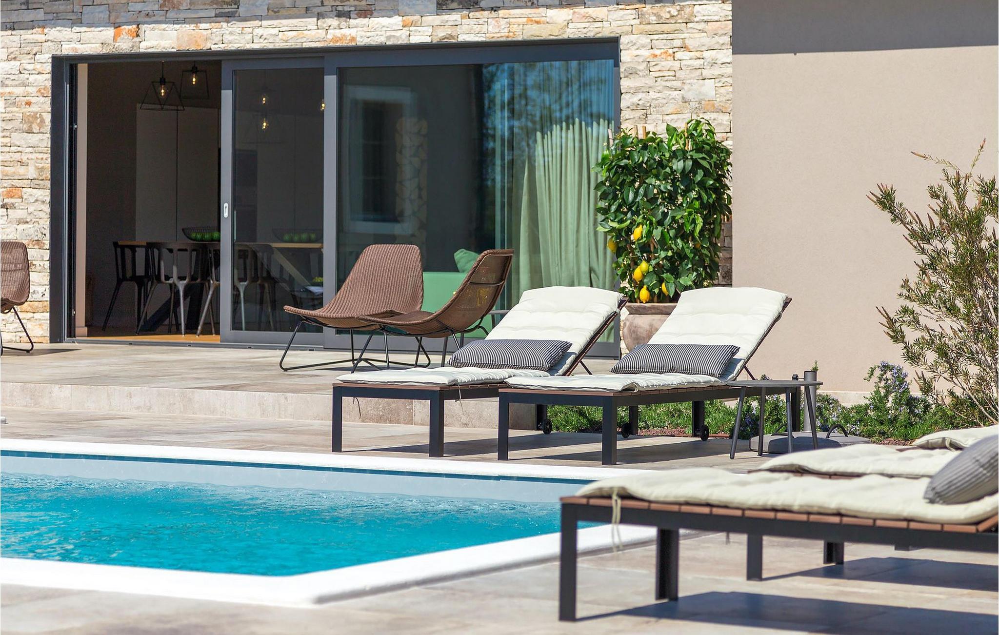 Sie werden von dem offenen Wohn- und Essbereich begeistert sein, mit Balkendecken und einem Kamin, der eine warme Atmosphäre schafft. Die voll ausgestattete Küche der Villa und 4 große Schlafzimmer mit galerieähnlichen Fenstern sind nicht weniger beeindruckend. Vom Erdgeschoss der Villa Grotte ist der Poolbereich zugängig, wo Sie Ihre Tage damit verbringen können, die warme Istrische Sonne zu genießen oder im einladenden Pool zu schwimmen und dabei den Blick auf eine kleine, aber dennoch atemberaubend reizvolle istrische Stadt zu genießen.
