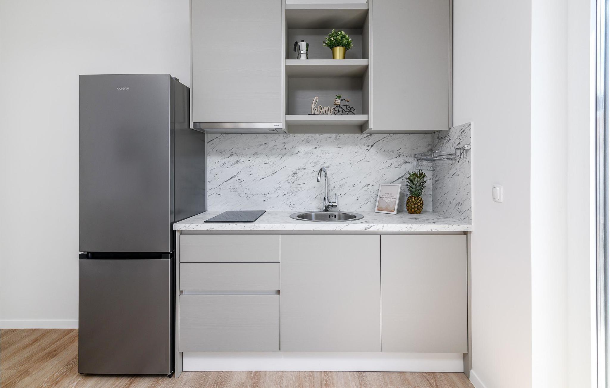 Die Küche verfügt über Warmwasser