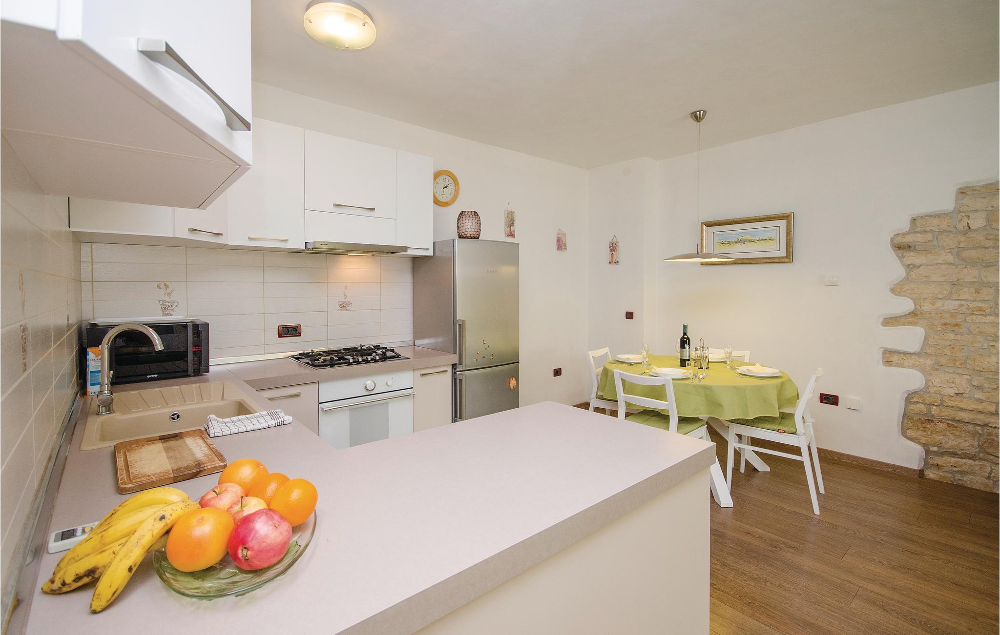 In der Nähe des schönen Rovinj und im Herzen eines alten Dorfes befindet sich dieses Reihenhaus. Es ist geschmackvoll und komfortabel eingerichtet. Da es komplett von Mauern umzäunt ist bietet es genügend Privatsphäre. Im Hof steht der Pool und lädt zum Plantschen und Erfrischen. Im Erdgeschoss gibt es eine große überdachte Terrasse, eine Küche mit Wohn- und Essbereich und ein Bad, während im ersten Stock zwei Schlafzimmer und ein Badezimmer sind. Für alle Freunde des Fahrradsportes gibt es u. a. einen Radweg vom Ferienobjekt nach Rovinj.