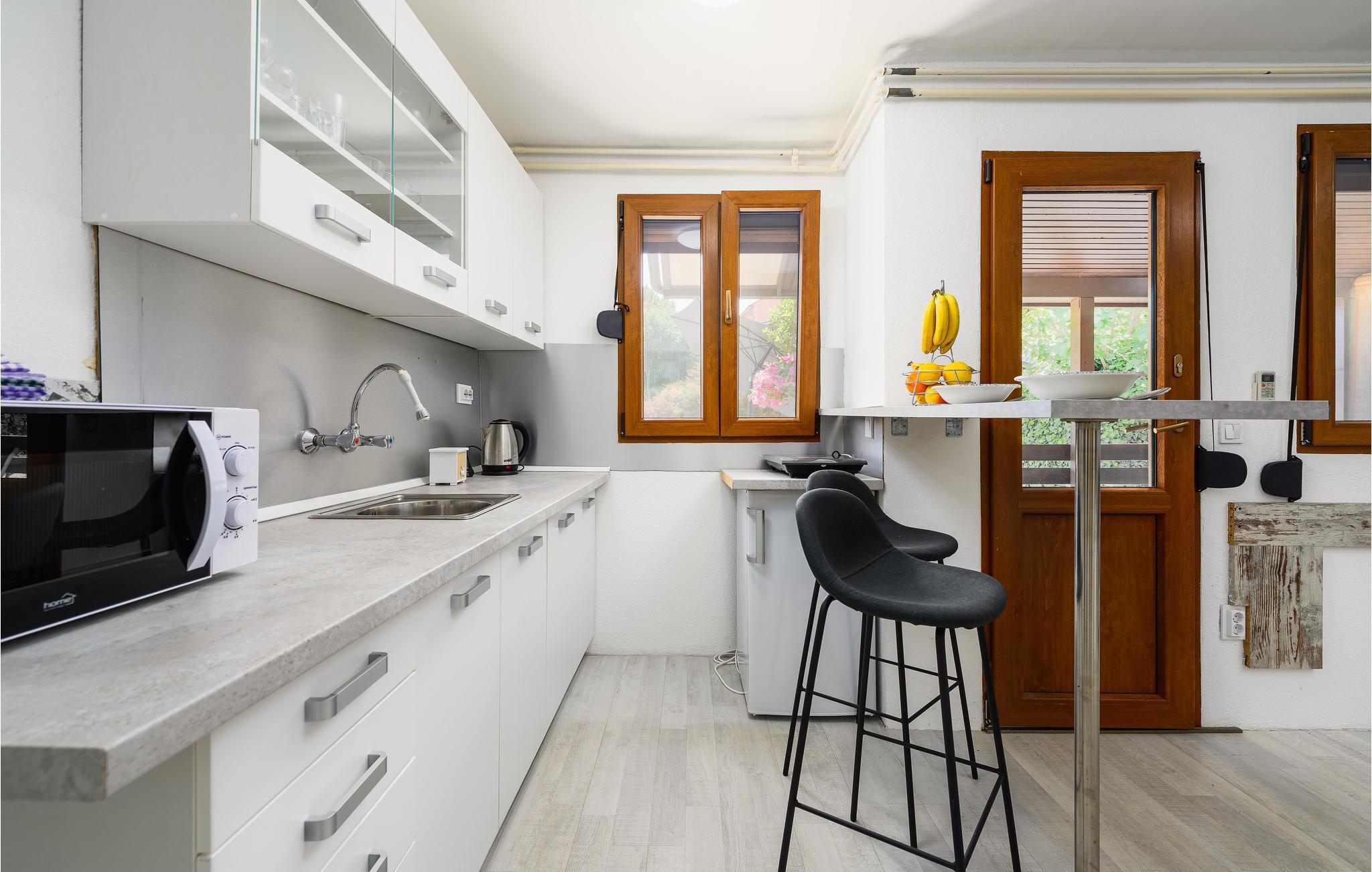 Für wenig Geld haben wir hier eine tolle Unterkunft für 4 Personen bekommen. Buchung über Novasol sehr einfach, kurz vor Ankunft haben wir per WhatsApp einen Link für Self Check in bekommen und vor Ort hat uns trotz 8h Verspätung, Frau Marija ganz herzlich in Empfang genommen. Sie hat uns gleich wichtige Infos gegeben z.B. dass es fußläufig einen kleinen Supermarkt und ein Restaurant gibt. Beides sehr zu empfehlen! Die Anlage ist super schön angelegt, und der Gemeinschftspool groß genug für alle Gäste mit ausreichend Liegen. Der Pool wurde täglich gereinigt. Die Unterkunft bietet das nötigste für den Urlaub. Die Zimmer sind sehr klein aber sauber. Es gibt eine kleine Küchezeile mit allem was man braucht, Kühlschrank mit Mini Gefrierfach, Mikrowelle, Wasserkocher, Kaffeemaschine und zwei Herdplatten. Im Schrank war sogar ein Bügeltisch mit Bügeleisen und draußen kann man einen Wäscheständer aufstellen. Bad mit Dusche und WC, Föhn war vorhanden. Ausreichend Handtücher, diese wurden sogar nach ein paar Tagen ausgetauscht.Rundum wie keinen großen Luxus braucht ist hier genau richtig. Einziges Manko- sehr klein und hellhörig. Mit zwei Erwachsene Söhne kaum Privatsphäre möglich. Wir werden auf jeden Fall wieder kommen, der herrliche Pool und die freundliche Betreuung von Marija machen alles wieder gut.