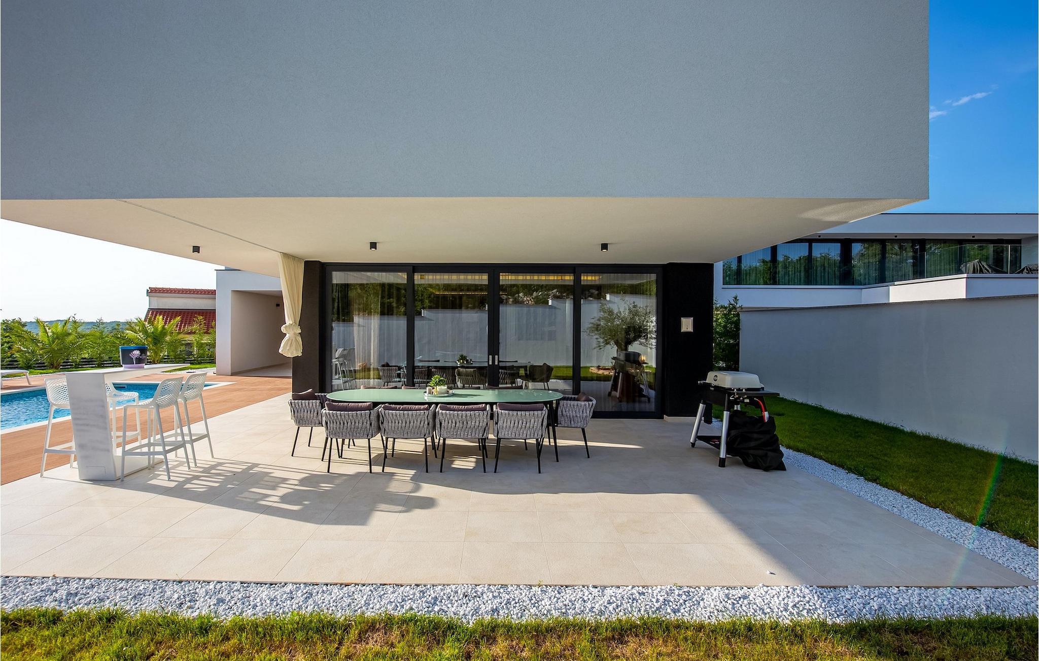 Möchten Sie Ihren Urlaub entspannt verbringen, neben einen privaten Pool während Sie Ihre Augen am unglaublichen Design, der Sie überall umgibt, ausruhen? Villa Eleven ist Ihre richtige Auswahl. Diese schöne Villa ist mit vielen modernen Elementen und interessanten Details eingerichtet. So fühlen Sie sich wie in einem Traumurlaub, nur ein paar Kilometer vom Strand entfernt. Beim Betreten der Villa, finden Sie im Erdgeschoss ein geräumiges Wohnzimmer mit blauen Details, die Sie zurück zum Meer bringen. Das Wohnzimmer ist mit der hochmodernen, komplett ausgestatteten Küche und dem Esszimmer verbunden im offenen Konzept. Im ersten Stock finden Sie 4 Schlafzimmer und 3 Badezimmer. Das 4. Badezimmer ist im Erdgeschoß. Die Schlafzimmer sind mit viel Liebe für Details eingerichtet, damit Sie sich erholt fühlen. Falls Sie sich entspannen möchten, können Sie den Poolbereich genießen mit vielen Sonnenliegen und Sonnenschirmen. Ideal für die Erfrischung von der Hitze oder nur zum Buch lesen am Pool. Essen Sie gerne im Offenen, ist diese Villa auch die richtige Wahl für Sie, denn Sie bietet auch einen Gasgrill an. So können Sie Ihre Lieblingsgerichte vorbereiten oder neue Istrische Spezialitäten ausprobieren. Sammeln Sie Ihre Familie und Freunde ein in den schönen Außenbereich und Ihr Urlaub kann mit einem Lächeln beginnen in der Villa Eleven!Die wunderschöne Villa Eleven befindet sich im kleinen Dorf nur etwa 7 km entfernt von Rovinj. Rovinj ist eine bezaubernde touristische Stadt im westlichen Teil der Istrischen Halbinsel. Diese romantische Stadt, die am Meer gelegen ist, dürfen Sie nicht verpassen. Mit engen Gassen, bunten Häusern im Mediterranem Stil und zahlreichen Museen, Bars und Restaurants hat die Stadt viel anzubieten. Falls Sie einen größeren Ausflug planen, empfehlen wir Ihnen auch Porec und Fazana zu besuchen. Diese sind 30 km von der Villa entfernt. Von Fazana können Sie auch die wunderbare Insel Brijuni besuchen, die auch einer der kroatischen Nationalparks ist. In Porec finden Sie auch viele Sehenswürdigkeiten von der bekannten Eufrasius-Basilike, bis zu Höhlen aber auch Weintouren bekannt in diesem Gebiet.