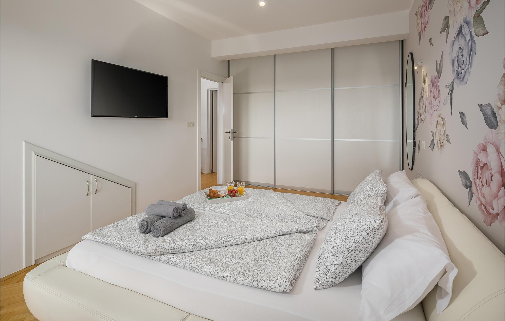 Diese schöne Unterkunft ist nur ca. 10 Minuten zu Fuß von Rovinj entfernt. Verbringen Sie die schönen Sommernächte im eigenen Hof und genießen Sie mit einem Glas Wein Ihr Abendessen vom Grill. Die Inneneinrichtung ist sehr geschmackvoll und komfortabel. Besuchen Sie den Altstadtkern von Rovinj, der vor allem in der Nacht eine romantische Atmosphäre besitzt. Entdecken Sie die engen Gassen und schlendern Sie bis zur Kirche der Hl. Eufemia, von hier bietet sich eine herrliche Aussicht. Verpassen Sie auch nicht den Sandstrand Zlatni rat und genießen Sie von ihm einen schönen Blick auf die Insel Crveni otok.