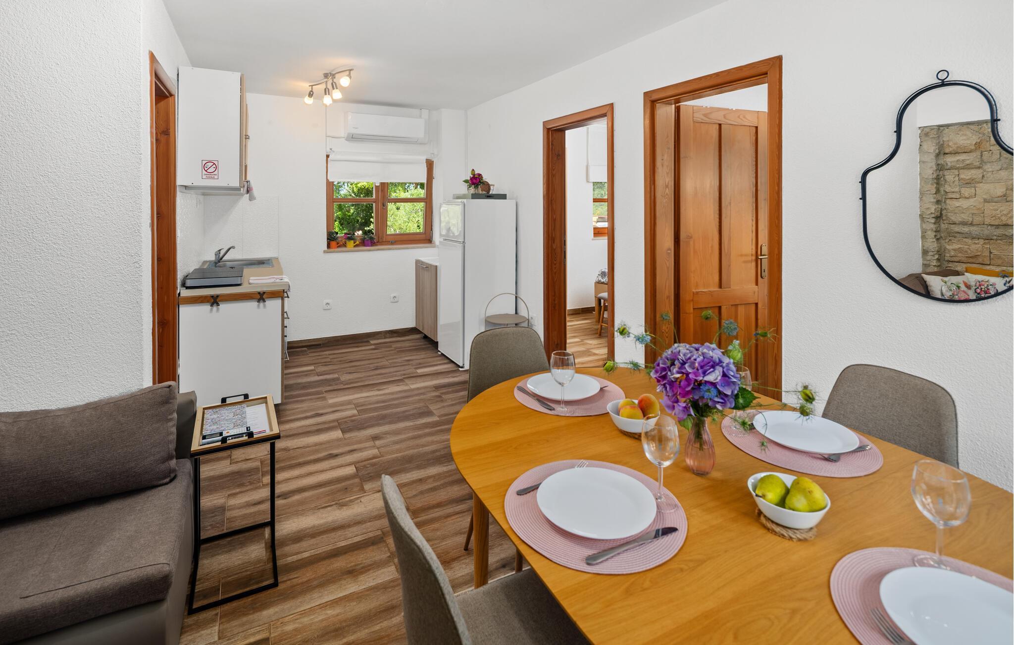 Dieses gemütlich eingerichtete Steinhaus begrüßt Sie als Teil einer gepflegten Anlage und lädt Sie während einer sonnigen Auszeit dazu ein, dem Zirpen der Grillen zu lauschen. Planen Sie bei einem entspannten Frühstück die Unternehmungen für den bevorstehenden Tag und lassen Sie sich abends auf dem einladenden Sofa nieder, um einen Film zu streamen oder gemeinsame Zeit bei einem Brettspiel zu verbringen.