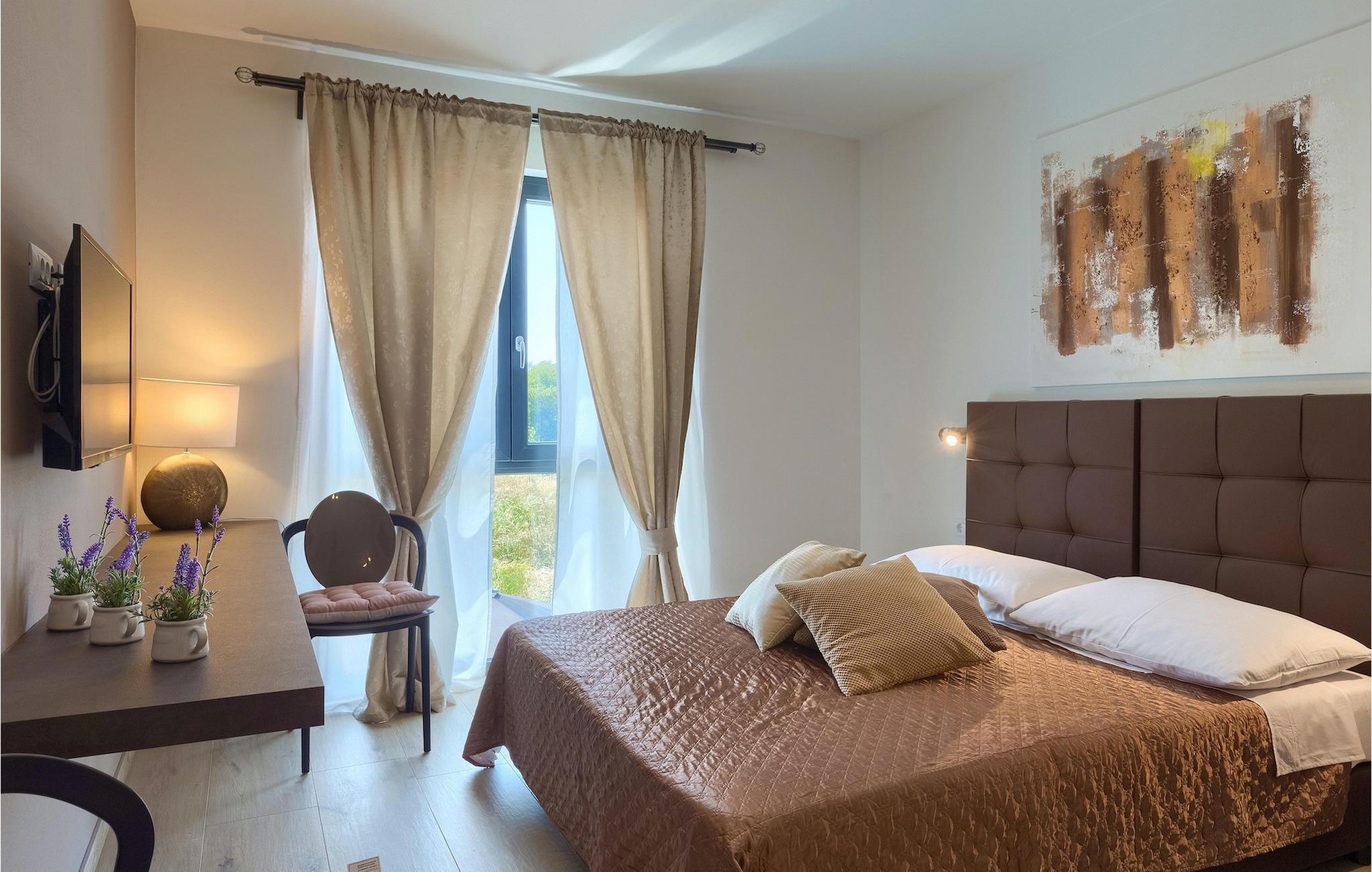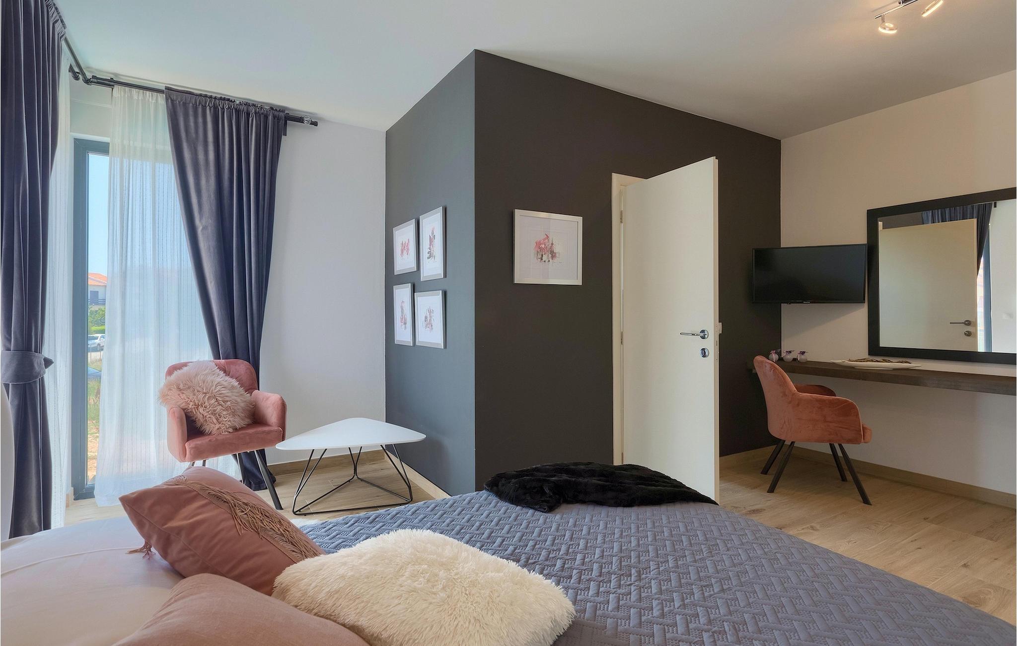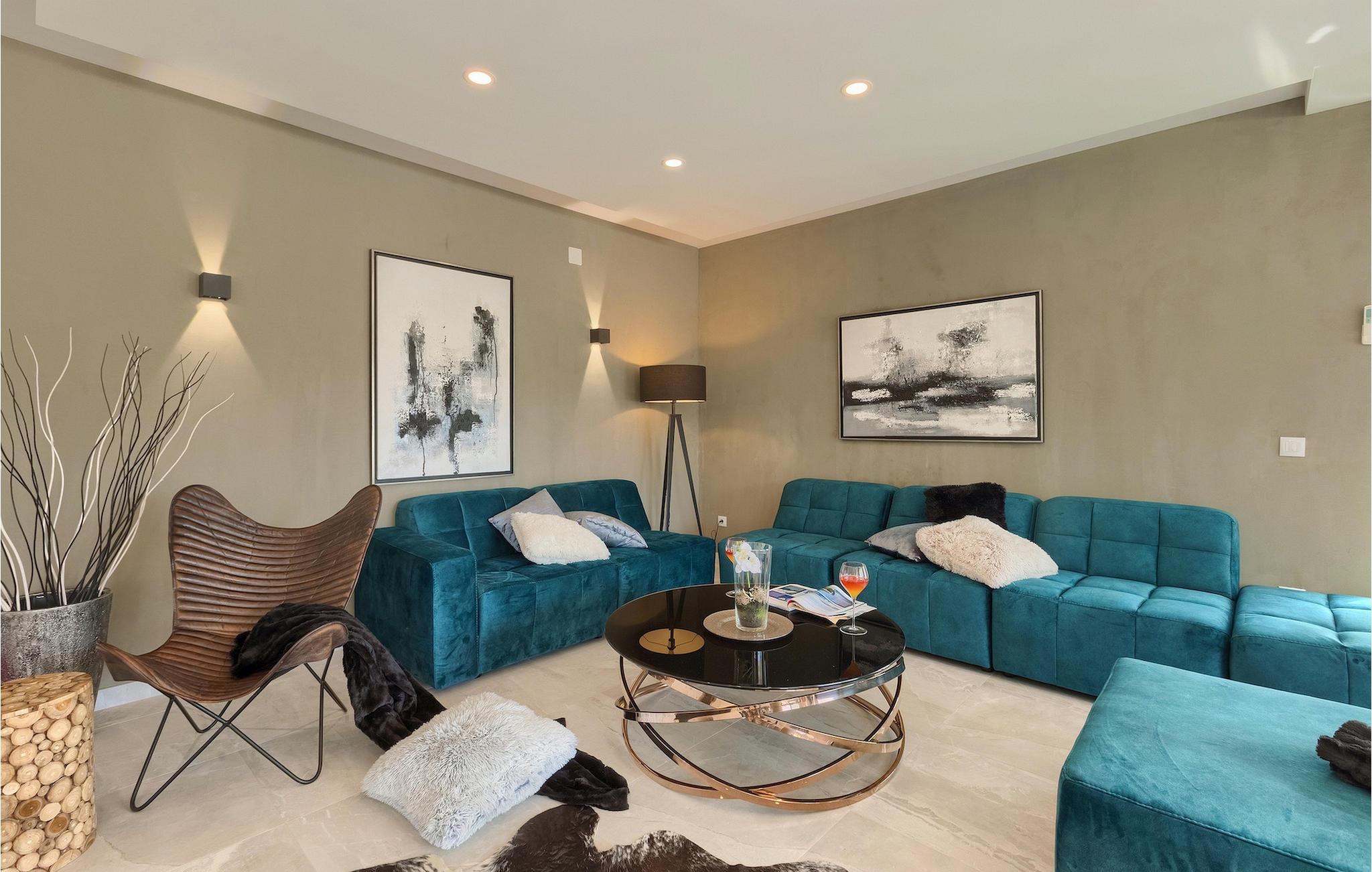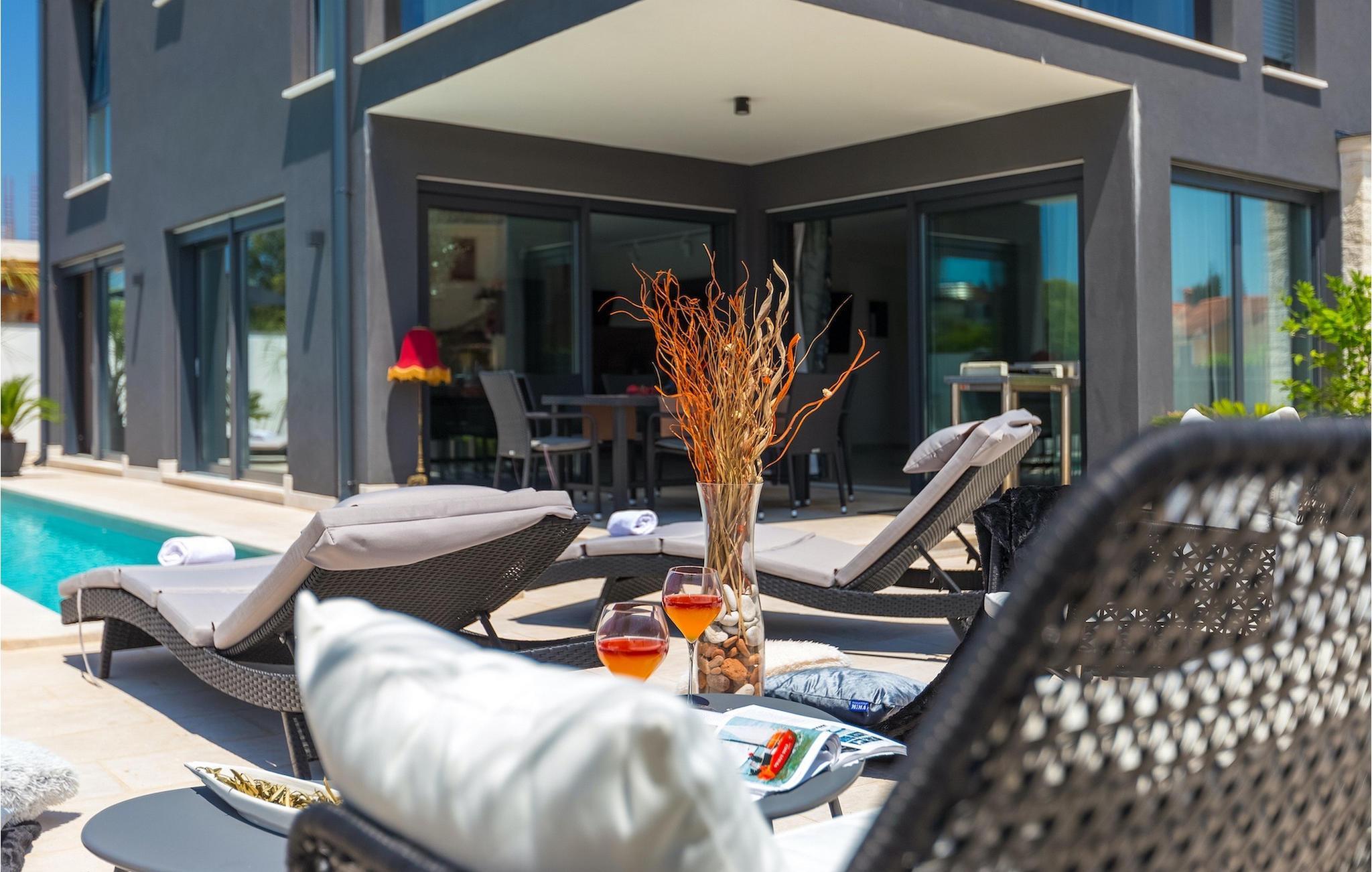 Träumen Sie von einem erholsamen Urlaub in einer Designer-Villa in der Nähe von einer touristischen Stadt und wunderschönen Stränden? Dann ist Villa Orion perfekt für Sie! Diese schöne, moderne Villa bietet nicht nur ein exklusives Interieur an, sondern auch reichliche zusätzliche Aktivitäten zum Erholen wie die finnische Sauna oder der Jacuzzi im Wellnessbereich im Erdgeschoss der Villa. Hier befindet sich auch das in blau gestyltes Wohnzimmer im offenen Konzept verbunden mit Speisezimmer und einer modernen, komplett ausgestatteten Küche. Während Sie gemeinsam Essen können Sie den einladenden Pool betrachten, der nur ein paar Schritte weiter ist. Natürlich können Sie aber auch draußen im Offenen essen und den Grill benutzen. Der Außenbereich bietet auch viel Gartenmöbel und Sonnenliegen an, zum Entspannen am privaten Pool der Erfrischung bietet. Im ersten Stock befinden sich die liebevoll eingerichtete Schlafzimmer mit eleganten Details wie zeitgenössischen Gemälden und wunderbaren Farbkombinationen. Dazu kommen noch private Badezimmer für jedes Schlafzimmer. Aus zwei Schlafzimmern kommen Sie zum Balkon, ideal für den ersten Kaffee. Villa Orion wird Sie mit Ihrem atemberaubenden Interieur und guten Erholungsmöglichkeiten verwöhnen, das alles während Sie in der Nähe vom Strand und dem Stadt Rovinj Ihren Urlaub genießen!