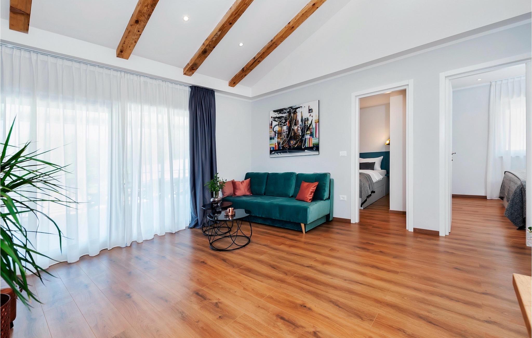 Im bezauberndern Städchen Rovinj an der Westküste Istriens liegt unsere Villa Jolanda Rovinj. Diese wunderschöne Erdgeschossvilla ist ideal für 4 Gäste, die einen traumhaften Urlaub ganz nah am Meer und in Stadtnähe verbringen möchten. Der erfrischende Pool ist das Herz des Anwesens und der Ort, an dem Sie Spass haben und entspannen werden. Genießen Sie die Sonne Kroatiens auf einer der Sonnenliegen am Pool, springen Sie ins kühle Wasser, um sich zu erfrischen und erlangen Sie die Sommerbräune, die Sie als Andenken mit nach Hause nehmen werden. Die überdachte Terrasse mit Esstisch wird Ihr Lieblingsplatz fürs Frühstück oder für gemeinsame Grillabende. Dafür steht Ihnen ein Gasgrill zur Verfügung. Im Garten gibt es als Zeitvertreib für die Kleinen ein Trampolin, Mini-Fußballtore und Badminton. Treten Sie von der Terrasse aus ins Innere der Villa, so stehen Sie im offenen, geschmackvoll eingerichteten Wohnbereich mit voll ausgestatteter Küche und Essbereich. Viele kleine Details werden Ihren Blick fangen. Die zwei komfortablen Schlafzimmer mit bequemen Doppelbetten versprechen erholsame Nächte und die 2 modernen Badezimmer werden Ihre ganz persönliche kleine Wellnessoase sein.