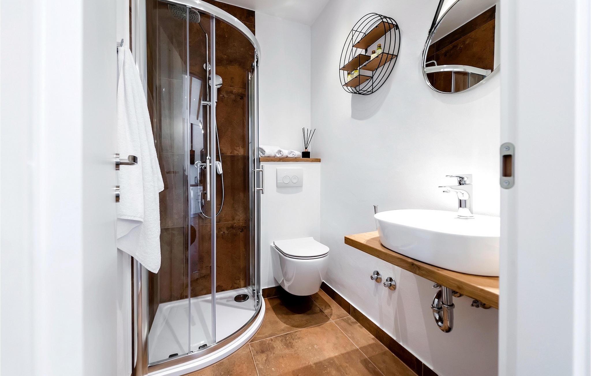 Badezimmer (nr. 2) - WC. Warmes und kaltes Wasser. Dusche