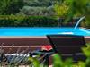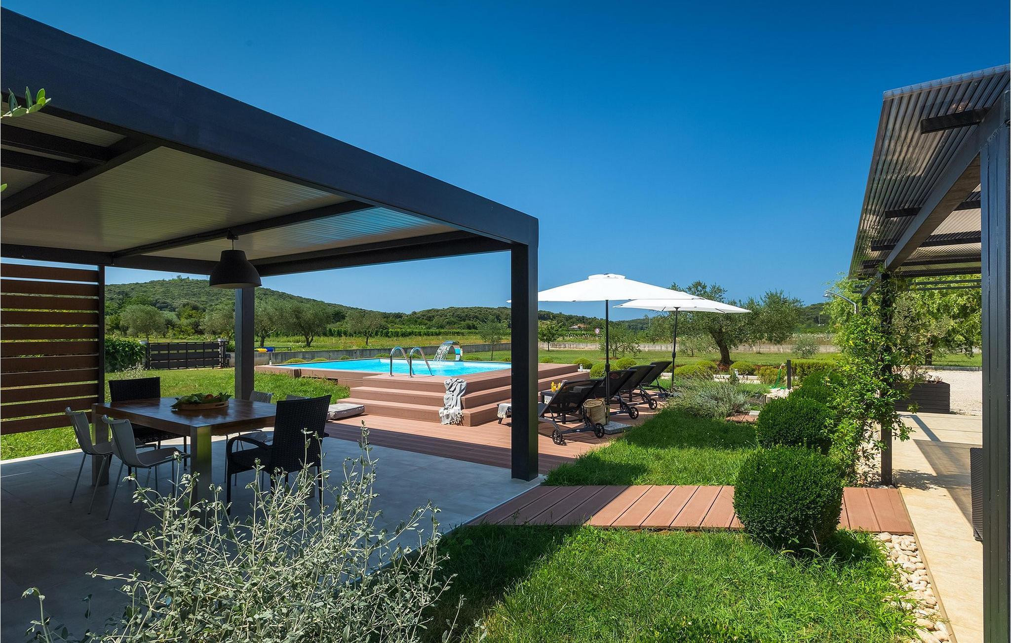 Diese wunderschöne Villa befindet sich nah zum Meer in einem ruhigen ländlichem Vorort der romantischen Stadt Rovinj. Villa Sessa, auf einem mehr als 2000 m2 großen Grundstück gelegen, bietet die perfekte Unterkunft für bis zu 4 Personen. Es besteht aus zwei Schlafzimmern mit jeweils einem Doppelbett und TV. Die Villa ist liebevoll und stilvoll eingerichtet und bietet 6 Sitzplätze im Essbereich sowie eine Stereoanlage und einen SAT-TV im Wohnbereich. Die völlig ausgestattete Küche bietet alles, was Sie zum Kochen in Ihrem Urlaub benötigen. Es gibt auch einen Holzkohlegrill draußen auf der überdachten Terrasse und einen Esstisch. Der schöne private Pool und die Außendusche sorgen für Erfrischung an warmen Sommertagen. Die Villa ist klimatisiert und bietet überdachte Privatparkplätze.Die atemberaubende Villa Sessa ist nur 1 km vom Meer in Rovinj entfernt. Die Villa liegt in einer ruhigen Umgebung, inmitten von wunderschöner grüner Natur und Ackerland. Der ideale Ort, dem stressigen Großstadtleben zu entfliehen! Einst ein kleines Fischerdorf, heute ein beliebtes Urlaubsziel mit reichem kulturellen Erbe! In den charmanten Gassen dieser mittelalterlichen Stadt verbergen sich zahlreiche Galerien, Restaurants, Bars und Cafés. Die Stadt liegt nur 40 km von Pula entfernt und ist für sein günstiges und wohltuendes mildes Klima bekannt. Die gesamte Küste mit ihren 22 Inseln steht unter Naturschutz. Die Stadt wird von der barocken St. Euphemia Kirche dominiert, von deren Turm man einen wunderschönen Panoramablick auf die ganze Stadt genießen kann. Rovinj bietet zahlreiche Möglichkeiten für einen unvergesslichen Urlaub: Wander-und Radwege, Segeln, Klettern, Tauchen, Paragliding, Tennis, archäologische Denkmäler, hervorragende kulinarische Spezialitäten und schöne Strände. Geheimnisvoll und romantisch, diese Altstadt ist einen Besuch wert!