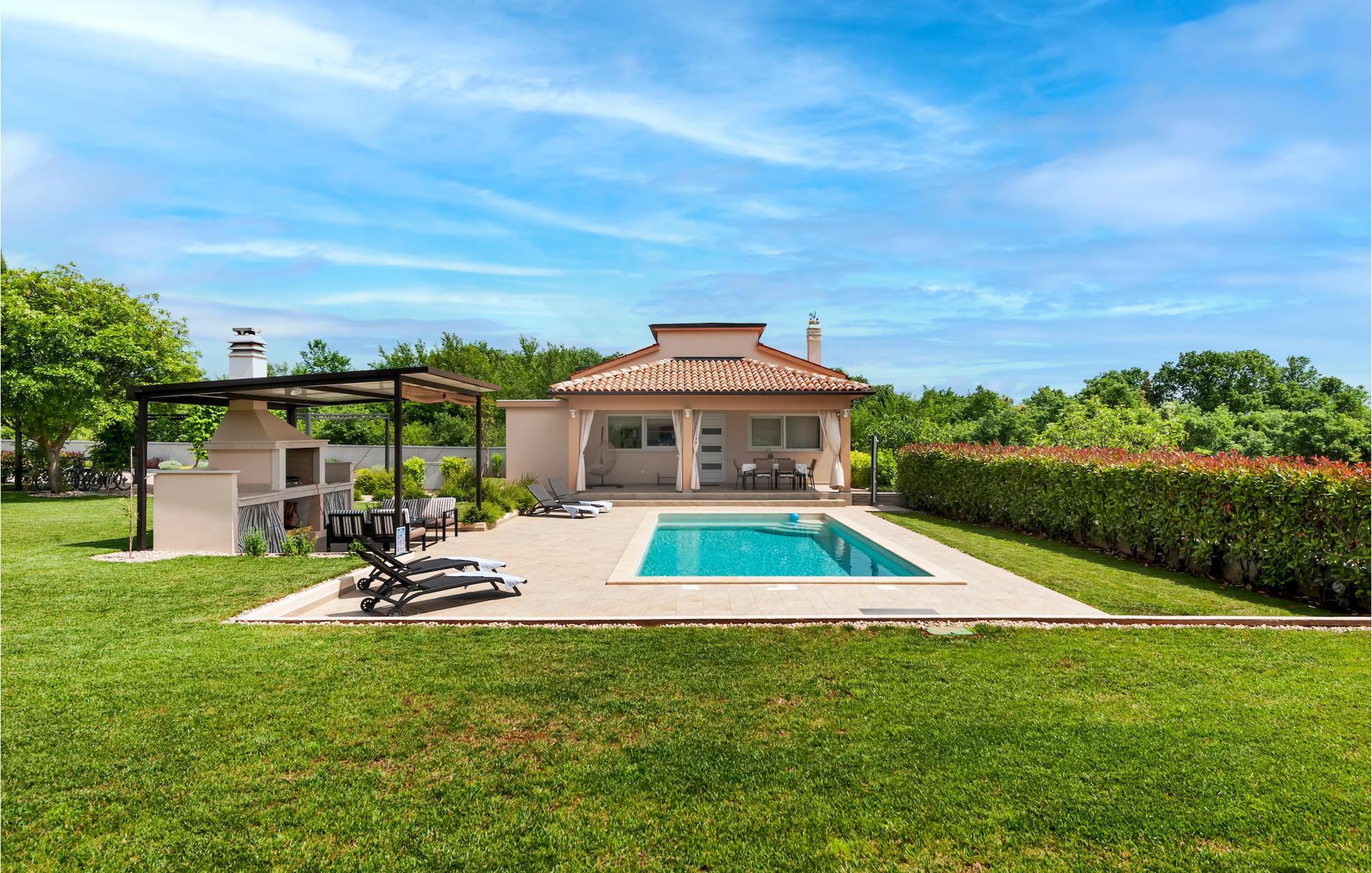 Wenn Sie auf der Suche nach einer gemütlichen Unterkunft in Istriens berühmten Rovinj sind, sehen Sie sich die Villa Mila Rovinj an, die für bis zu 4 Personen geeignet ist. Auf dem Grundstück angekommen, werden Sie als allererstes die Olivenplantage entdecken - ein echtes Mittelmeerambiente. Beim Betreten des schönen Hauses können Sie die warmen Farbtöne sowie die Zimmerdecke aus Holz erkennen, was Ihnen gleich ein angenehmes Gefühl geben wird. Vor allem das Geländer der Treppe, welche in die Galerie führt, wird Ihrem Urlaub wortwörtlich eine einzigartige “Note” geben. In der komplett ausgestatteten Küche können Sie auf einem der Barstühle des Essbereichs direkt vor dem Fenster Platz nehmen. Von dort aus bietet sich Ihnen die Aussicht auf den Garten mit dem hauseigenen, privaten Pool. Aus dem offen gehaltenen Küchen- sowie Wohnbereich gelangen Sie in das Schlafzimmer des Erdgeschosses und das Badezimmer. Im Bad finden Sie eine ebenerdige Regendusche für maximale Entspannung. Das Galeriezimmer im oberen Stockwerk, von welchem aus man hinunter in den Wohnbereich schaut, ist als offenes Schlafzimmer mit eigenem Fernseher gedacht. Falls Sie zusätzlich noch gerne Unterhaltung wie Tischtennis, Tischfußball, Darts oder eine Spielkonsole hätten, machen Sie sich auf den Weg ins Untergeschoss - dort befindet sich das Unterhaltungszimmer der Villa. Draußen im Garten können Sie es sich auf der überdachten Terrasse gemütlich machen. Auf dieser finden Sie auch einen einsatzbereiten Grill - eine Inspiration um köstliche Mahlzeiten herzurichten. Und nicht zu vergessen, draußen warten außerdem die Sonnenliegen und der private Pool auf Sie. Falls Sie die Umgebung erkunden wollen, stehen Ihnen hierfür zusätzlich Fahrräder zur Verfügung. Machen Sie Ihren Urlaub zu einer perfekten, gemütlichen Erfahrung und buchen Sie die Villa Mila Rovinj jetztVilla Mila Rovinj befindet sich in einem ehemaligen Fischerdorf und einer von Kroatiens bekanntesten Destinationen, der charmanten Stadt Rovinj, die auf der Westküste von Istriens Halbinsel liegt. Verschiedene Strände sowie die Altstadt sind nur einige Fahrminuten von der Unterkunft entfernt. Wenn Sie die Promenade entlang spazieren und sich der Altstadt nähern, wird Ihnen ein atemberaubende Aussicht geboten. Beim Erkunden der zahlreichen Gassen der Altstadt genießen Sie das farbenreiche, malerische Ambiente. Tauchen Sie ein in das romantische Flair dieser Stadt! Nehmen Sie Platz in einem der gemütlichen Cafes oder Restaurant und probieren Sie lokale Delikatessen. Begeben Sie sich auf den Weg zu einer der Hauptsehenswürdigkeiten, der Kirche St. Euphemia. Von dort aus können Sie die wundervolle Panoramaaussicht auf das Meer und die umliegenden Inseln genießen. Lassen Sie sich außerdem die Möglichkeit eines Bootsausflugs nicht entgehen - besuchen Sie die Inseln und erfreuen Sie sich an dem unglaublichen Ausblick auf Rovinj vom Meer aus. Nicht weit von der Villa entfernt, können Sie ebenso andere Sehenswürdigkeiten in Istrien besichtigen, wie zum Beispiel den Limski Kanal oder den Nationalpark Brijuni. Rovinj bietet Ihnen ein breites Angebot an Möglichkeiten, welche Ihren Urlaub unvergesslich machen werden!