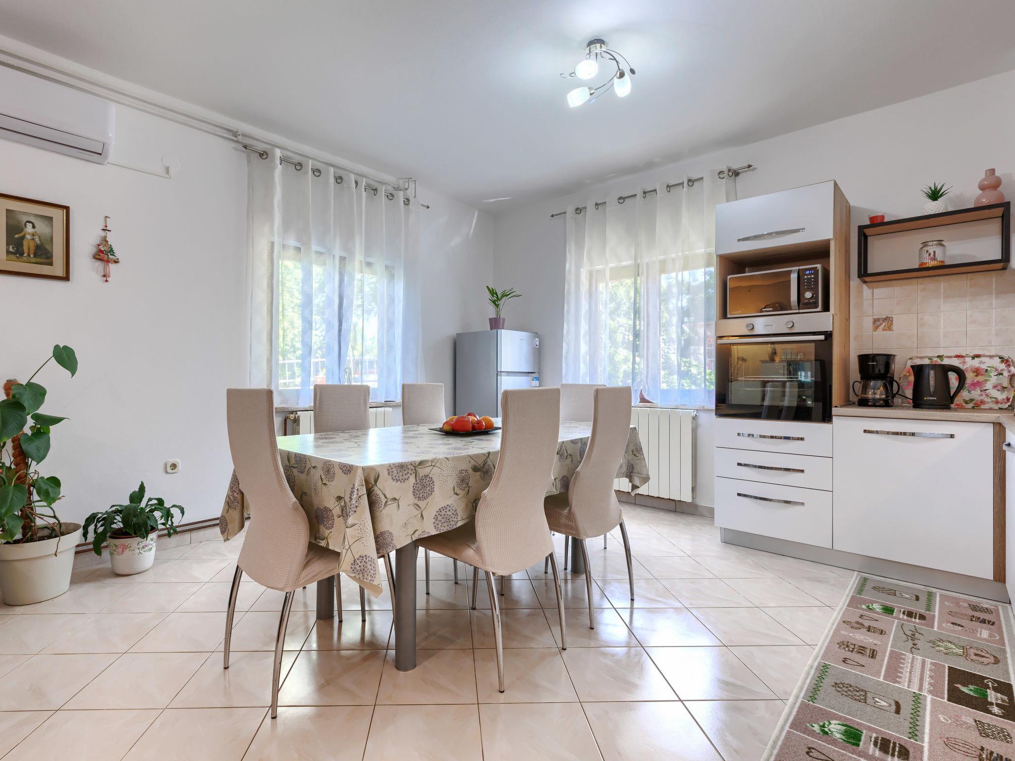 "Cekic", 2-Zimmer-Wohnung 60 m2, im Erdgeschoss. Wohn-/Esszimmer mit 1 Doppeldiwanbett (150 cm, Länge 200 cm), Sat-TV und Klimaanlage. Ausgang zur Terrasse. 1 Zimmer mit 1 franz. Bett (180 cm, Länge 200 cm). Offene Küche (1 Kochplatte, Geschirrspüler, 3 Flammen, Toaster, Wasserkocher, Mikrowelle, elektrische Kaffeemaschine). Dusche/WC. Keine Heizmöglichkeit. Terrasse 6 m2. Terrassenmöbel. Zur Verfügung: Waschmaschine. Internet (Wireless LAN, gratis). Bitte beachten: Nichtraucher-Haus.