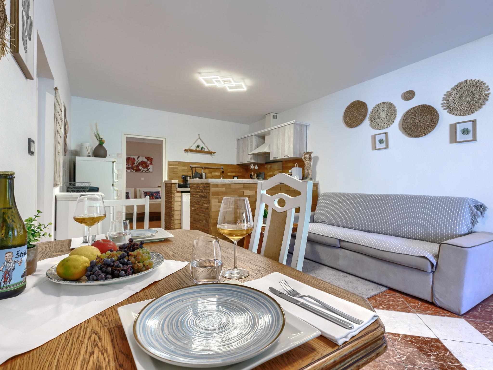 "Viliam", 2-Zimmer-Wohnung 50 m2, unteres Geschoss. Wohn-/Schlafzimmer mit 1 Diwanbett, Esstisch, Sat-TV, E-Heizofen und Klimaanlage. Ausgang zur Terrasse. 1 Doppelzimmer. Ausgang zur Terrasse. Offene Küche (1 Kochplatte, Backofen, Geschirrspüler, 3 Flammen, Toaster, Wasserkocher, Mikrowelle, Tiefkühler, elektrische Kaffeemaschine). Dusche/WC. Terrasse 30 m2 teilweise überdacht. Terrassenmöbel, Gartengrill (mobil). Zur Verfügung: Waschmaschine. Internet (Wireless LAN, gratis). Bitte beachten: Nichtraucher-Unterkunft. Maximal 1 Haustier/Hund erlaubt.