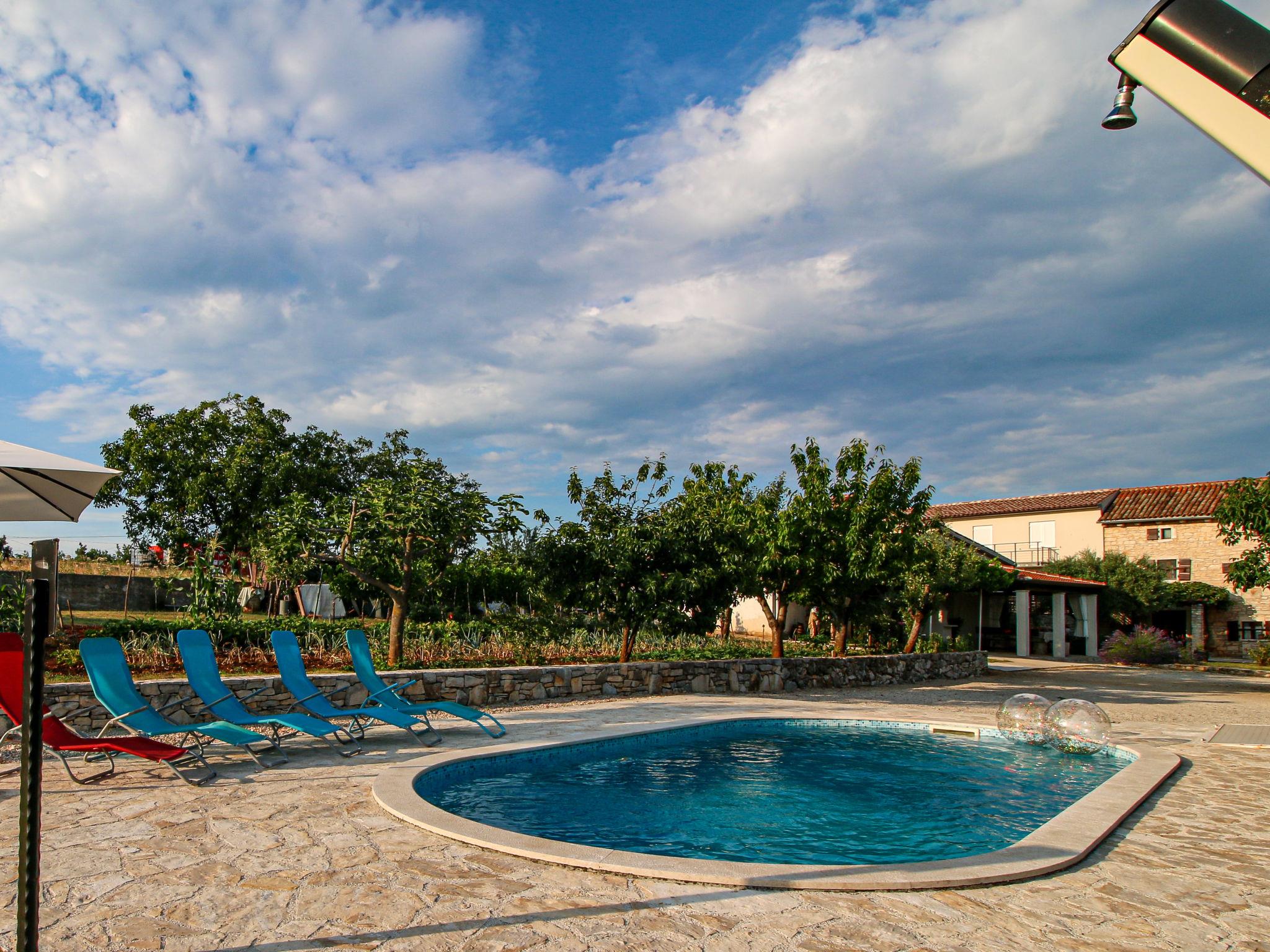 Doppelhaus "Jadranka", auf 3 Stockwerken. Im Weiler Folici, 5 km vom Zentrum von Žminj, 23 km vom Zentrum von Rovinj, 21 km vom Meer. Zur Mitbenutzung: Grundstück 1'000 m2 mit Rasen und Bäumen. Zur Alleinbenutzung: Schwimmbad (26 m2, 120 - 140 cm tief, saisonale Verfügbarkeit: 15.Mai. - 30.Sep.) mit Innentreppe. Terrasse, Gartenmöbel, Grill. Im Hause: Internetzugang. Parkplatz (für 3 Autos) auf dem Grundstück. Einkaufsgeschäft 3 km, Bushaltestelle 1.9 km, Kieselstrand 21 km. Jacht-Hafen 23 km. Bitte beachten: Flugplatz 35 km vom Haus.