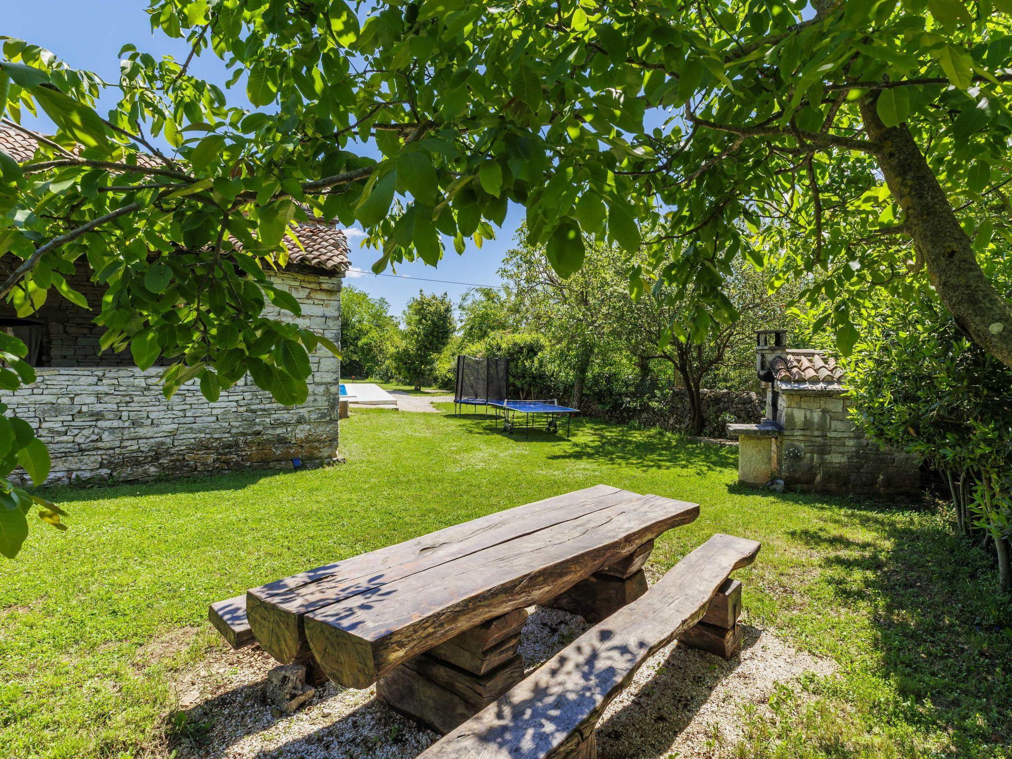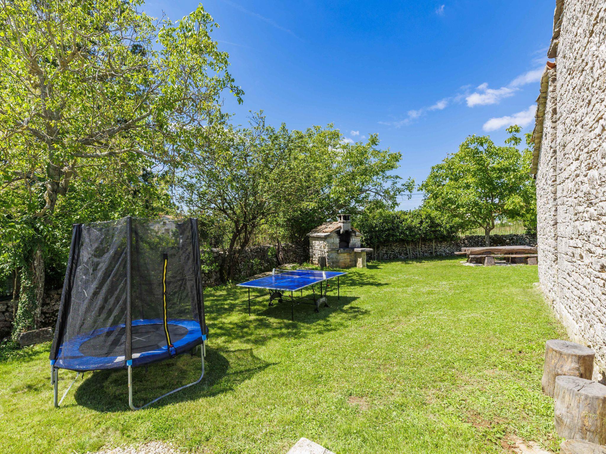 Einfamilienhaus "Marija", auf 3 Stockwerken. Im Weiler Domijanici, 5 km vom Zentrum von Žminj, 25 km vom Zentrum von Rovinj, 25 km vom Meer. Zur Alleinbenutzung: Grundstück 5'000 m2, Bäumen, Wiese, Schwimmbad eckig (8 x 4 m, 140 cm tief, saisonale Verfügbarkeit: 30.Apr. - 01.Okt.) mit Innentreppe. Aussendusche, Tischtennis, Gartenmöbel, Grill (Schaukel). Im Hause: Internetzugang, Waschmaschine. Parkplatz (für 5 Autos) auf dem Grundstück. Einkaufsgeschäft 5 km, Restaurant 5 km, Bushaltestelle 3.1 km, Felsstrand 25 km.