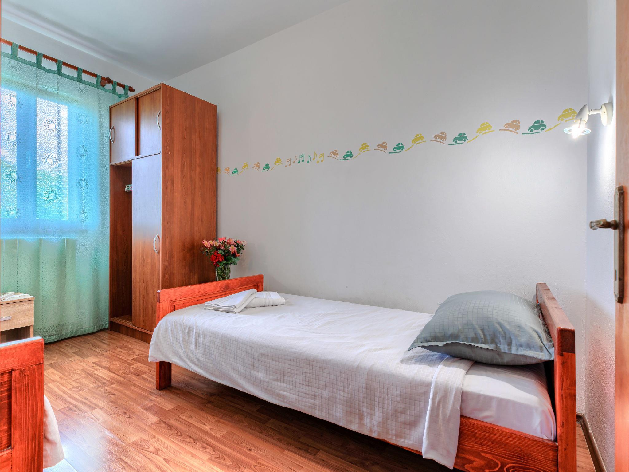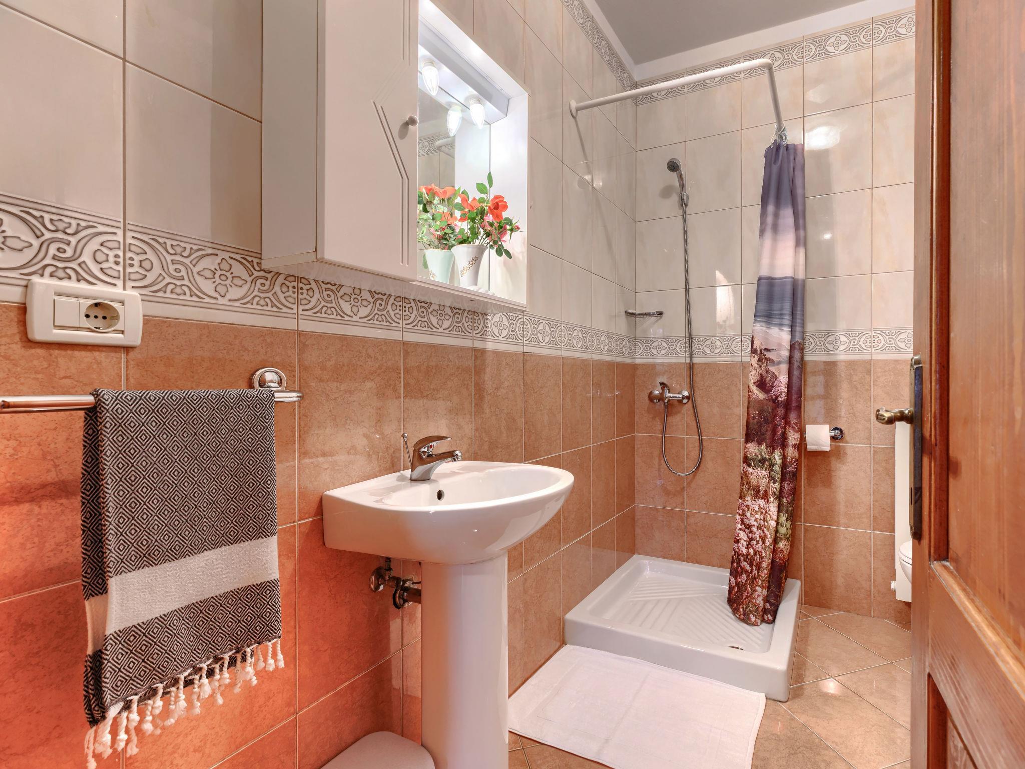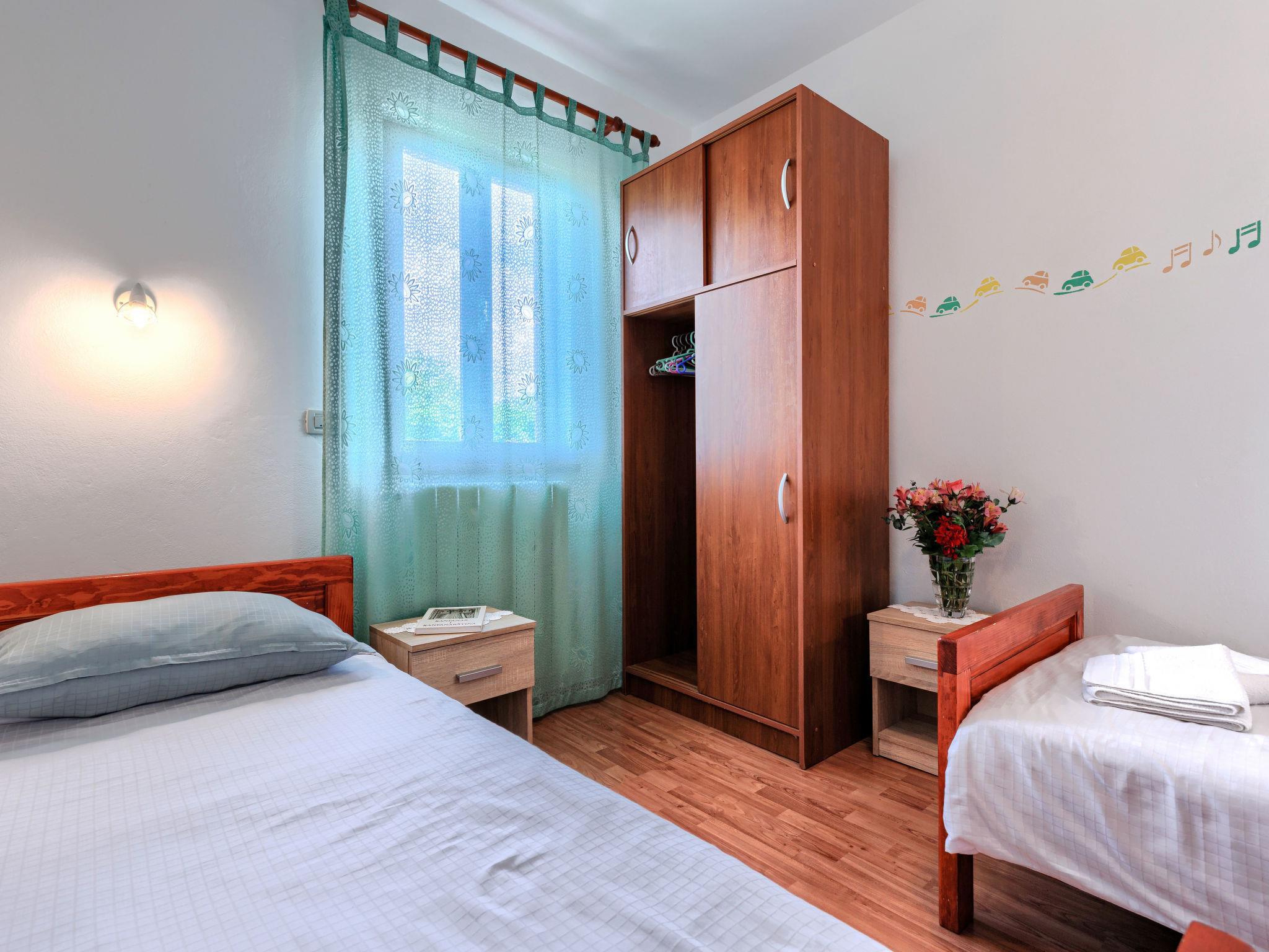"Ivan & Tina", 3-Zimmer-Wohnung 53 m2, im Erdgeschoss. Wohn-/Esszimmer mit 1 Diwanbett und Sat-TV. Ausgang zur Terrasse. Eingang mit Klimaanlage. 1 Zimmer mit 2 Betten. 1 Zimmer mit 1 Doppelbett. Offene Küche (4 Kochplatten, Backofen, Toaster, Wasserkocher, elektrische Kaffeemaschine). Dusche/Bidet/WC. Warmluftheizung. Terrasse 35 m2. Terrassenmöbel. Zur Verfügung: Waschmaschine. Internet (Wireless LAN, gratis). Bitte beachten: Nichtraucher-Haus. Eigener Eingang.