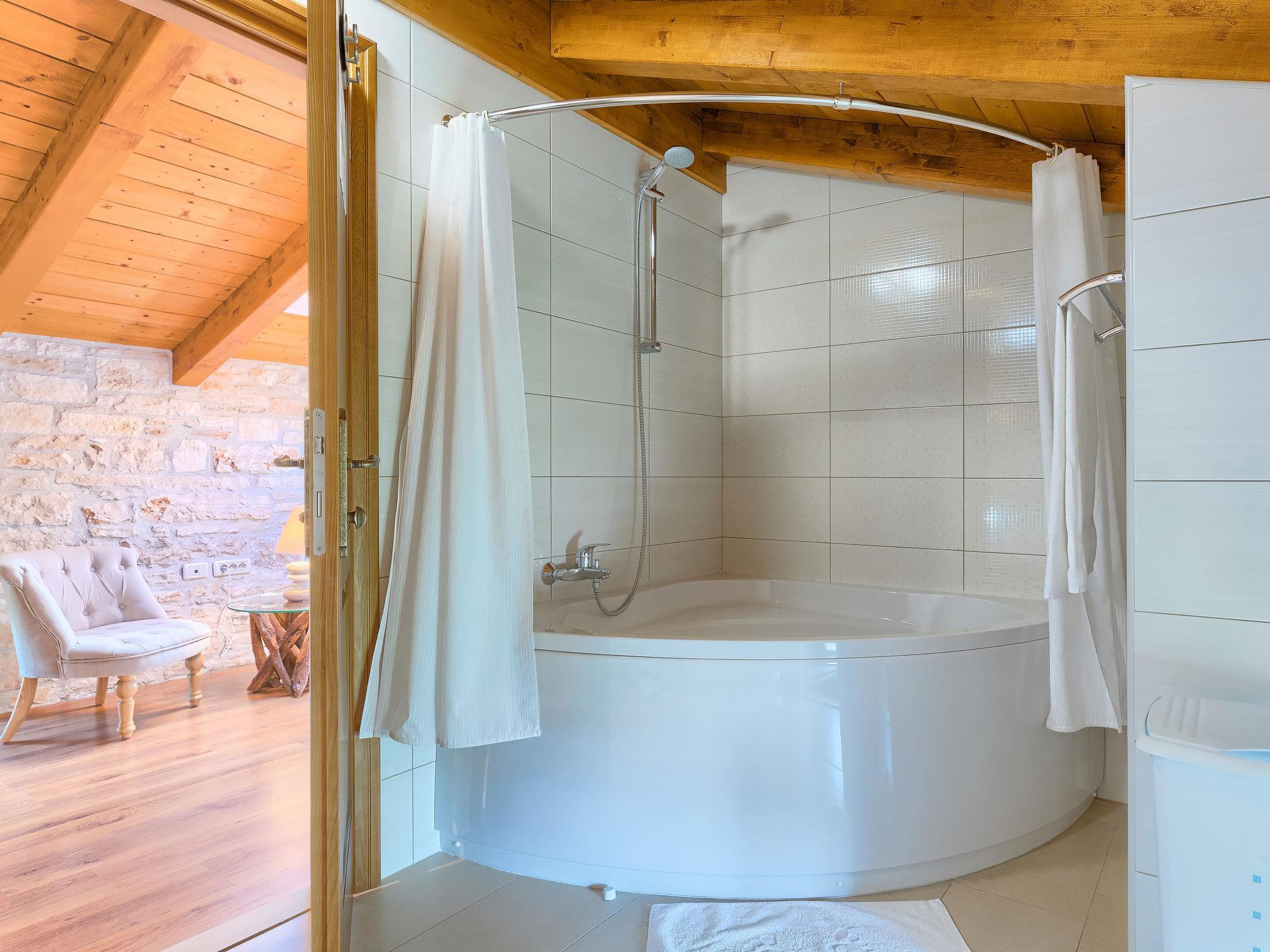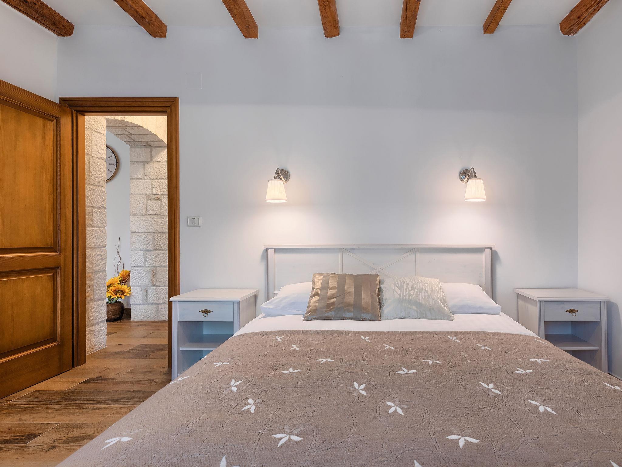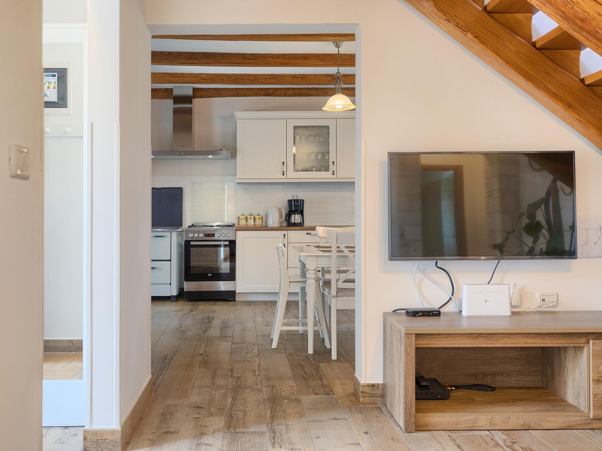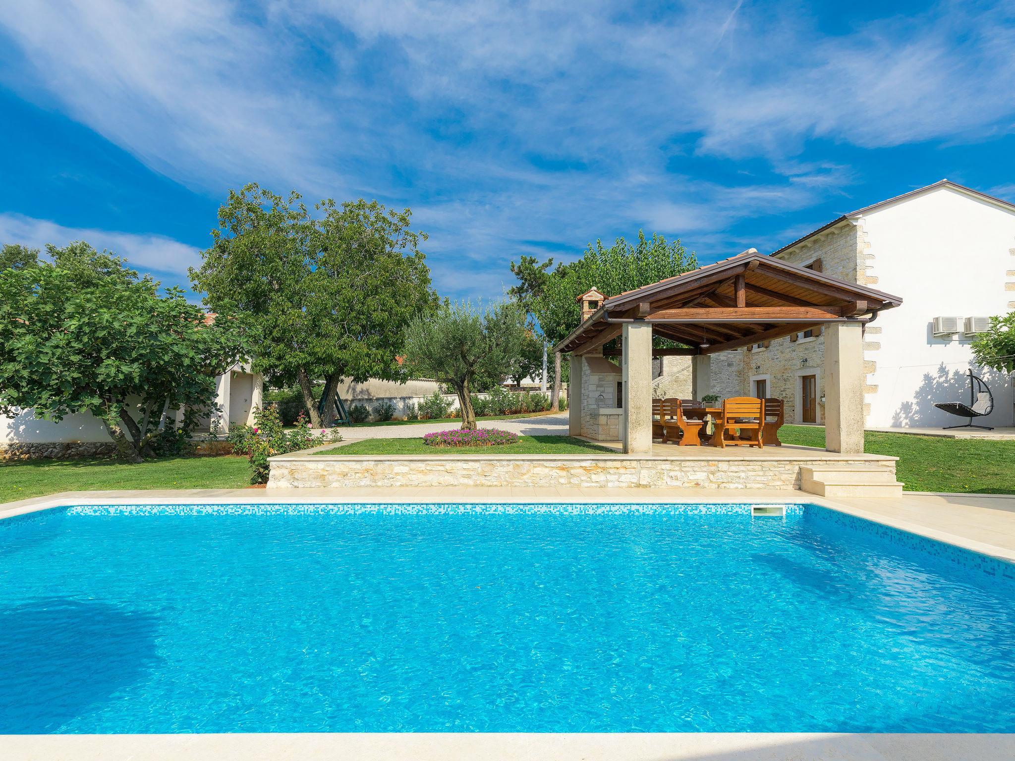 Doppelhaus "The Mulberry Stonehouse", auf 3 Stockwerken. Im Weiler Tomišici, 3.5 km vom Zentrum von Žminj, 21 km vom Zentrum von Rovinj, 21 km vom Meer. Zur Alleinbenutzung: Grundstück 1'000 m2 mit Rasen und Bäumen, Schwimmbad eckig (10 x 5 m, 130 cm tief, saisonale Verfügbarkeit: 14.Mai. - 24.Sep.) mit Innentreppe. Aussendusche, Terrasse, Gartenmöbel, Grill (Schaukel). Im Hause: Internetzugang, Waschmaschine. Parkplatz (für 2 Autos) auf dem Grundstück. Einkaufsgeschäft 3.5 km, Bushaltestelle 1.4 km, Felsstrand 21 km. Der Besitzer akzeptiert keine Jugendgruppen. Bitte beachten: Flugplatz 35 km vom Haus.