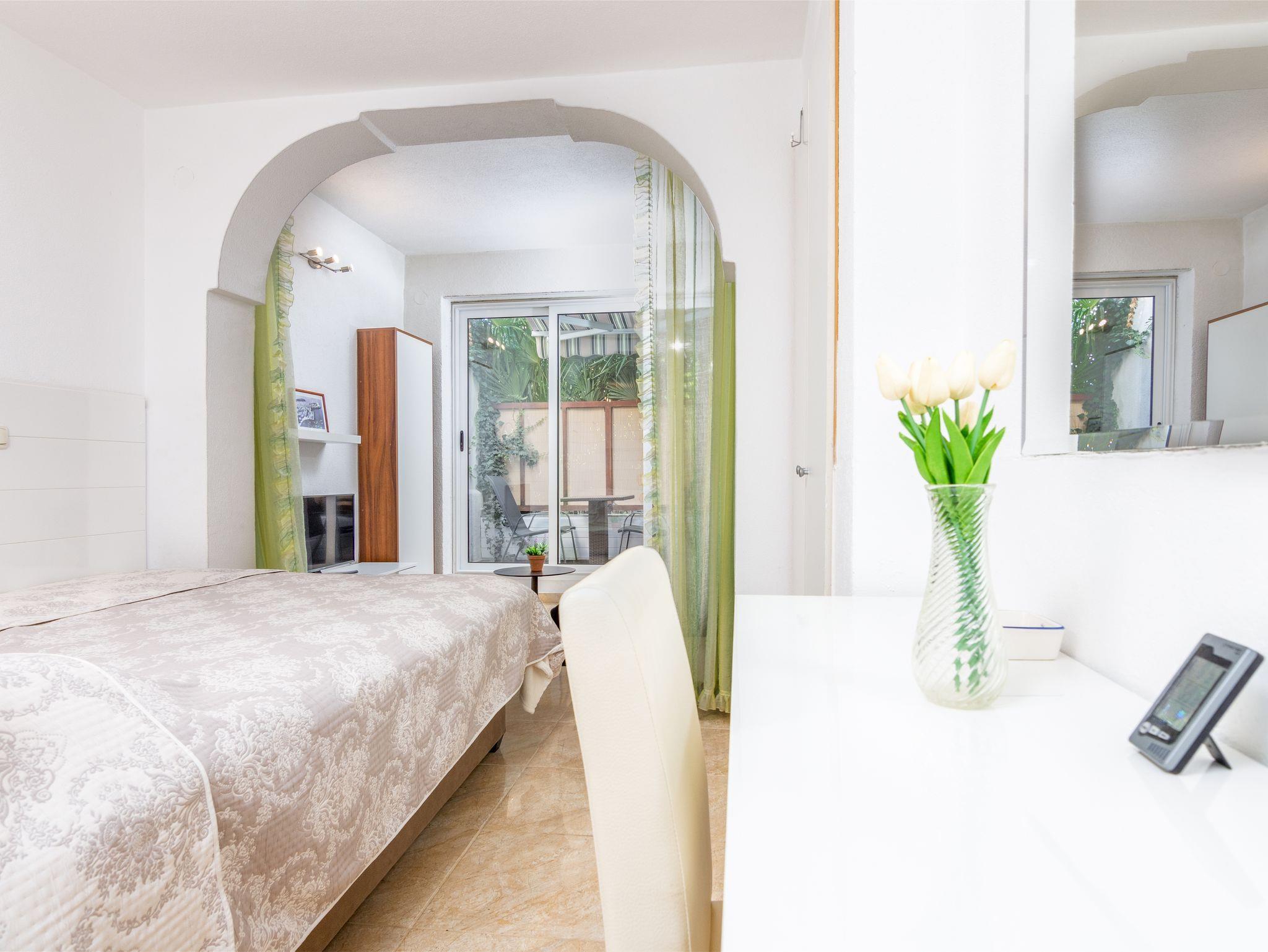 Studio bietet Platz für 2 Gäste. Die Betten sind in Schlafzimmern, die es 1 gibt, innerhalb einer Gesamtfläche von 24m2, angeordnet. Die Gäste haben eine eigene Terrasse zur Verfügung, auf der sie in warmen Sommernächten genießen können. IM PREIS INBEGRIFFEN: Kurtaxe, Endreinigung, Klimatisierung, Internet, Wäschewaschen, Bügeleisen, Bügelbrett, Föhn. VERBINDLICHE ZUSÄTZLICHE KOSTEN: Aufzahlung für Kurzaufenthalte (prozentualer Zuschlag pro Nächtigungsanzahl: 30% - 1, 20% - 2, 10% - 3). Die Verfügbarkeit zusätzlicher Dienstleistungen in Ihrem reservierten Termin und die Preise derselben (falls nicht aufgeführt) müssen im Voraus überprüft werden. Zusätzliche Dienstleistungen die in der Zahlungsaufforderung nicht aufgeführt sind werden direkt beim Vermieter bezahlt, angenommen der Gast nutzt auch diese. Ermäßigung auf den Grundpreis: Gratistag 14=13 (bei einem Aufenthalt von 14 Tagen oder mehr erhalten Sie einen Gratistag für den Aufenthalt bis 31.12.26).