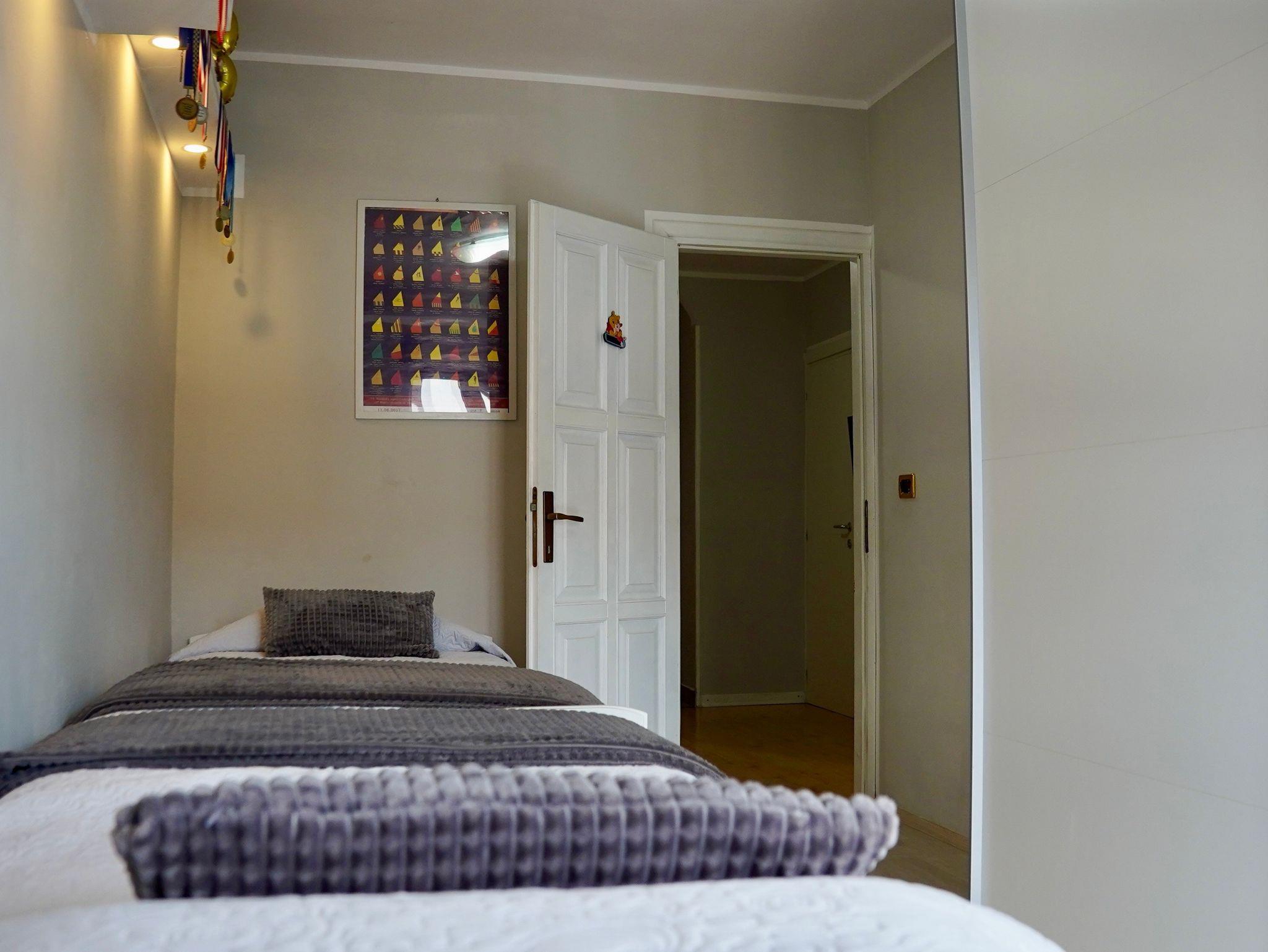 Ferienwohnung bietet Platz für 6 Gäste. Die Betten sind in Schlafzimmern, die es 2 gibt, und in Wohnzimmer, innerhalb einer Gesamtfläche von 62m2, angeordnet. Die Gäste haben eine eigene Terrasse zur Verfügung, auf der sie in warmen Sommernächten genießen können. Es ist erlaubt, Speisen auf dem Gemeinschafts-Grill vorzubereiten. In der Unterkunftseinheit besteht die Möglichkeit des Mitbringens von Haustieren gegen Aufpreis. IM PREIS INBEGRIFFEN: Kurtaxe, Endreinigung, Klimatisierung, Internet, Bügeleisen, Bügelbrett, Föhn. VERBINDLICHE ZUSÄTZLICHE KOSTEN: Aufzahlung für Kurzaufenthalte (prozentualer Zuschlag pro Nächtigungsanzahl: 30% - 1, 20% - 2, 10% - 3). UNVERBINDLICHE ZUSÄTZLICHE KOSTEN: Wäschewaschen (5,00 € Waschen), Boot (350,00 € pro Nacht), Haustiere (15,00 € pro Nacht), Fahrrad (12,00 € täglich (pro Stück)). Die Verfügbarkeit zusätzlicher Dienstleistungen in Ihrem reservierten Termin und die Preise derselben (falls nicht aufgeführt) müssen im Voraus überprüft werden. Zusätzliche Dienstleistungen die in der Zahlungsaufforderung nicht aufgeführt sind werden direkt beim Vermieter bezahlt, angenommen der Gast nutzt auch diese.