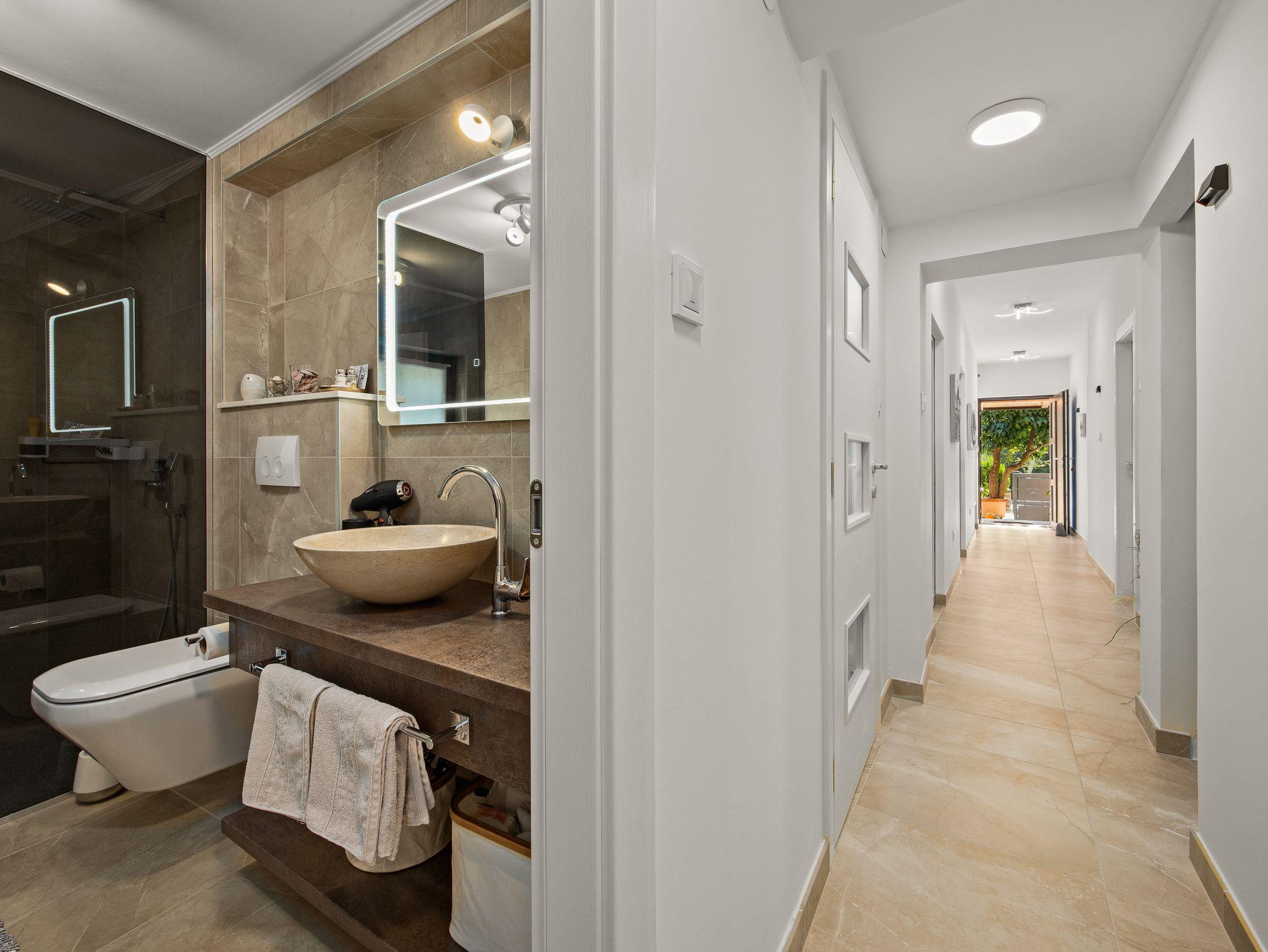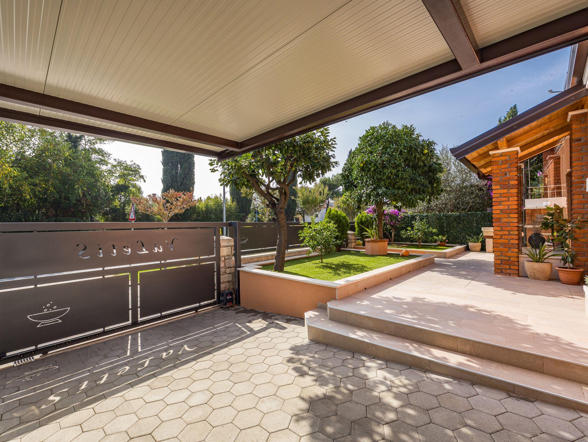 Umgebung des Objekts (Eingerichtet), Hof (300m2, Kinderbereich, Sitzbereich), Parkplatz (Anzahl der Parkplätze: 3, Entfernung vom Objekt: im Hof), Pool: privat, Dimensionen: 6m x 3.5m x 1.2m, Wassertyp: Salzwasser, WiFi Internet, Föhn, Bügeleisen, Bügelbrett, Sonnenschirm, Liegestühle, Kinderbett