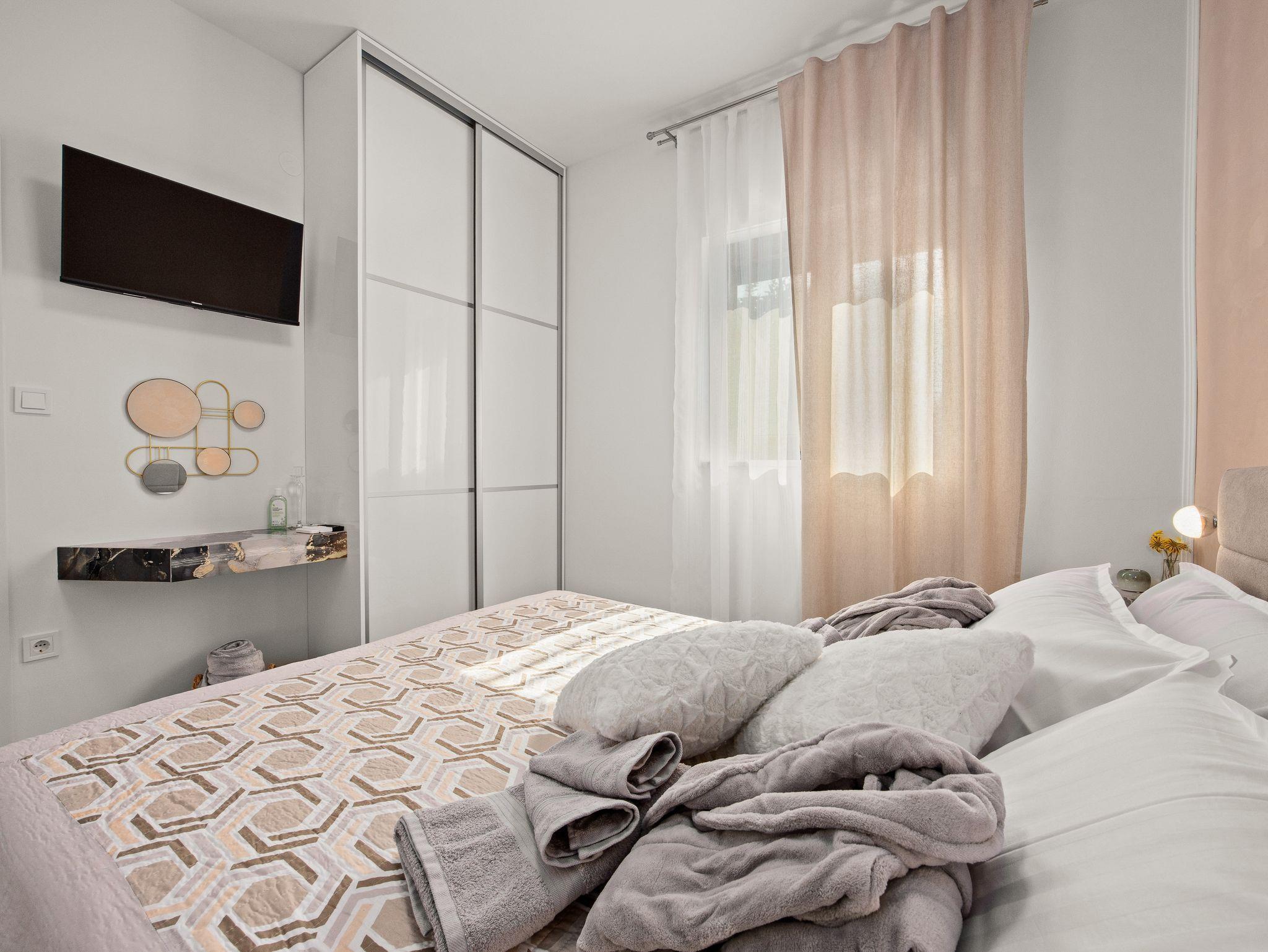 Haus bietet Platz für 5 Gäste. Die Betten sind in Schlafzimmern, die es 2 gibt, und in Wohnzimmer, innerhalb einer Gesamtfläche von 138m2, angeordnet. Die Gäste haben eine eigene Terrasse zur Verfügung, auf der sie in warmen Sommernächten genießen können. Für vollen Genuss und Entspannung gibt es einen privaten Grill für Gäste dieser Unterkunft. Während ihres Aufenthalts können sich Gäste im privaten Schwimmbad entspannen. In der Unterkunftseinheit besteht die Möglichkeit des Mitbringens von Haustieren gegen Aufpreis. IM PREIS INBEGRIFFEN: Kurtaxe, Endreinigung, Klimatisierung, Zentralheizung, Pool, Parkplatz, Internet, Kinderbett, Zusatzbett, Bügeleisen, Bügelbrett, Föhn, Sonnenschirm, Liegestühle. UNVERBINDLICHE ZUSÄTZLICHE KOSTEN: Haustiere (15,00 € pro Nacht). Die Verfügbarkeit zusätzlicher Dienstleistungen in Ihrem reservierten Termin und die Preise derselben (falls nicht aufgeführt) müssen im Voraus überprüft werden. Zusätzliche Dienstleistungen die in der Zahlungsaufforderung nicht aufgeführt sind werden direkt beim Vermieter bezahlt, angenommen der Gast nutzt auch diese.