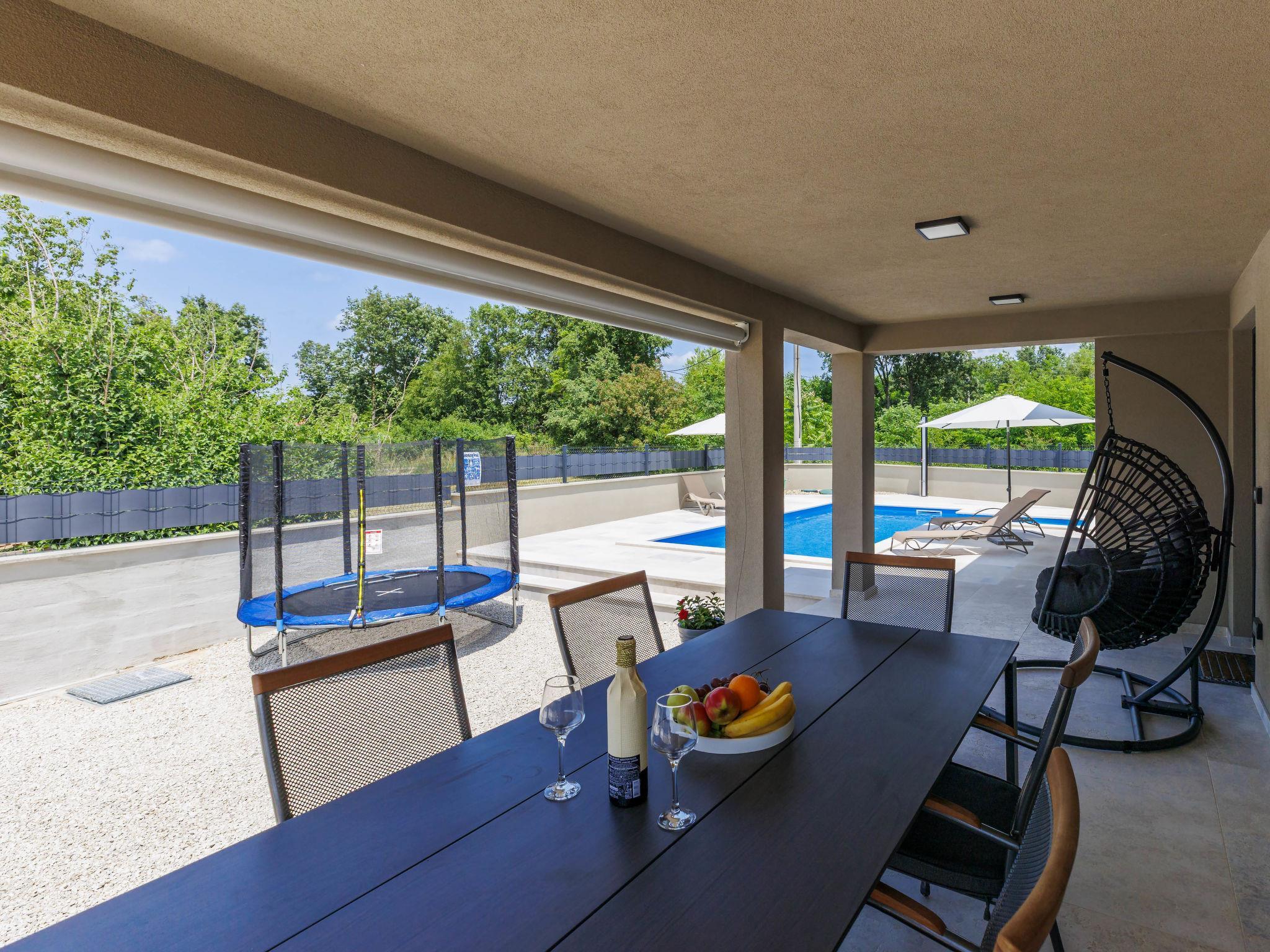 Gemütliches Einfamilienhaus "Marko". Im Weiler Križanci, 2.5 km vom Zentrum von Žminj, 26 km vom Zentrum von Rovinj, sonnige Lage, 26 km vom Meer. Zur Alleinbenutzung: Grundstück 500 m2 (eingezäunt), Garten mit Rasen und Pflanzen, Schwimmbad eckig (7 x 3 m, 140 cm tief, saisonale Verfügbarkeit: 01.Mai. - 01.Okt.) mit Innentreppe. Aussendusche, Kinderspielplatz (Rutschbahn, Schaukel), Poolpflege durch den Besitzer/Gärtner. Im Hause: Internetzugang, Waschmaschine. Parkplatz (für 2 Autos) beim Haus auf dem Grundstück. Supermarkt 1.5 km, Restaurant 2 km, Bushaltestelle 2.6 km, Kieselstrand 26 km. Reitstall 10 km, Wanderwege ab Haus 100 m, Radweg 150 m. Nahe gelegene Sehenswürdigkeiten: adventure park 20 km, zip line 15 km.