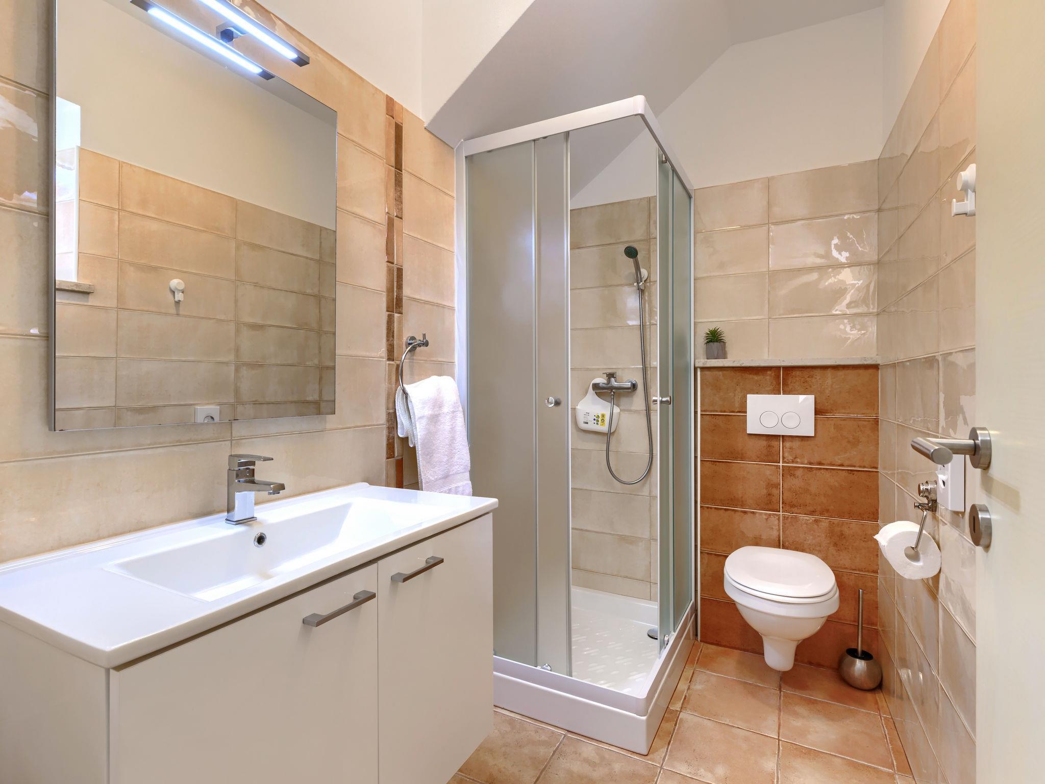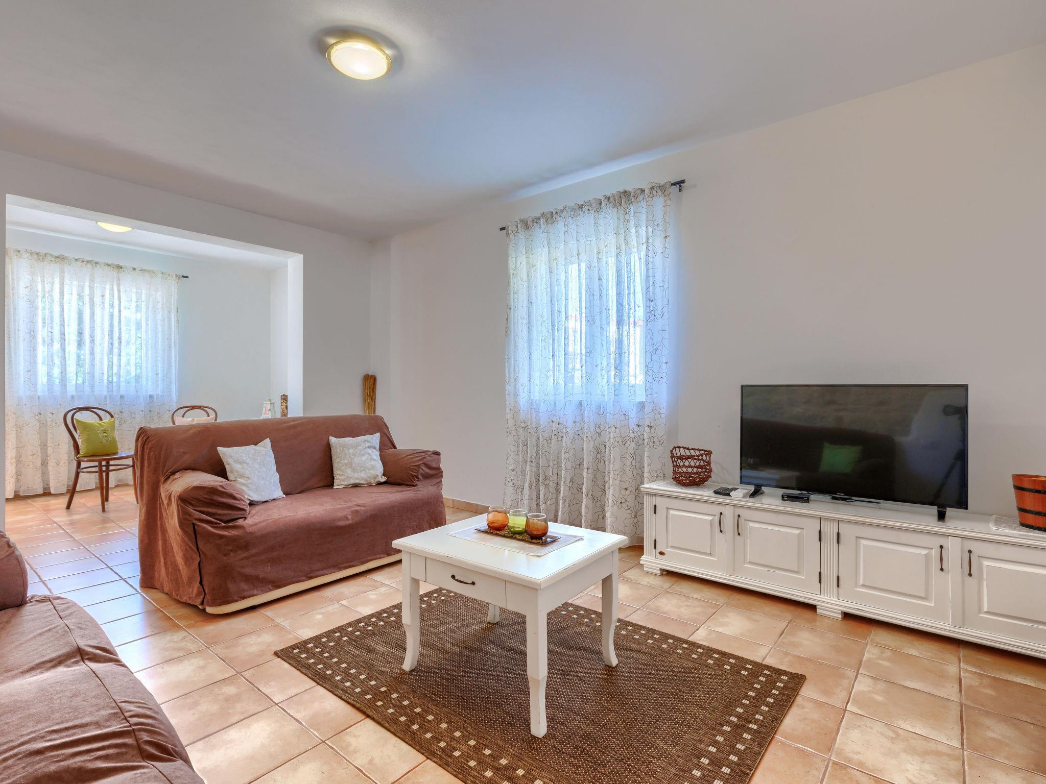 3-Zimmer-Villa 120 m2 auf 2 Stockwerken. Rustikal und geschmackvoll eingerichtet: offenes Wohn-/Schlafzimmer mit 1 Diwanbett (140 cm, Länge 200 cm), Sat-TV (Flachbildschirm). Ausgang zur Terrasse. Offenes Esszimmer. Offene Küche (1 Kochplatte, Backofen, Geschirrspüler, 3 Flammen, Toaster, Wasserkocher, Mikrowelle, Tiefkühler, elektrische Kaffeemaschine). Dusche/WC. Warmluftheizung. Obergeschoss: 1 Zimmer mit 1 Doppelbett (2 x 90 cm, Länge 200 cm), Sat-TV (Flachbildschirm). Ausgang zum Balkon. 1 Zimmer mit 1 Doppelbett (2 x 90 cm, Länge 200 cm), Dusche/WC und Sat-TV (Flachbildschirm). Balkon 20 m2, Terrasse 20 m2. Terrassenmöbel, Liegestühle. Schöne Sicht auf das Meer, das Schwimmbad und die Landschaft. Zur Verfügung: Internet (Wireless LAN, gratis). Geeignet für Familien.