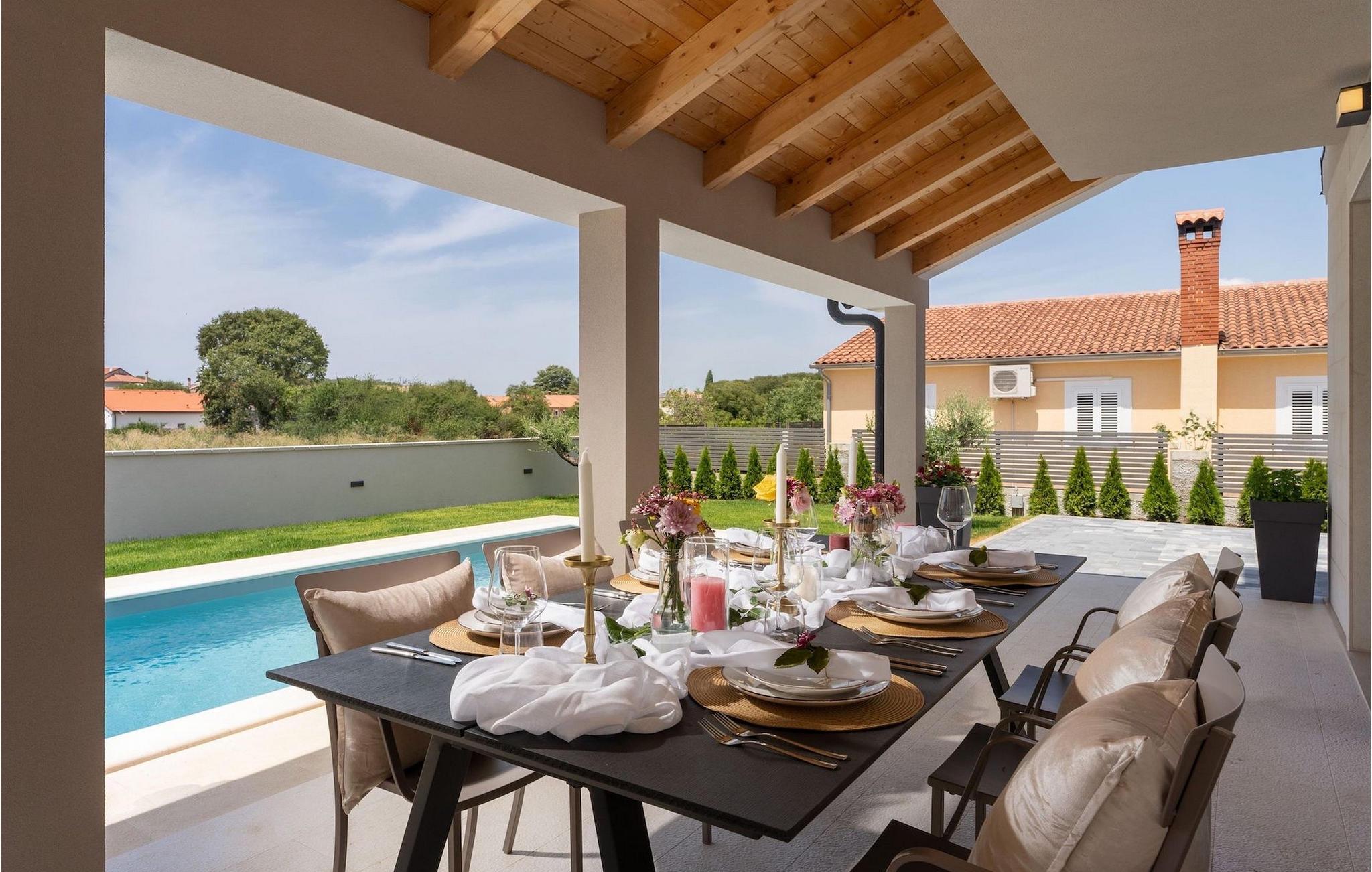 Nur 7km vom Strand entfernt, ist die schöne Villa Sophia Rovinj der ideale Ort für alle, die Ruhe und Frieden suchen. Die Villa verfügt über 3 Schlafzimmer, die sich auf 2 Etagen verteilen. Das Wohnzimmer, die Küche und der Essbereich befinden sich alle im Erdgeschoss und sind geschmackvoll in Beige- und Naturtönen gestaltet. Egal, ob Sie lustige Spieleabende mit der Familie verbringen oder sich Ihre Lieblingsserien ansehen möchten, dieser gesamte Bereich ist ideal dafür. Von hier aus erreichen Sie die Terrasse und den Poolbereich. Hier haben die Gäste die Möglichkeit, den Alltagsstress komplett loszulassen und ihre Reise in vollen Zügen zu genießen. Während die Eltern ihren Morgenkaffee im schattigen Loungebereich oder auf den Liegestühlen mit einem erfrischenden Obstsalat genießen, können sich die Kinder im privaten Swimmingpool austoben. Das Abendessen kann von den Gästen auf dem Gasgrill zubereitet und anschließend mit Familie und Freunden genossen werden. Villa Sophia Rovinj ist vielleicht der ideale Ort für Sie, um gut zu schlafen, wenn Sie von der Hektik des Alltags erschöpft sind. Es gibt drei komfortable Schlafzimmer in der Villa, jedes mit Klimaanlage, einem Doppelbett und einem eigenen Badezimmer mit Dusche. Während das Schlafzimmer im Erdgeschoss einen wunderbaren Blick auf den Pool hat, versprechen 2 Schlafzimmer mit Balkon im ersten Stock erholsame Nächte. Die Villa Sophia Rovinj kann der ideale Ort für Sie sein, um einen wunderschönen Urlaub zu verbringen! Erkunden Sie ohne Verzögerung Istrien und Rovinj.Villa Sophia Rovinj ist nur 7 km vom Meer in Rovinj entfernt. Einst ein kleines Fischerdorf, heute ein beliebtes Urlaubsziel mit reichem kulturellen Erbe! In den charmanten Gassen dieser mittelalterlichen Stadt verbergen sich zahlreiche Galerien, Restaurants, Bars und Cafés. Die Stadt liegt nur 40 km von Pula entfernt und ist für sein günstiges und wohltuendes mildes Klima bekannt. Die gesamte Küste mit ihren 22 Inseln steht unter Naturschutz. Die Stadt wird von der barocken St. Euphemia Kirche dominiert, von deren Turm man einen wunderschönen Panoramablick auf die ganze Stadt genießen kann. Rovinj bietet zahlreiche Möglichkeiten für einen unvergesslichen Urlaub: Wander-und Radwege, Segeln, Klettern, Tauchen, Paragliding, Tennis, archäologische Denkmäler, hervorragende kulinarische Spezialitäten und schöne Strände. Geheimnisvoll und romantisch, diese Altstadt ist einen Besuch wert!