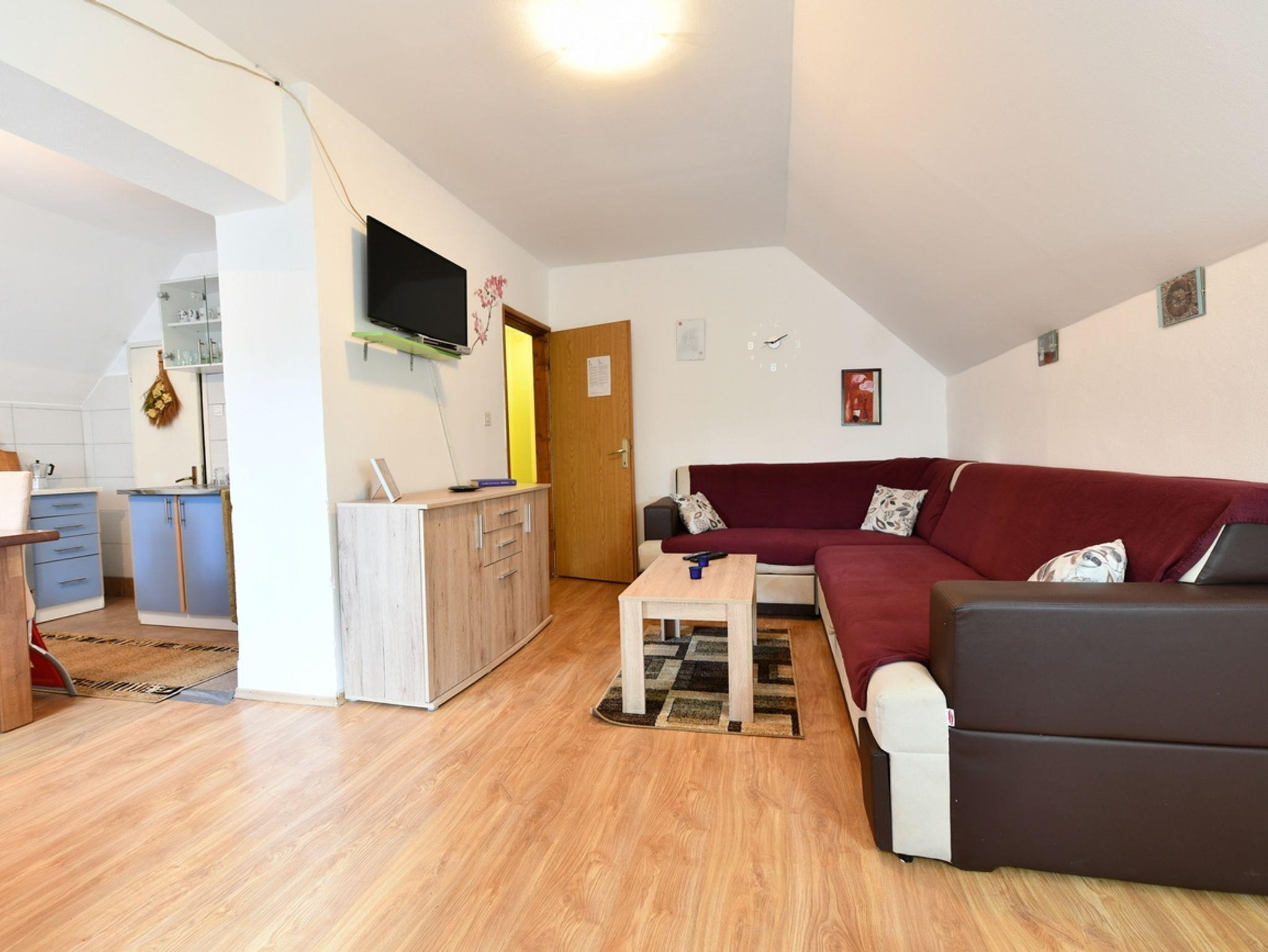 Ferienwohnung bietet Platz für 3 Gäste. Die Betten sind in Schlafzimmern, die es 1 gibt, und in Wohnzimmer, innerhalb einer Gesamtfläche von 63m2, angeordnet. Die Gäste haben einen eigenen Balkon zur Verfügung, auf der sie in warmen Sommernächten genießen können. Es ist erlaubt, Speisen auf dem Gemeinschafts-Grill vorzubereiten. In der Unterkunftseinheit besteht die Möglichkeit des Mitbringens von Haustieren, und die Dienstleistung ist im Preis der Unterkunft enthalten. IM PREIS INBEGRIFFEN: Kurtaxe, Endreinigung, Parkplatz, Internet, Haustiere, Kinderbett, Bügeleisen, Bügelbrett, Föhn, tragbarer Grill. Die Verfügbarkeit zusätzlicher Dienstleistungen in Ihrem reservierten Termin und die Preise derselben (falls nicht aufgeführt) müssen im Voraus überprüft werden. Zusätzliche Dienstleistungen die in der Zahlungsaufforderung nicht aufgeführt sind werden direkt beim Vermieter bezahlt, angenommen der Gast nutzt auch diese.