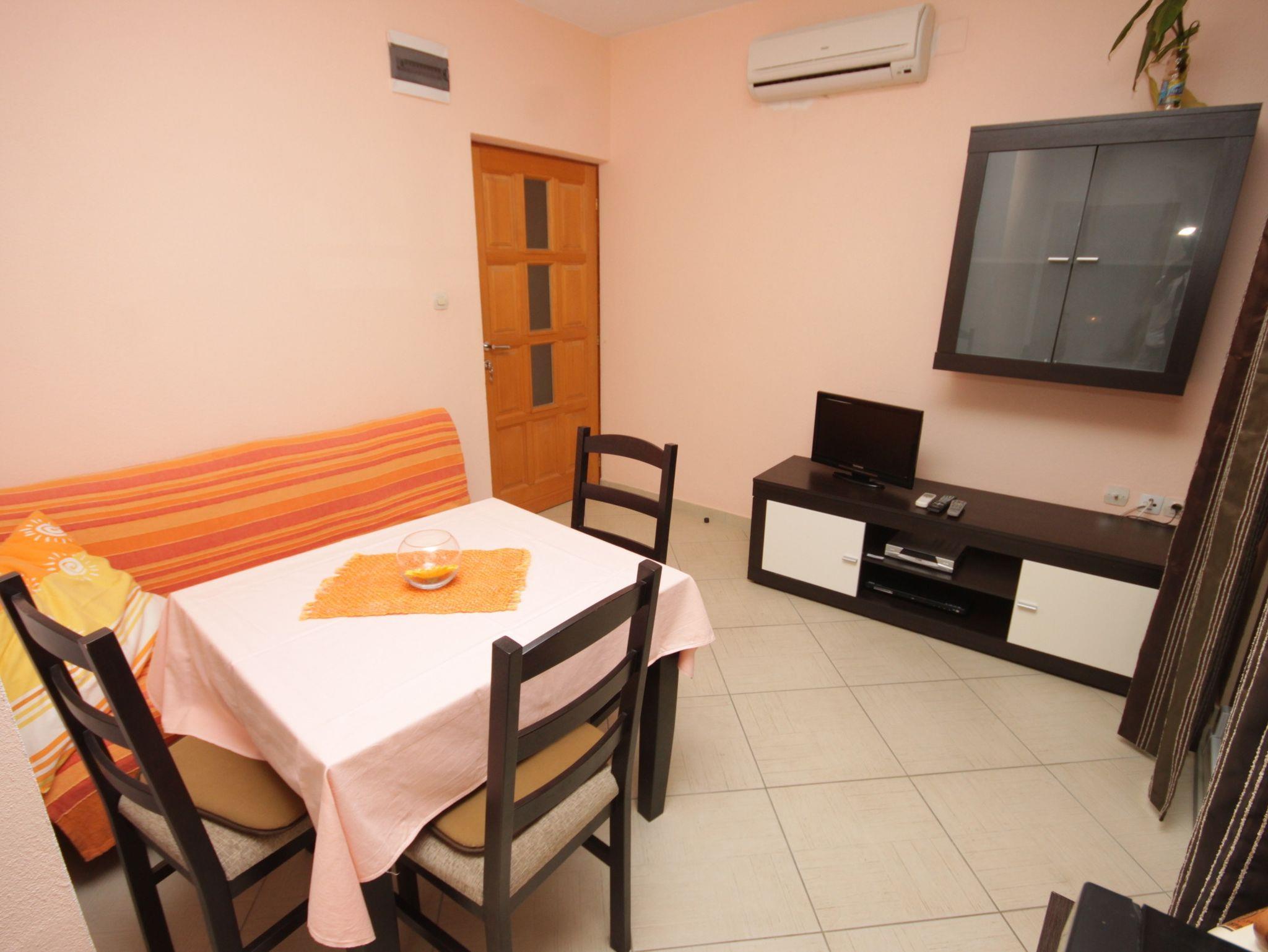 Ferienwohnung bietet Platz für 3 Gäste. Die Betten sind in Schlafzimmern, die es 1 gibt, und in Esszimmer, innerhalb einer Gesamtfläche von 27m2, angeordnet. Die Gäste haben eine eigene Terrasse zur Verfügung, auf der sie in warmen Sommernächten genießen können. Es ist erlaubt, Speisen auf dem Gemeinschafts-Grill vorzubereiten. IM PREIS INBEGRIFFEN: Kurtaxe, Endreinigung, Klimatisierung, Parkplatz, Internet, Kinderbett, Bügeleisen, Föhn, tragbarer Grill. VERBINDLICHE ZUSÄTZLICHE KOSTEN: Aufzahlung für Kurzaufenthalte (prozentualer Zuschlag pro Nächtigungsanzahl: 30% - 1, 20% - 2, 10% - 3). Die Verfügbarkeit zusätzlicher Dienstleistungen in Ihrem reservierten Termin und die Preise derselben (falls nicht aufgeführt) müssen im Voraus überprüft werden. Zusätzliche Dienstleistungen die in der Zahlungsaufforderung nicht aufgeführt sind werden direkt beim Vermieter bezahlt, angenommen der Gast nutzt auch diese.
