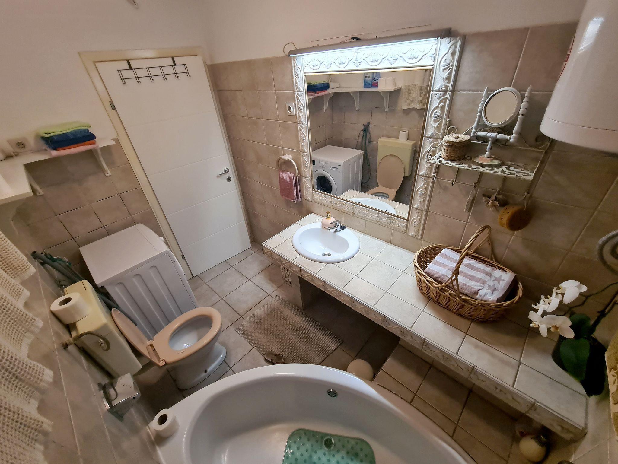 Ferienwohnung bietet Platz für 5 Gäste. Die Betten sind in Schlafzimmern, die es 2 gibt, und in Wohnzimmer, innerhalb einer Gesamtfläche von 70m2, angeordnet. Die Gäste haben eine eigene Terrasse zur Verfügung, auf der sie in warmen Sommernächten genießen können. Das Apartment bietet Meerblick. Es ist erlaubt, Speisen auf dem Gemeinschafts-Grill vorzubereiten. In der Unterkunftseinheit besteht die Möglichkeit des Mitbringens von Haustieren gegen Aufpreis. IM PREIS INBEGRIFFEN: Kurtaxe, Endreinigung, Klimatisierung, Internet, Bootsanlegeplatz, Kinderbett, Bügeleisen, Bügelbrett, Föhn, Liegestühle. VERBINDLICHE ZUSÄTZLICHE KOSTEN: Aufzahlung für Kurzaufenthalte (prozentualer Zuschlag pro Nächtigungsanzahl: 30% - 1, 20% - 2, 10% - 3). UNVERBINDLICHE ZUSÄTZLICHE KOSTEN: Wäschewaschen (5,00 € Waschen), Haustiere (5,00 € pro Nacht). Die Verfügbarkeit zusätzlicher Dienstleistungen in Ihrem reservierten Termin und die Preise derselben (falls nicht aufgeführt) müssen im Voraus überprüft werden. Zusätzliche Dienstleistungen die in der Zahlungsaufforderung nicht aufgeführt sind werden direkt beim Vermieter bezahlt, angenommen der Gast nutzt auch diese.