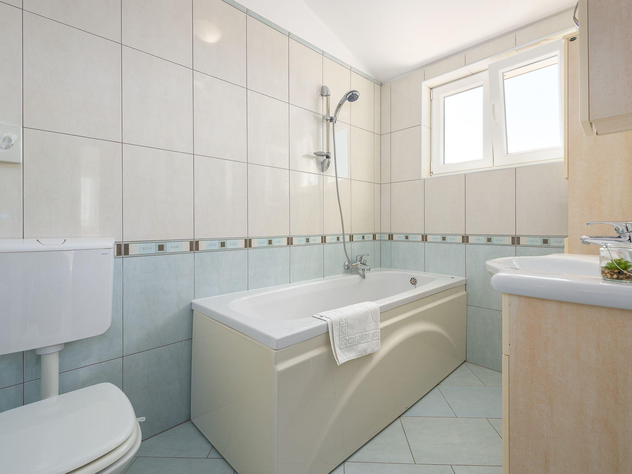 Ferienwohnung bietet Platz für 6 Gäste. Die Betten sind in Schlafzimmern, die es 2 gibt, und in Wohnzimmer, innerhalb einer Gesamtfläche von 56m2, angeordnet. Die Gäste haben eine eigene Terrasse zur Verfügung, auf der sie in warmen Sommernächten genießen können. Das Apartment bietet Meerblick. Es ist erlaubt, Speisen auf dem Gemeinschafts-Grill vorzubereiten. Während ihres Aufenthalts können Gäste das gemeinsam zur Nutzung stehende Schwimmbad benutzen. IM PREIS INBEGRIFFEN: Endreinigung, Klimatisierung, Zentralheizung, Pool, Parkplatz, Internet, Kinderbett, tragbarer Grill. VERBINDLICHE ZUSÄTZLICHE KOSTEN: Kurtaxe (Erwachsene 0,93 € - 1,60 € Nacht/Person, Kinderermäßigung 12 - 17 Jahre), Aufzahlung für Kurzaufenthalte (prozentualer Zuschlag pro Nächtigungsanzahl: 30% - 1, 20% - 2, 10% - 3). UNVERBINDLICHE ZUSÄTZLICHE KOSTEN: Zusatzbett (10,00 € pro Nacht). Die Verfügbarkeit zusätzlicher Dienstleistungen in Ihrem reservierten Termin und die Preise derselben (falls nicht aufgeführt) müssen im Voraus überprüft werden. Zusätzliche Dienstleistungen die in der Zahlungsaufforderung nicht aufgeführt sind werden direkt beim Vermieter bezahlt, angenommen der Gast nutzt auch diese.