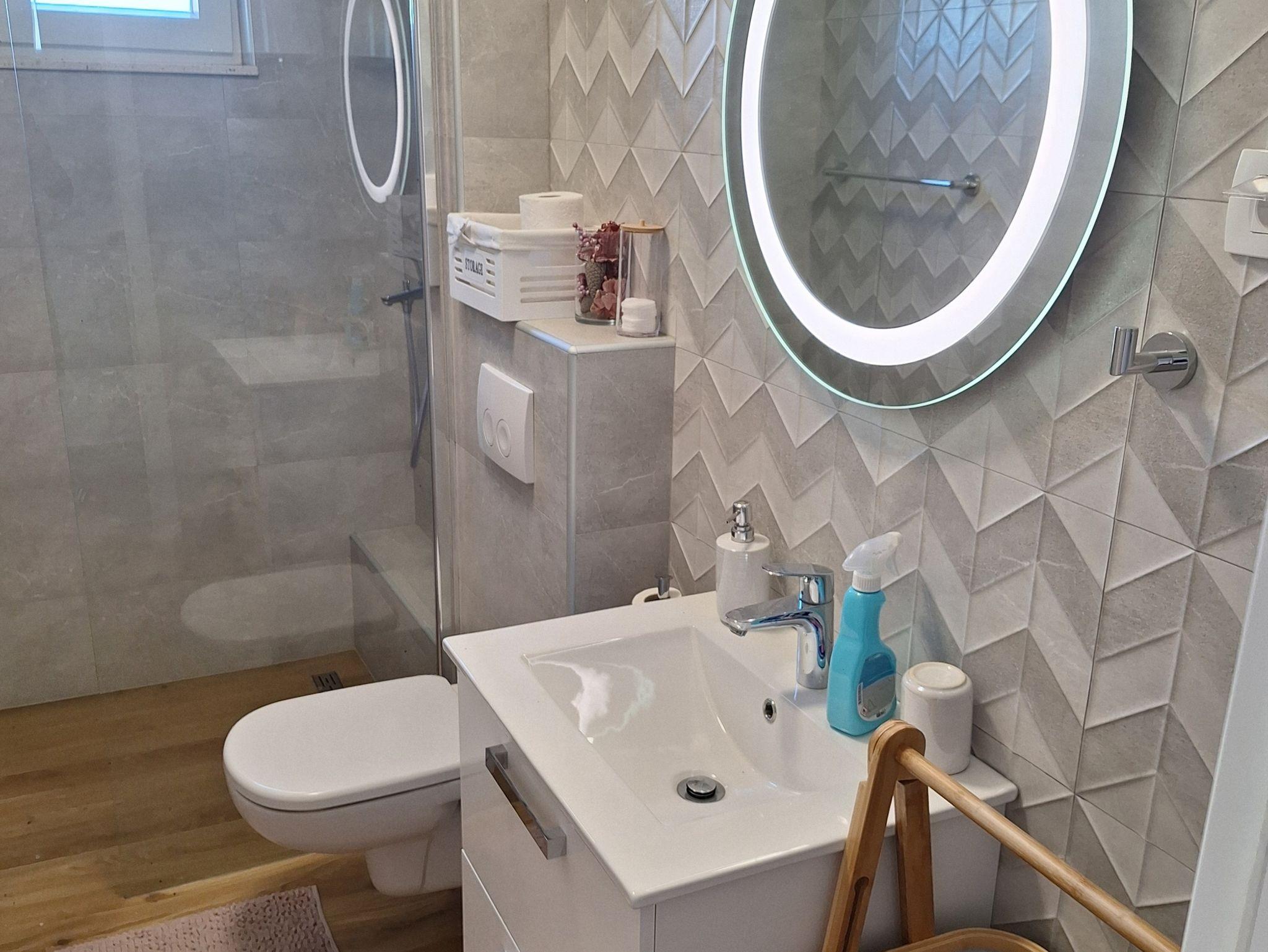 Ferienwohnung bietet Platz für 4 Gäste. Die Betten sind in Schlafzimmern, die es 1 gibt, und in Wohnzimmer, innerhalb einer Gesamtfläche von 42m2, angeordnet. Die Gäste haben einen eigenen Balkon zur Verfügung, auf der sie in warmen Sommernächten genießen können. Das Apartment bietet Meerblick. Es ist erlaubt, Speisen auf dem Gemeinschafts-Grill vorzubereiten. Die reservierte Unterkunftseinheit verfügt über einen gemeinsame Terrasse. IM PREIS INBEGRIFFEN: Kurtaxe, Endreinigung, Klimatisierung, Parkplatz, Internet, Bügeleisen, Bügelbrett, Föhn. Die Verfügbarkeit zusätzlicher Dienstleistungen in Ihrem reservierten Termin und die Preise derselben (falls nicht aufgeführt) müssen im Voraus überprüft werden. Zusätzliche Dienstleistungen die in der Zahlungsaufforderung nicht aufgeführt sind werden direkt beim Vermieter bezahlt, angenommen der Gast nutzt auch diese.