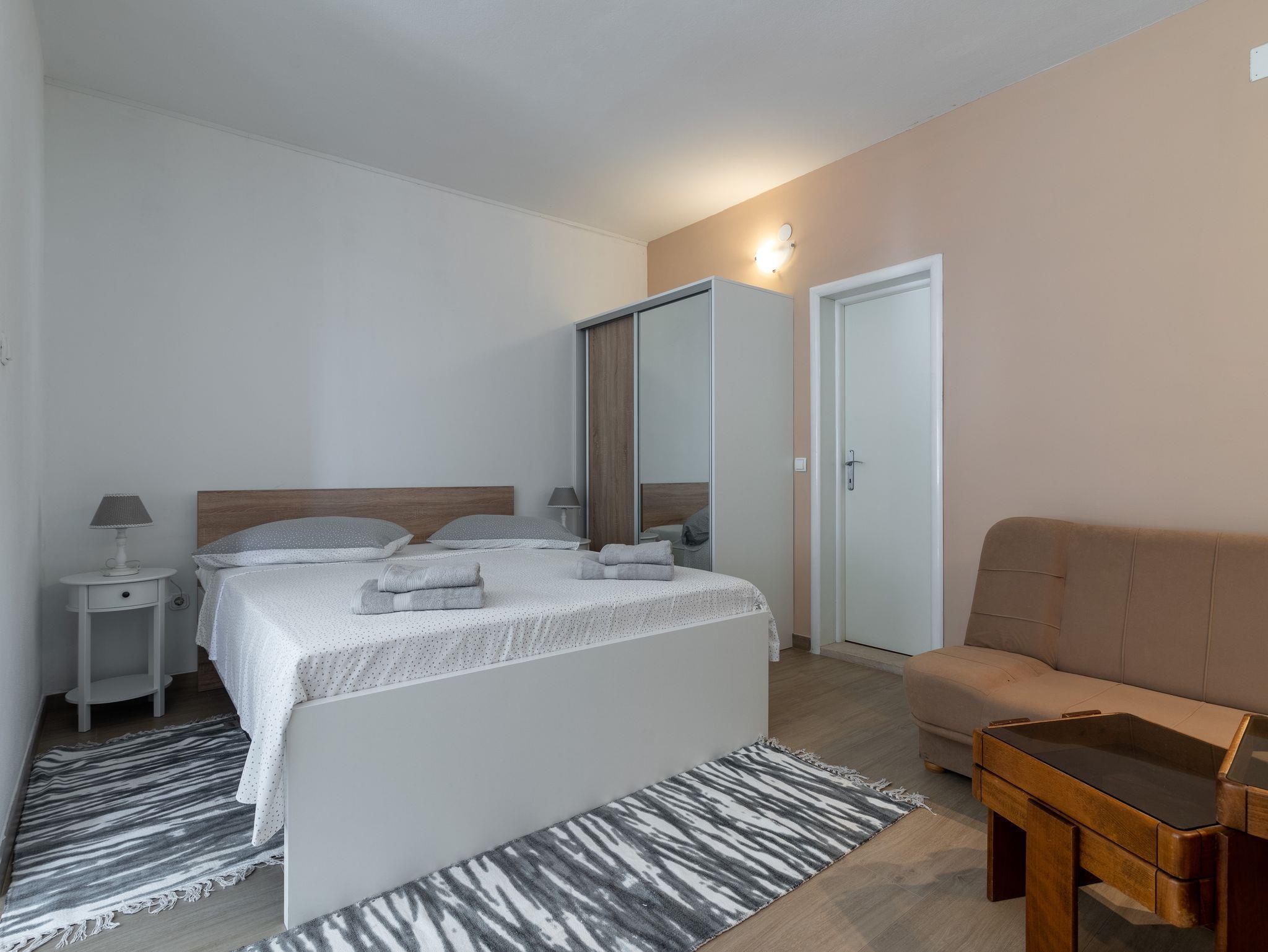 Studio bietet Platz für 3 Gäste. Die Betten sind in Schlafzimmern, die es 1 gibt, innerhalb einer Gesamtfläche von 33m2, angeordnet. Die Gäste haben eine eigene Terrasse zur Verfügung, auf der sie in warmen Sommernächten genießen können. Das Studio-Apartment bietet Meerblick. Es ist erlaubt, Speisen auf dem Gemeinschafts-Grill vorzubereiten. IM PREIS INBEGRIFFEN: Kurtaxe, Endreinigung, Klimatisierung, Zentralheizung, Parkplatz, Garage, Internet, Bootsanlegeplatz, Bügeleisen, Bügelbrett, Föhn, Sonnenschirm, Liegestühle. UNVERBINDLICHE ZUSÄTZLICHE KOSTEN: Wäschewaschen (3,00 € Waschen). Die Verfügbarkeit zusätzlicher Dienstleistungen in Ihrem reservierten Termin und die Preise derselben (falls nicht aufgeführt) müssen im Voraus überprüft werden. Zusätzliche Dienstleistungen die in der Zahlungsaufforderung nicht aufgeführt sind werden direkt beim Vermieter bezahlt, angenommen der Gast nutzt auch diese.