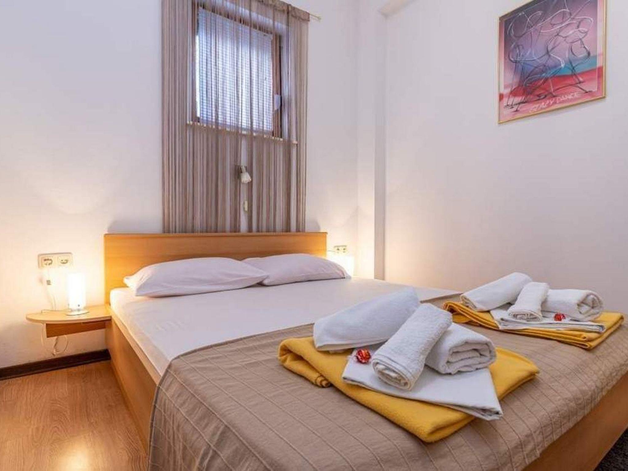 Ferienwohnung bietet Platz für 3 Gäste. Die Betten sind in Schlafzimmern, die es 1 gibt, und in Wohnzimmer, innerhalb einer Gesamtfläche von 30m2, angeordnet. Die Gäste haben eine eigene Terrasse zur Verfügung, auf der sie in warmen Sommernächten genießen können. Es ist erlaubt, Speisen auf dem Gemeinschafts-Grill vorzubereiten. IM PREIS INBEGRIFFEN: Kurtaxe, Endreinigung, Parkplatz, Internet, Kinderbett, Bügeleisen, Bügelbrett, Föhn, tragbarer Grill. VERBINDLICHE ZUSÄTZLICHE KOSTEN: Aufzahlung für Kurzaufenthalte (prozentualer Zuschlag pro Nächtigungsanzahl: 30% - 1, 20% - 2, 10% - 3). UNVERBINDLICHE ZUSÄTZLICHE KOSTEN: Klimatisierung (5,00 € pro Nacht), Zentralheizung (5,00 € pro Nacht). Die Verfügbarkeit zusätzlicher Dienstleistungen in Ihrem reservierten Termin und die Preise derselben (falls nicht aufgeführt) müssen im Voraus überprüft werden. Zusätzliche Dienstleistungen die in der Zahlungsaufforderung nicht aufgeführt sind werden direkt beim Vermieter bezahlt, angenommen der Gast nutzt auch diese.