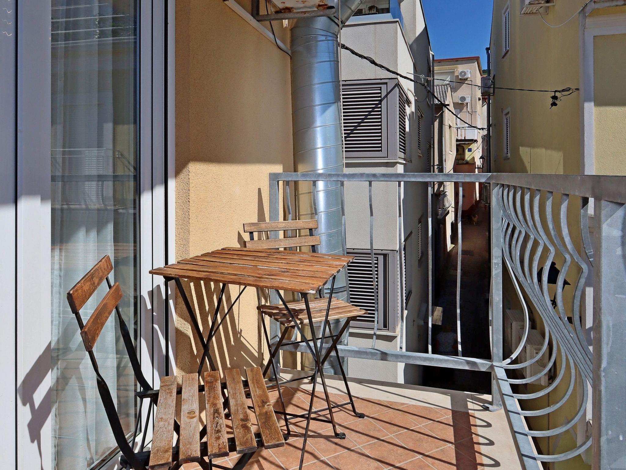 Ferienwohnung bietet Platz für 4 Gäste. Die Betten sind in Schlafzimmern, die es 1 gibt, und in Wohnzimmer, innerhalb einer Gesamtfläche von 33m2, angeordnet. Die Gäste haben einen eigenen Balkon zur Verfügung, auf der sie in warmen Sommernächten genießen können. Das Apartment bietet Meerblick. IM PREIS INBEGRIFFEN: Kurtaxe, Endreinigung, Klimatisierung, Internet, Kinderbett, Bügeleisen, Bügelbrett, Föhn. Die Verfügbarkeit zusätzlicher Dienstleistungen in Ihrem reservierten Termin und die Preise derselben (falls nicht aufgeführt) müssen im Voraus überprüft werden. Zusätzliche Dienstleistungen die in der Zahlungsaufforderung nicht aufgeführt sind werden direkt beim Vermieter bezahlt, angenommen der Gast nutzt auch diese.