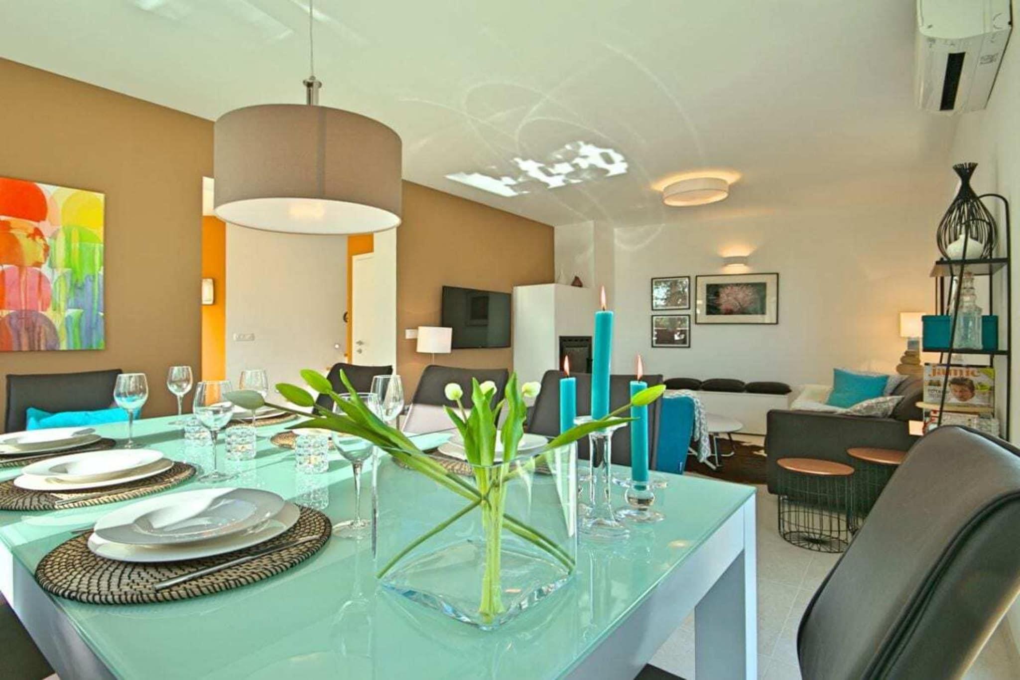 Villa Barbara, sehr schöne Einrichtung mit eingezäuntem, gefegtem Garten Im oberen Stockwerk des modernes Hauses befinden sich 3 Schlafzimmer, zwei mit Doppelbett und eine mit 2 Einzelbetten, auch als Doppelbett möglich.In jedem Zimmer gibt Fernsehen, Klimaanlge- auch mit der man heizen kann, Kleiderschrank. 3 Bäder, zwei im OG , 1 Bad im EG und extra Toilette. Die moderne Küche ist voll ausgestattet mit Kaffeemaschine, Spülmaschine, Herd, Toaster, Mikrowelle, Backofen, Kühlschrank, Gefrierschrank,Geschirrtücher. Vom hellen Wohn- Essbereich geht es auf die große Terrasse mit Meerblick von der es weiter zum eigenen beheiztem Pool 7X4 in den Garten geht, Grill. Im Hoff befinden sich Ihre privaten Autoabstellplätze.