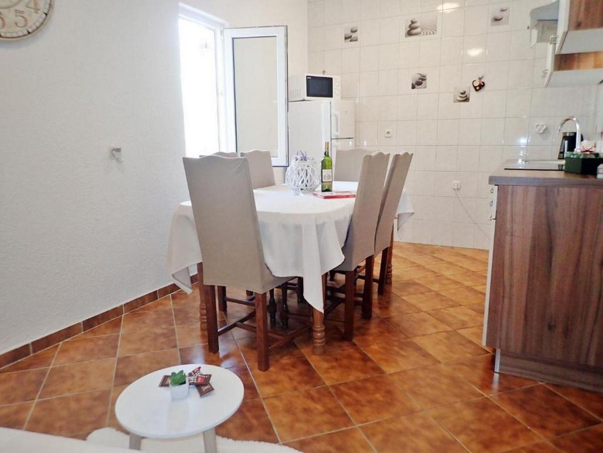 Ferienwohnung bietet Platz für 5 Gäste. Die Betten sind in Schlafzimmern, die es 2 gibt, und in Wohnzimmer, innerhalb einer Gesamtfläche von 55m2, angeordnet. Die Gäste haben eine eigene Terrasse zur Verfügung, auf der sie in warmen Sommernächten genießen können. Es ist erlaubt, Speisen auf dem Gemeinschafts-Grill vorzubereiten. IM PREIS INBEGRIFFEN: Kurtaxe, Endreinigung, Klimatisierung, Parkplatz, Internet, Kinderbett, Bügeleisen, Bügelbrett, Föhn, Liegestühle. VERBINDLICHE ZUSÄTZLICHE KOSTEN: Aufzahlung für Kurzaufenthalte (prozentualer Zuschlag pro Nächtigungsanzahl: 30% - 1, 20% - 2, 10% - 3). Die Verfügbarkeit zusätzlicher Dienstleistungen in Ihrem reservierten Termin und die Preise derselben (falls nicht aufgeführt) müssen im Voraus überprüft werden. Zusätzliche Dienstleistungen die in der Zahlungsaufforderung nicht aufgeführt sind werden direkt beim Vermieter bezahlt, angenommen der Gast nutzt auch diese.